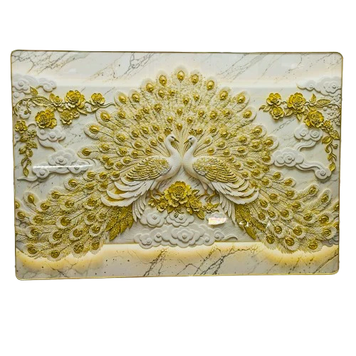 👉 Theme :- 3D embossed peacock wallpaper mural