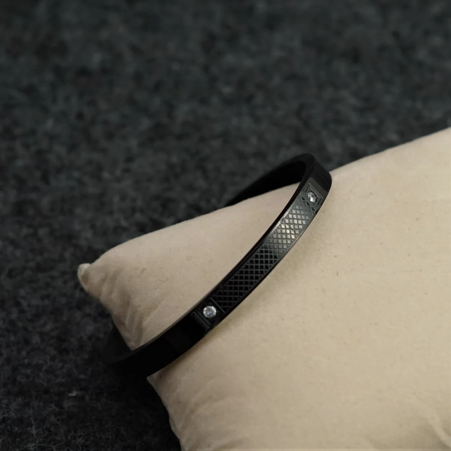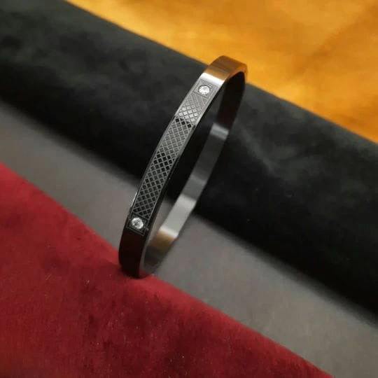 👉 Theme :- Black rhodium-plated bracelet with zircons, likely made of stainless steel.