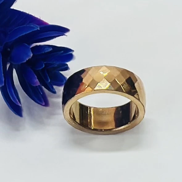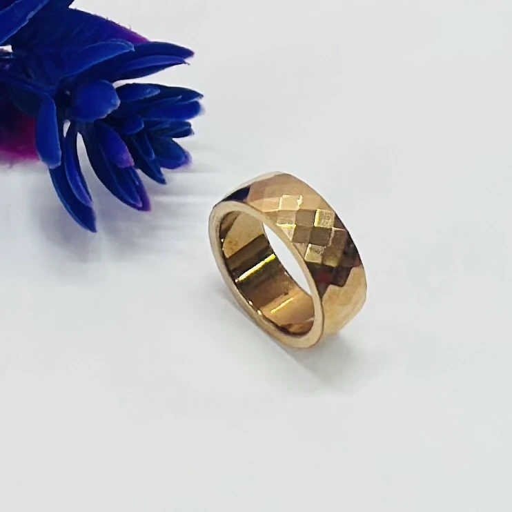 👉 Theme :- An 18K gold-plated titanium or tungsten carbide faceted band ring.