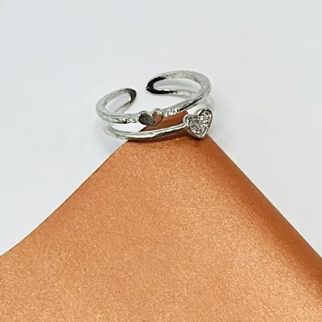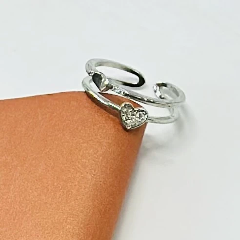 👉 Theme :- Silver plated ring with a heart-shaped stone.