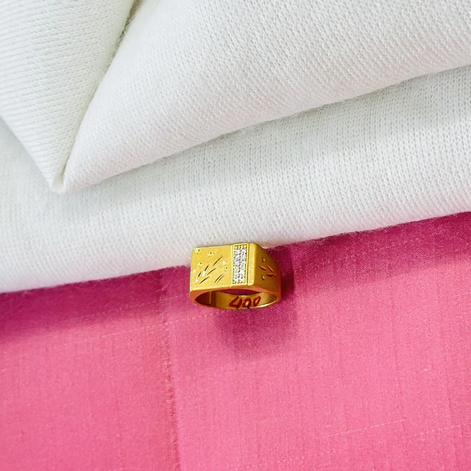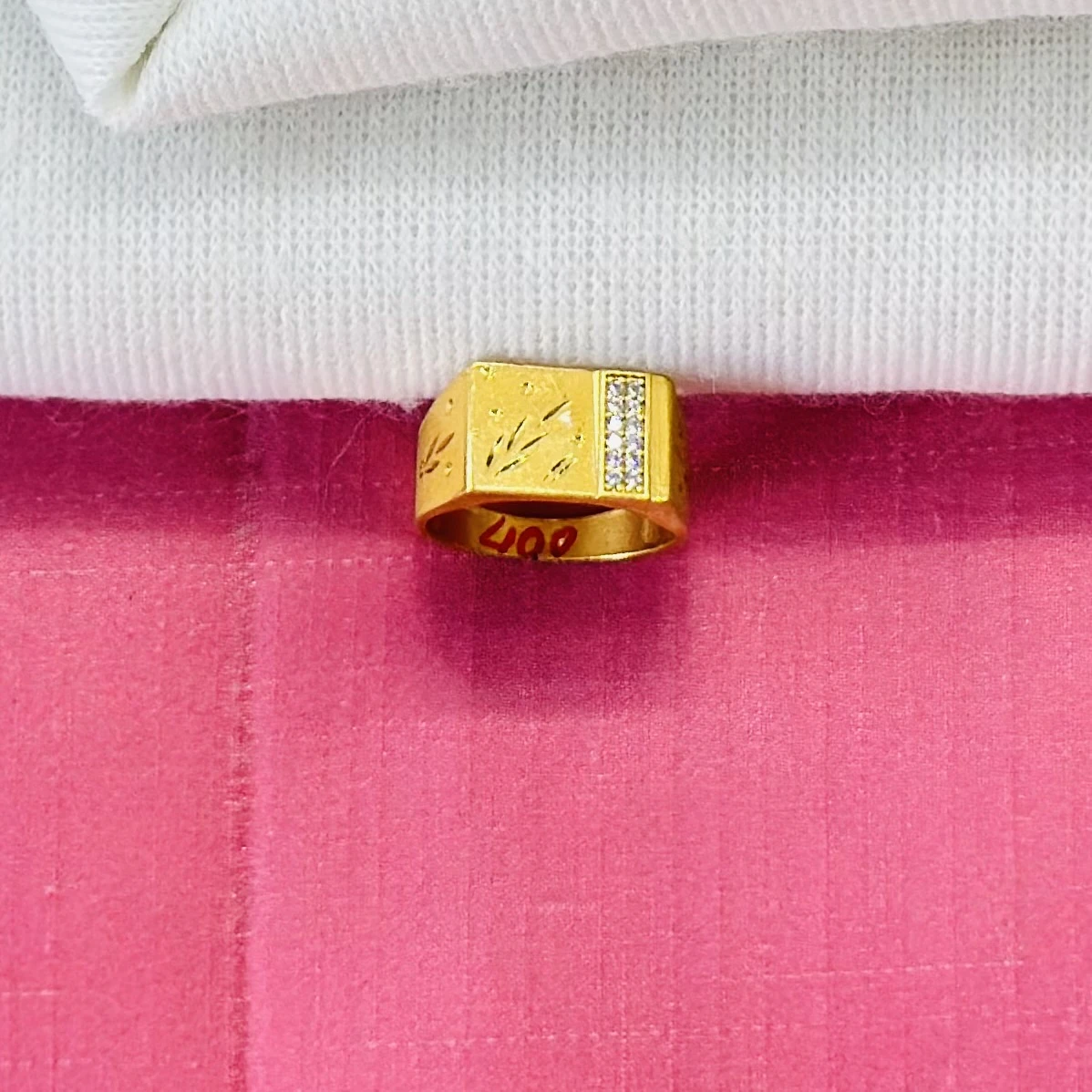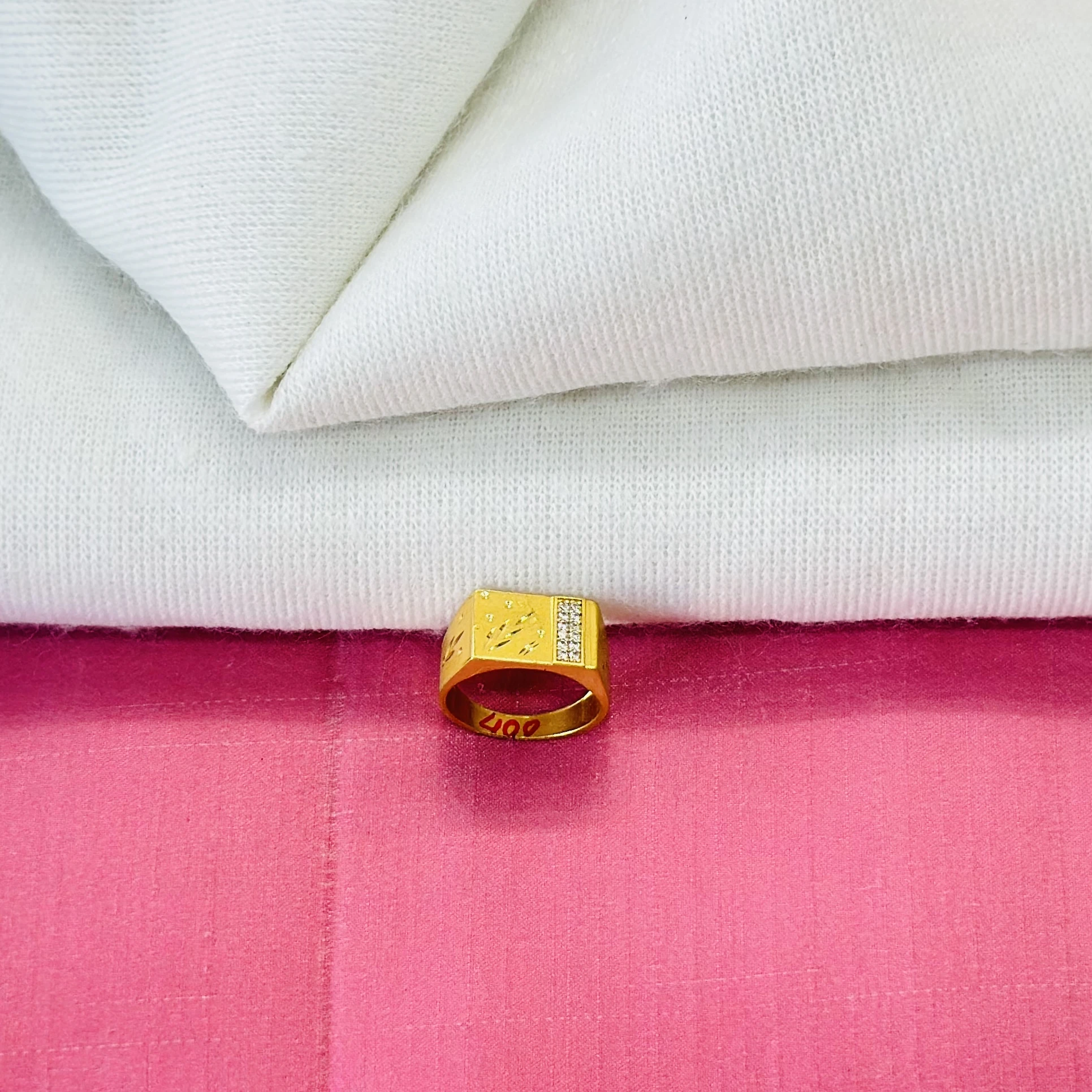 👉 Theme :- Gold plated men's ring with cubic zirconia stones.