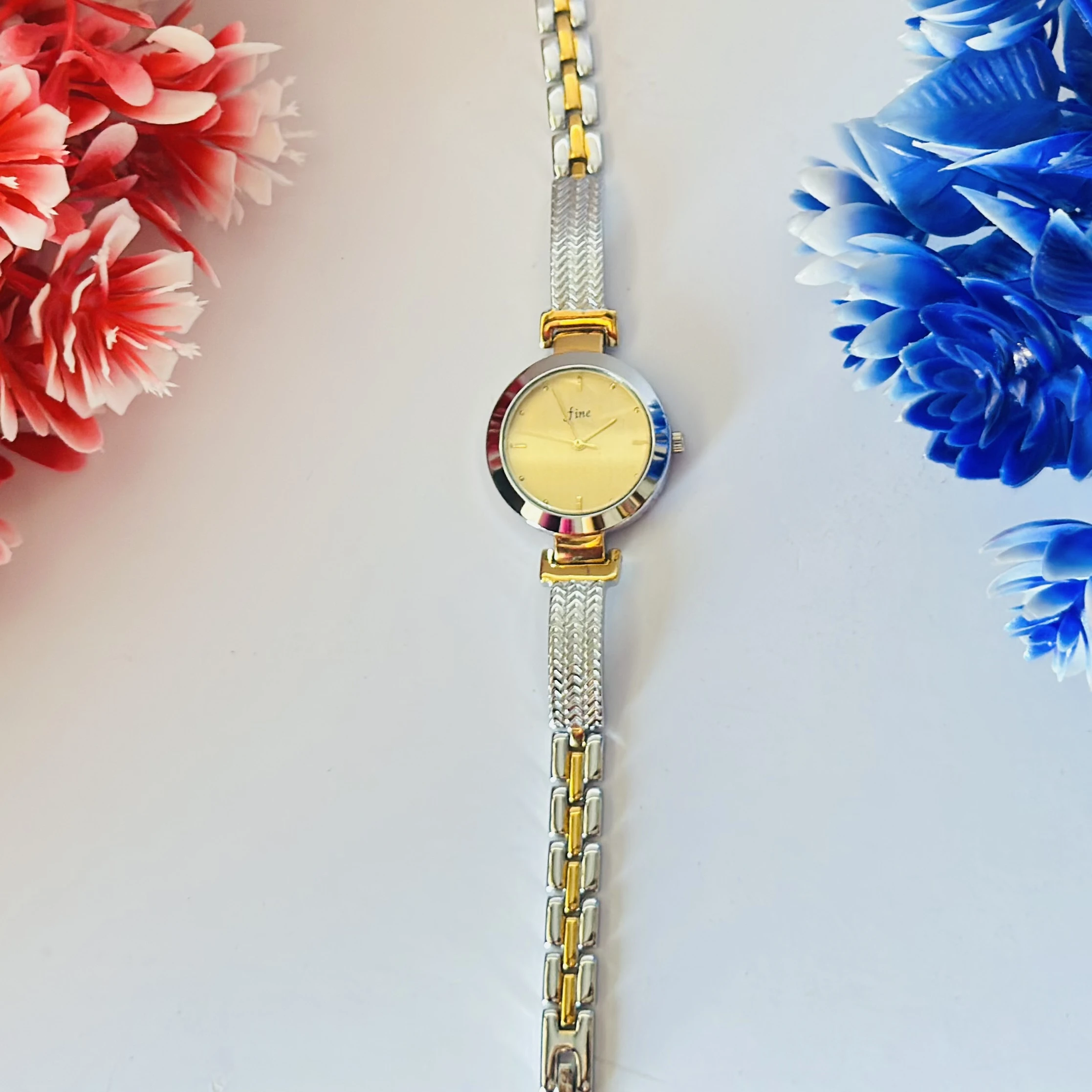 👉 Theme :- analog watch in a two-tone silver and gold color scheme.