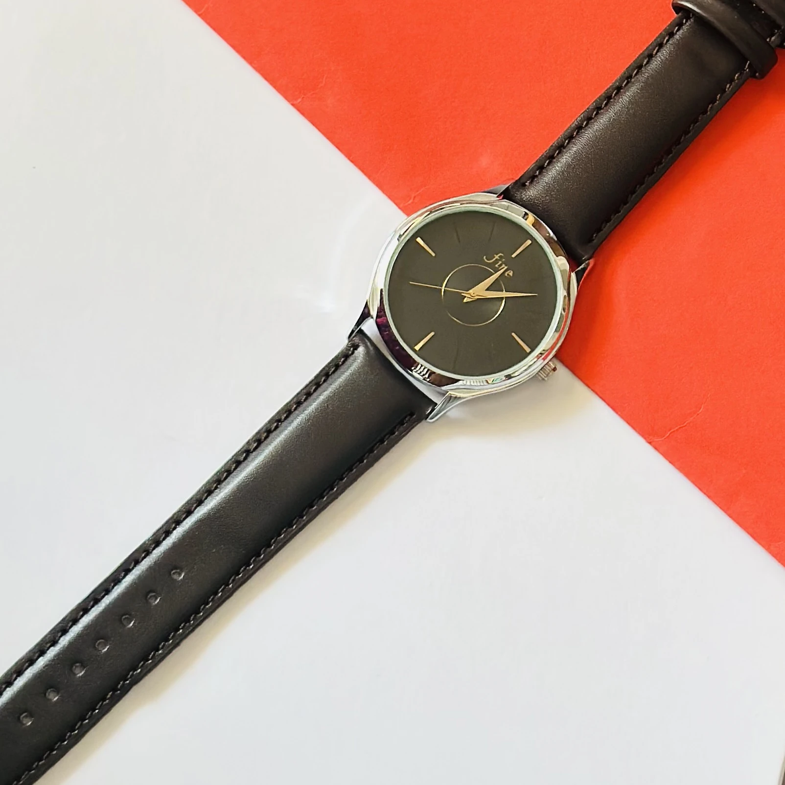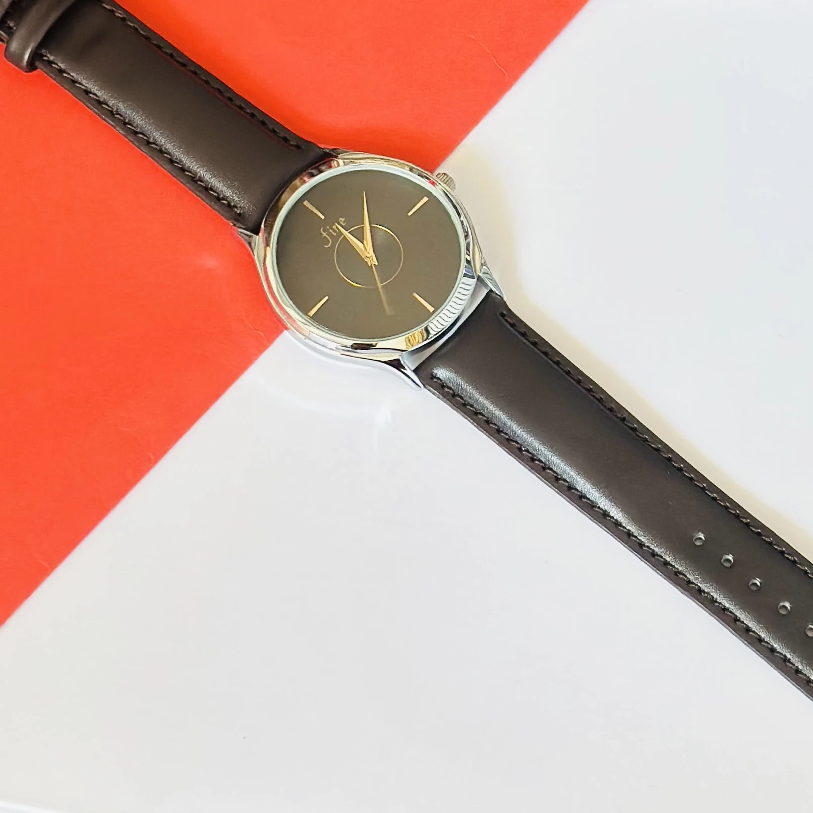 👉 Theme :- analog watch with a brown leather strap