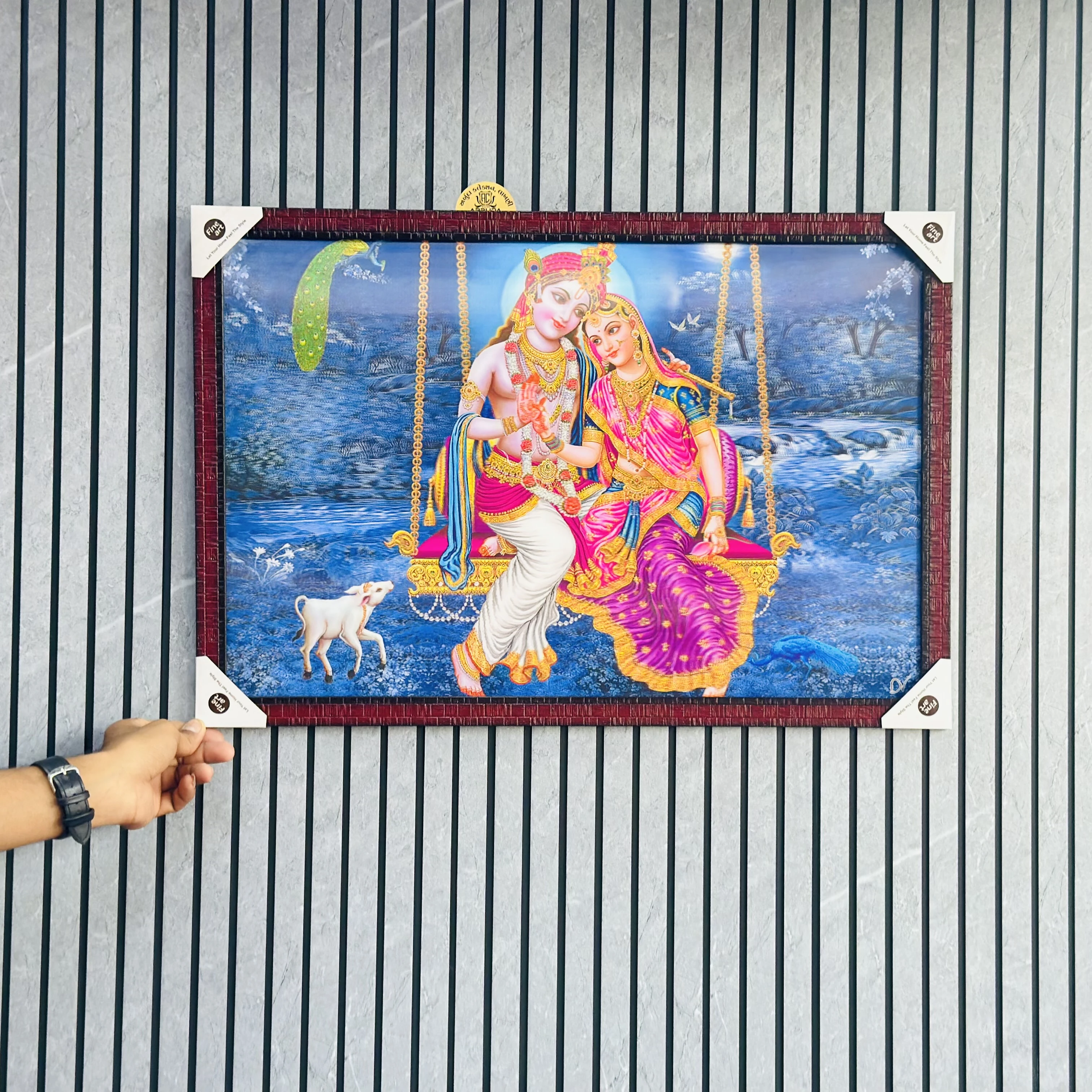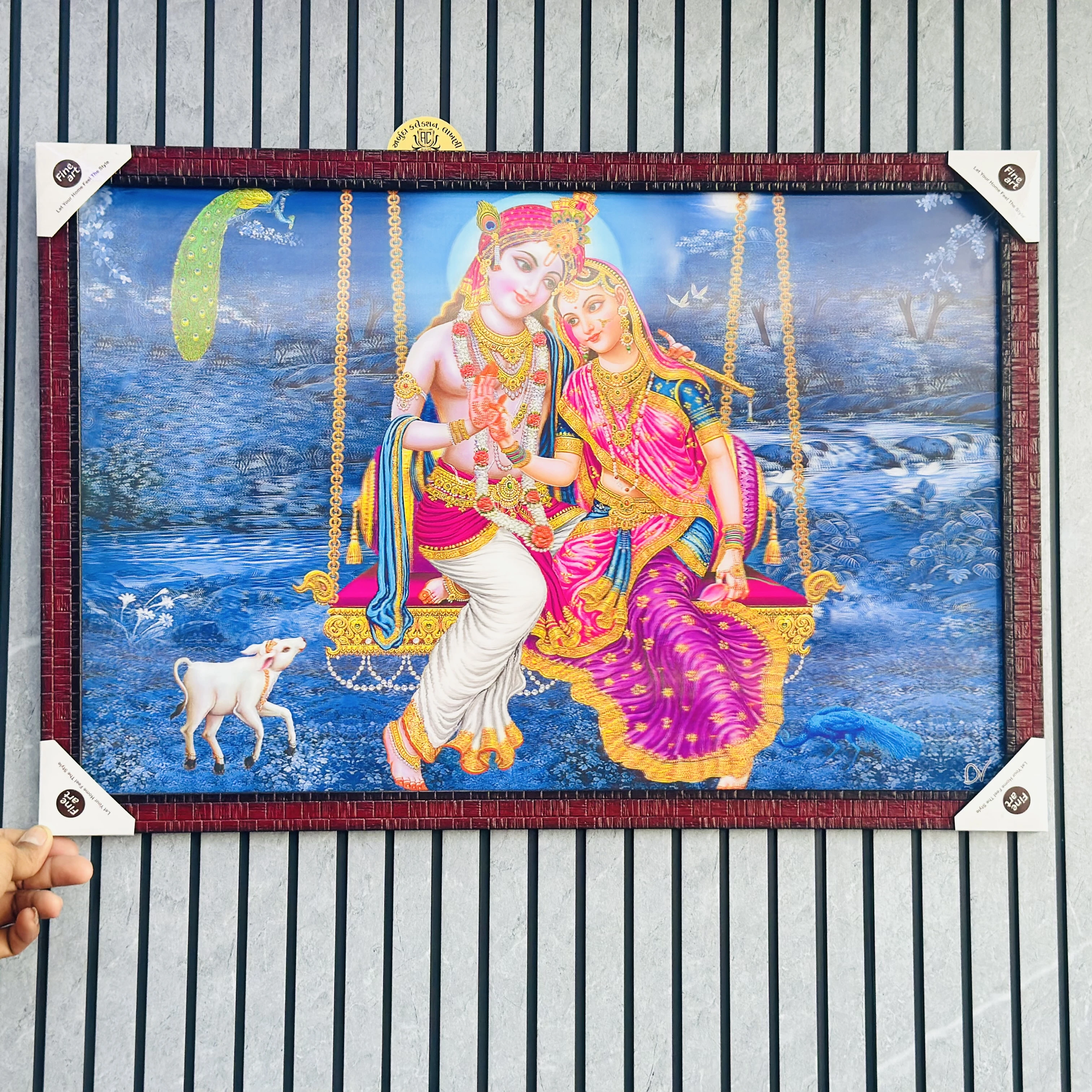 👉 Theme :- This is a framed picture of the Hindu deities Radha and Krishna. The