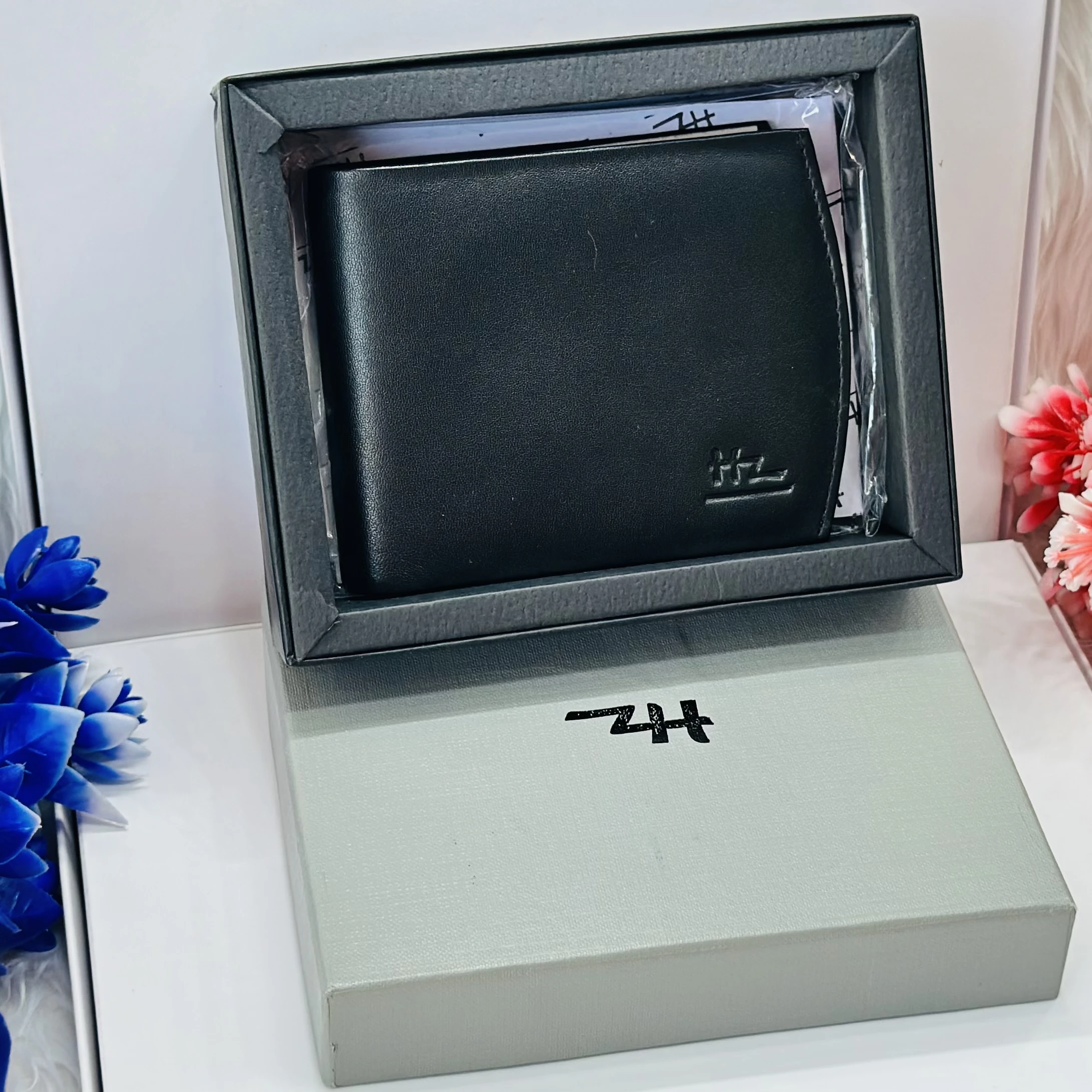 👉 Theme :- Black leather bi-fold men's wallet