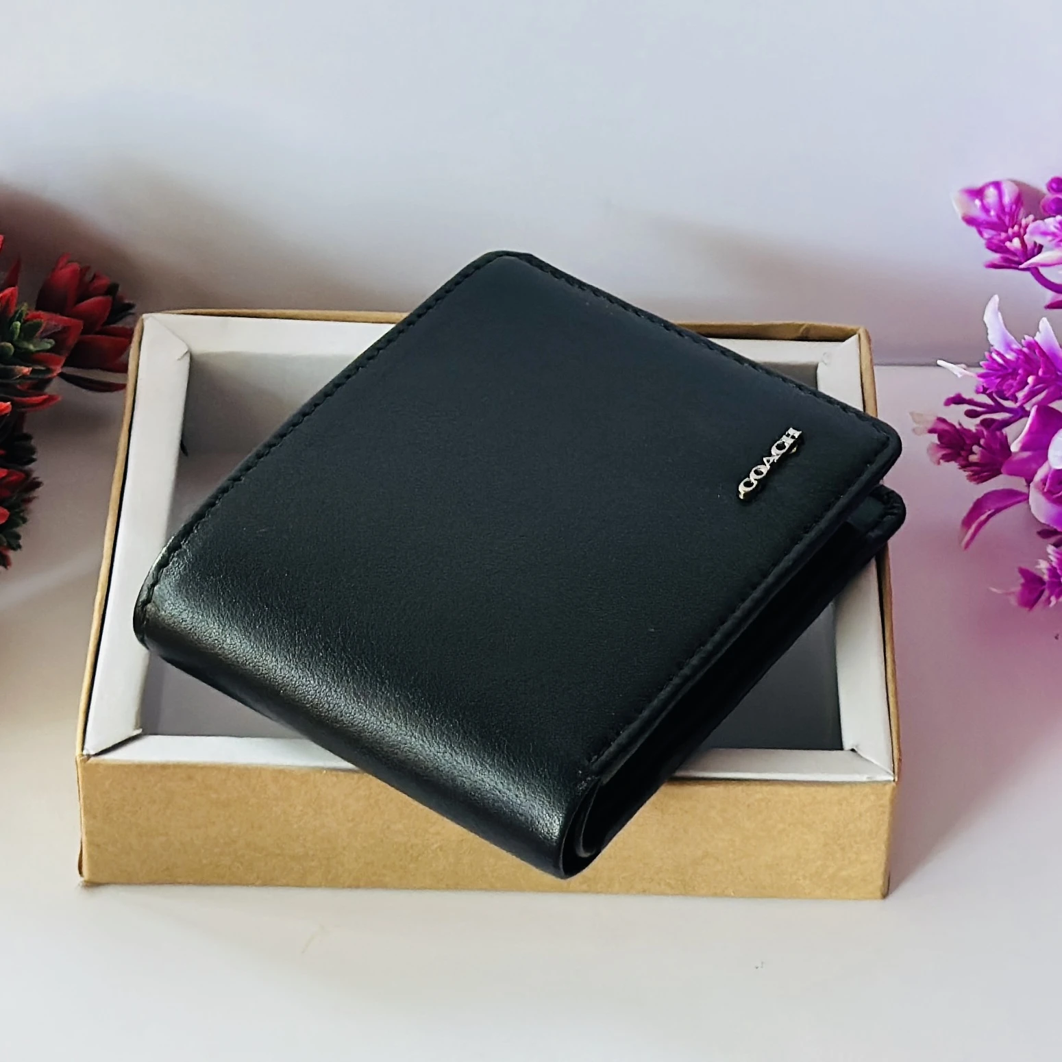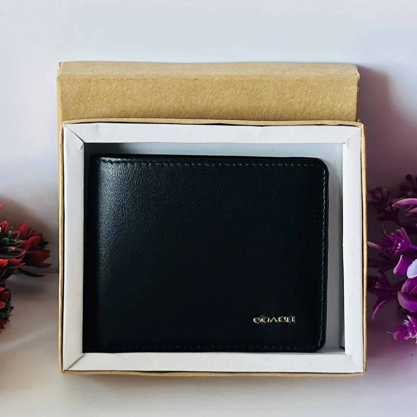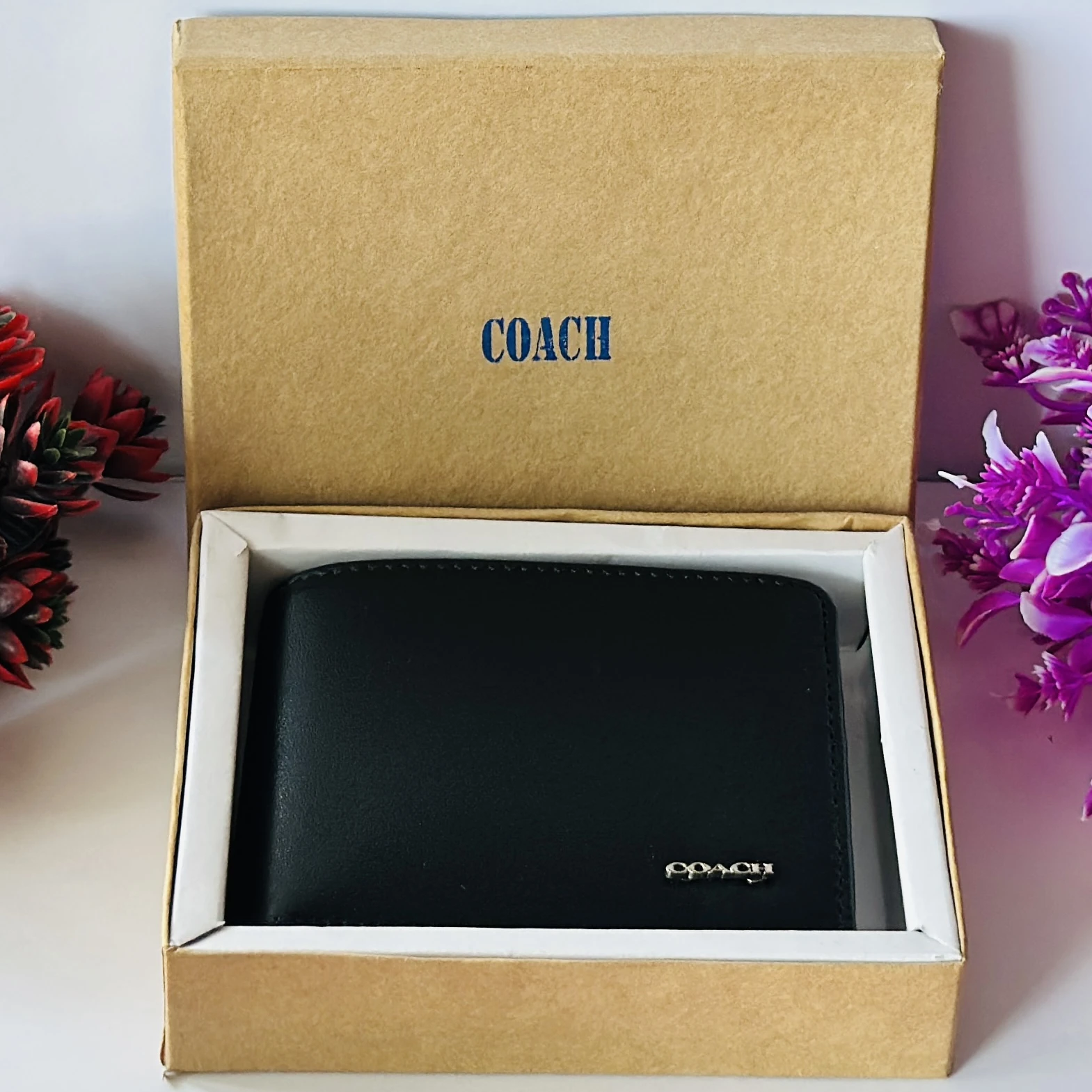 👉 Theme :- Black genuine leather bifold wallet from Coach.