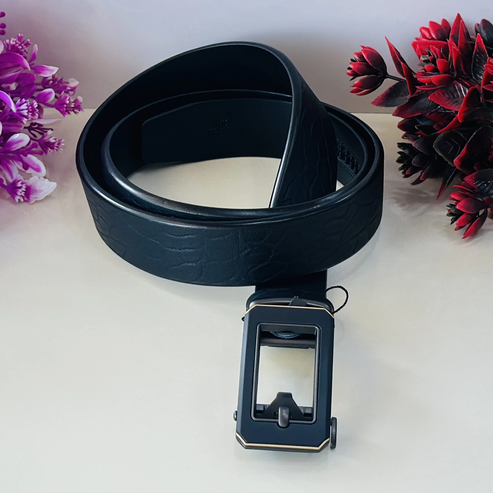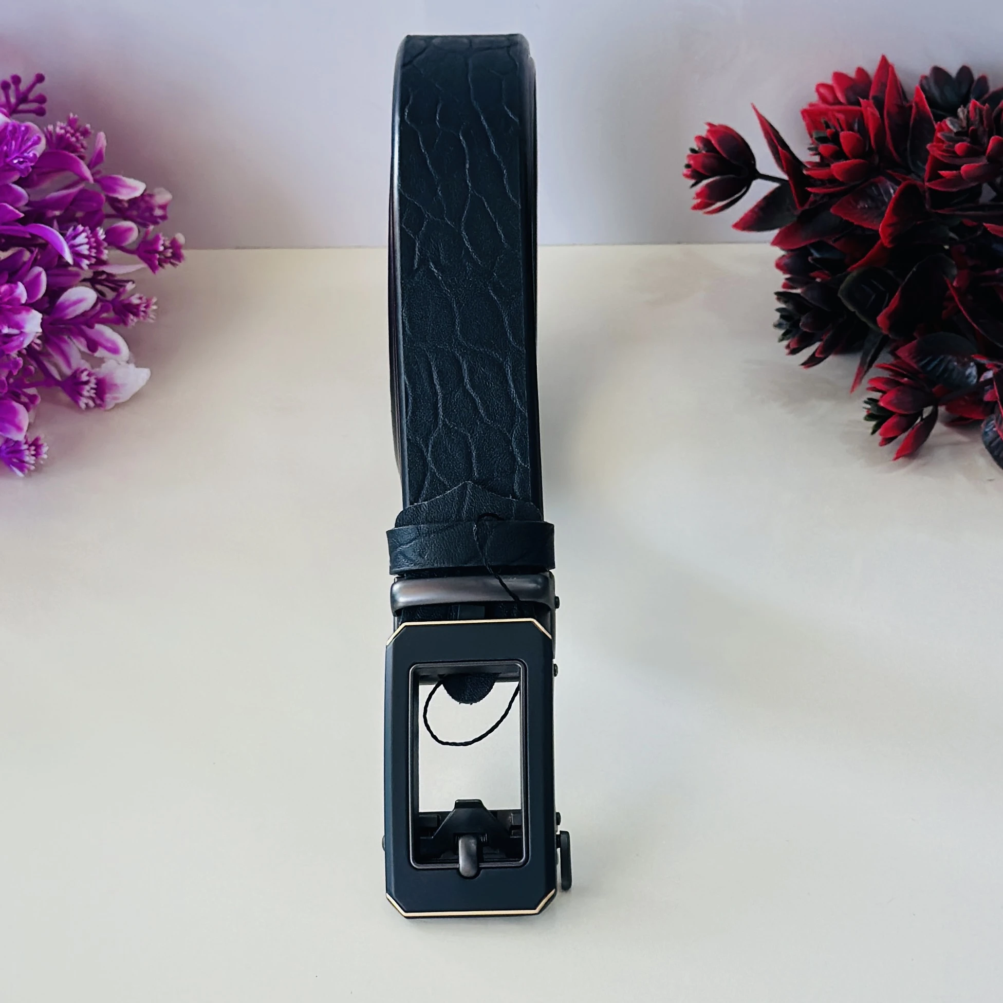 👉 Theme :- Black artificial leather auto-lock buckle belt for men.