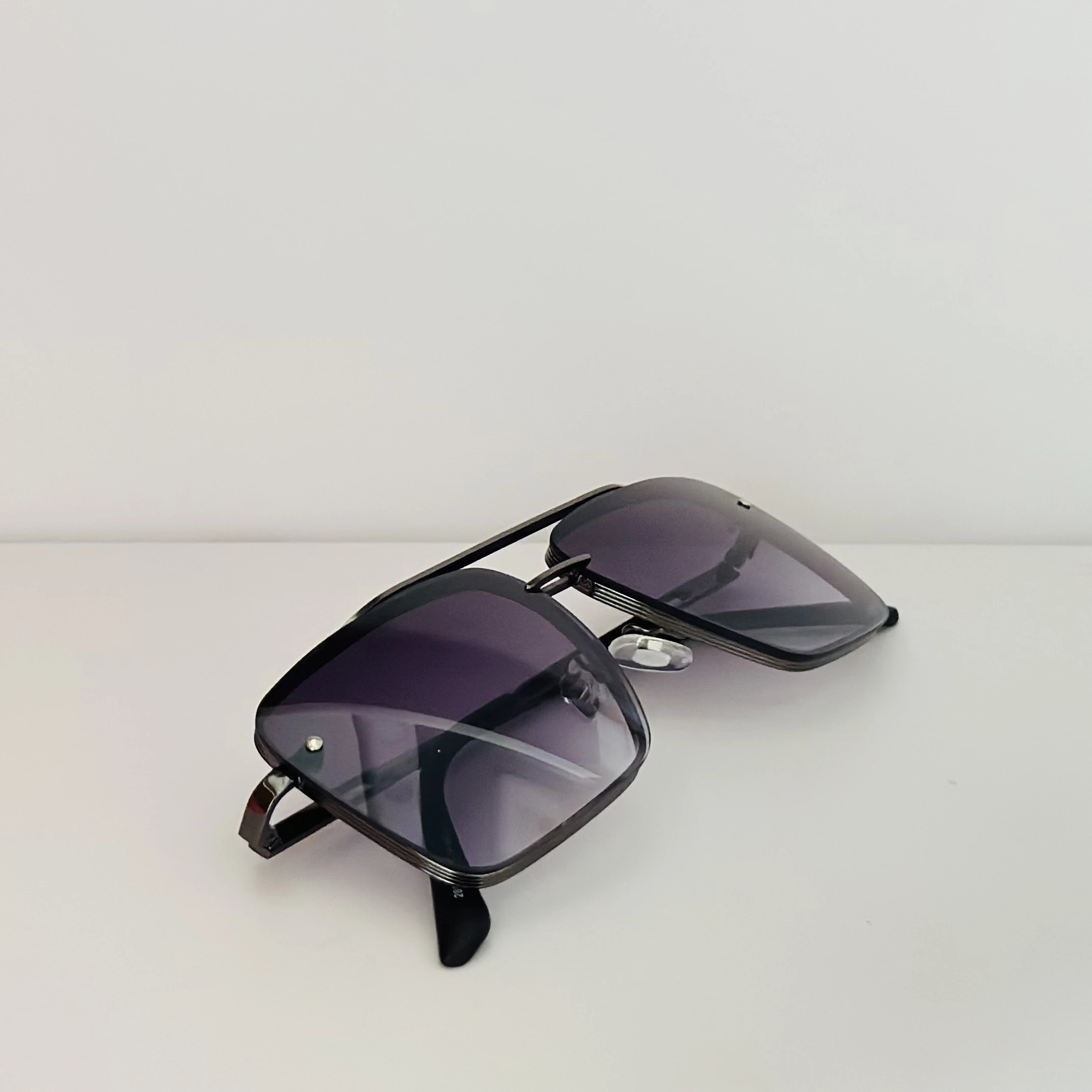 👉 Theme :- Black metal-framed square sunglasses with gradient lenses.