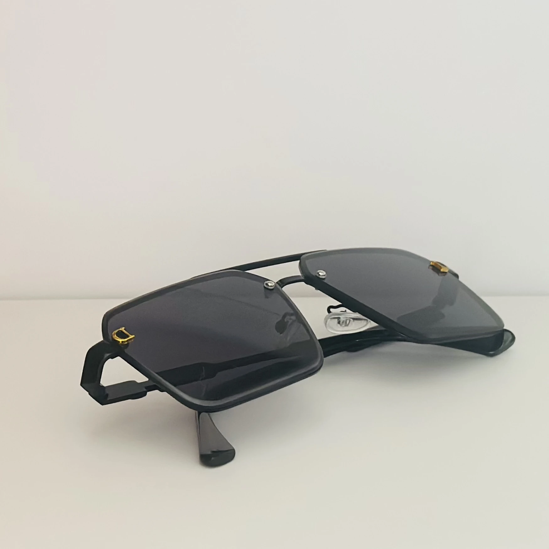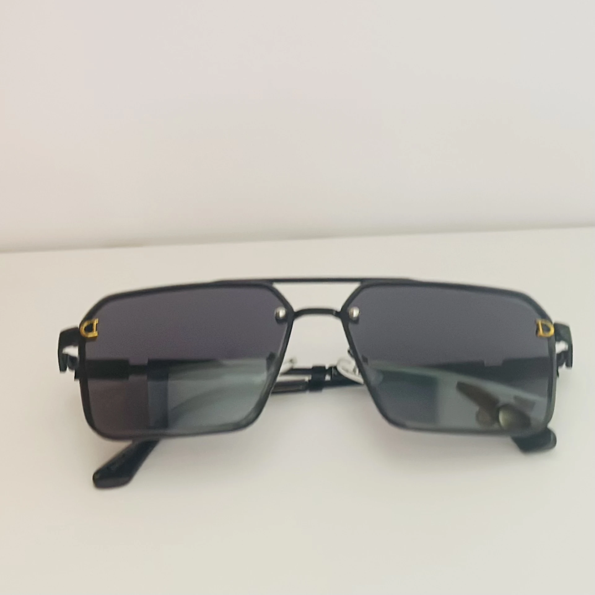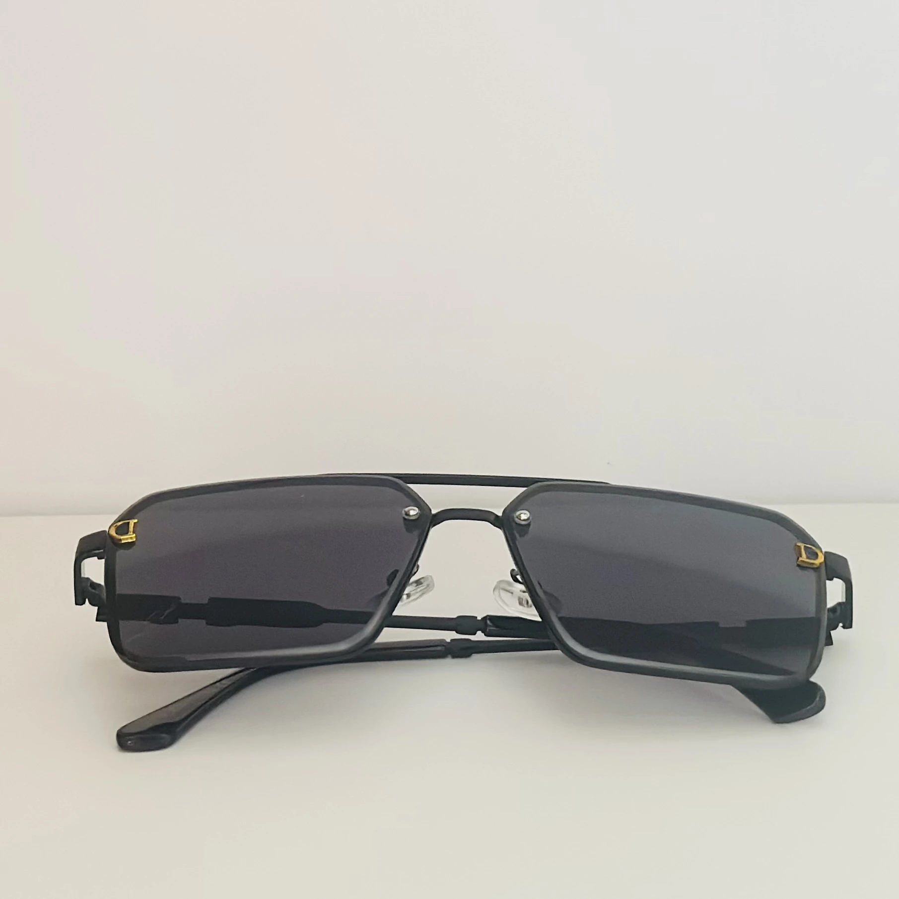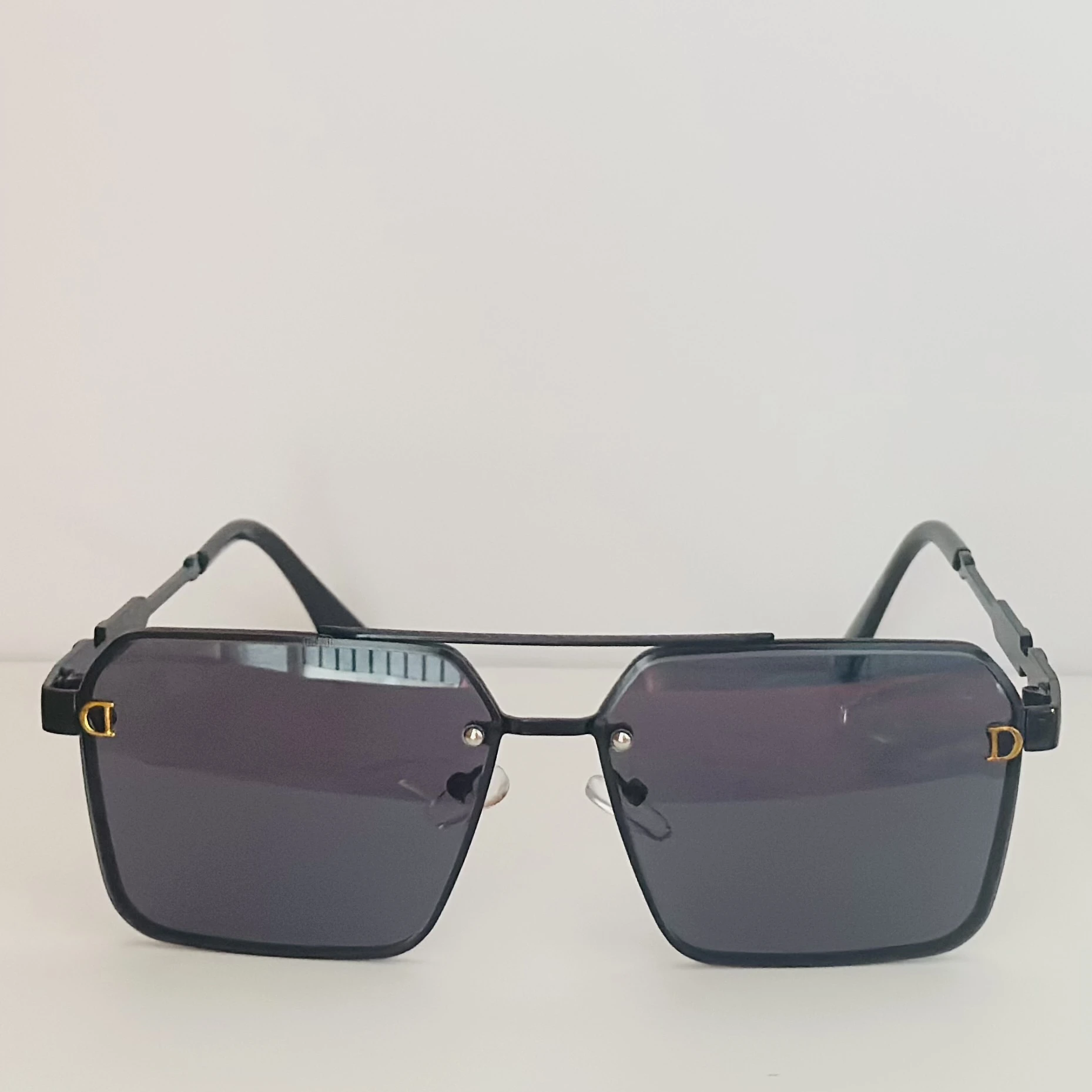 👉 Theme :- Black pilot-style sunglasses with grey polycarbonate lenses.