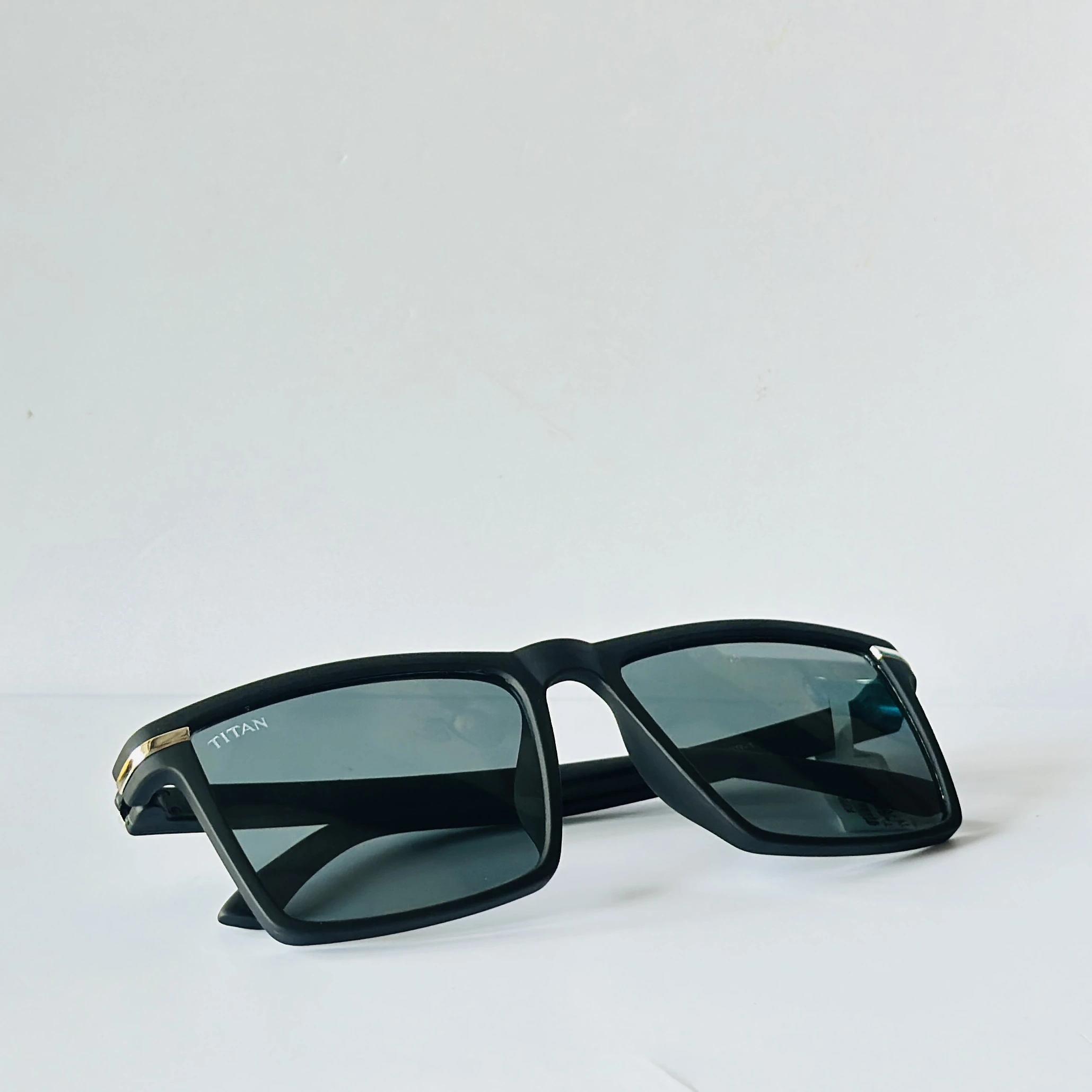 👉 Theme :- Black rectangular frame with blue-toned lenses.