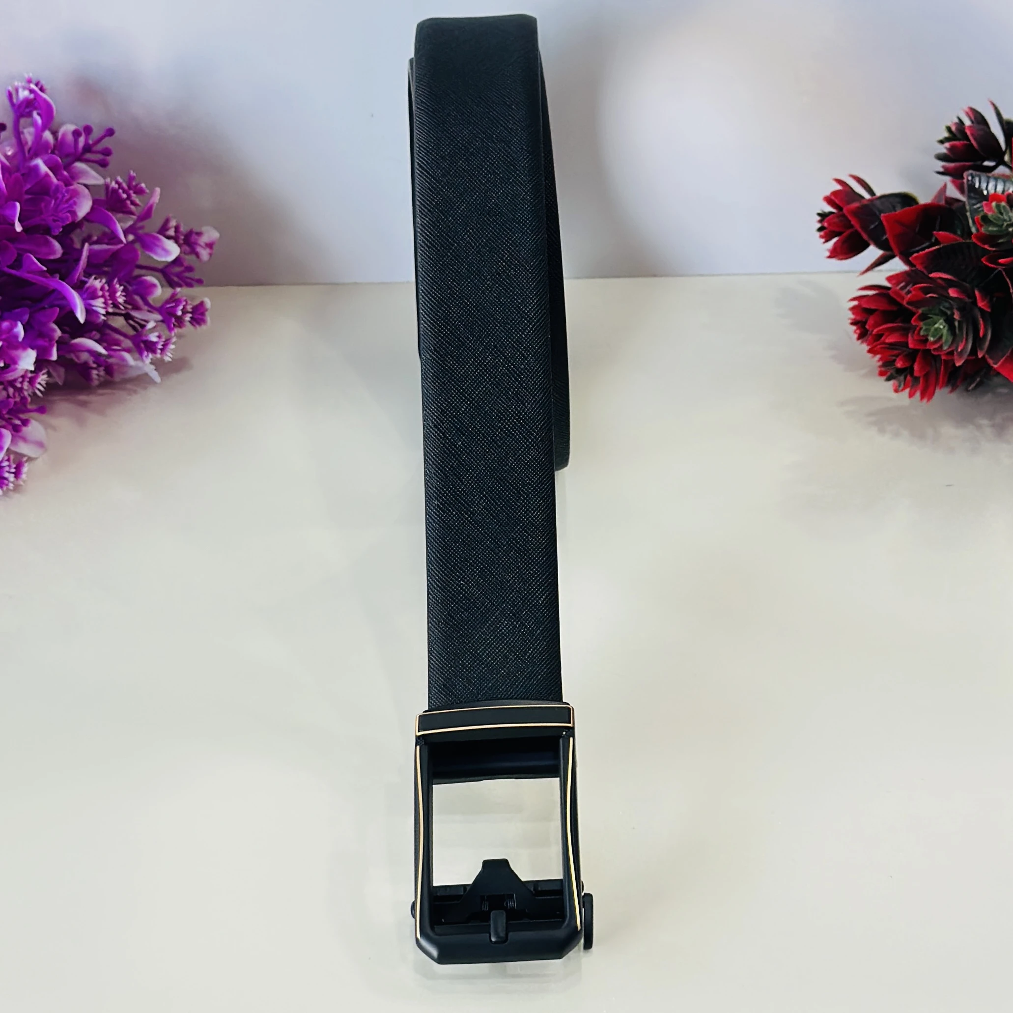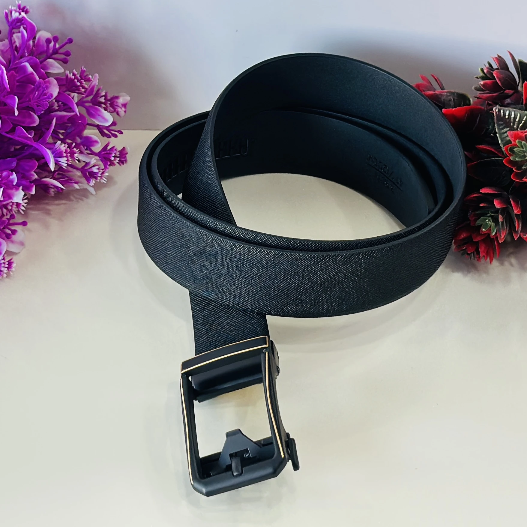 👉 Theme :- Black Saffiano leather reversible belt with a gunmetal buckle.