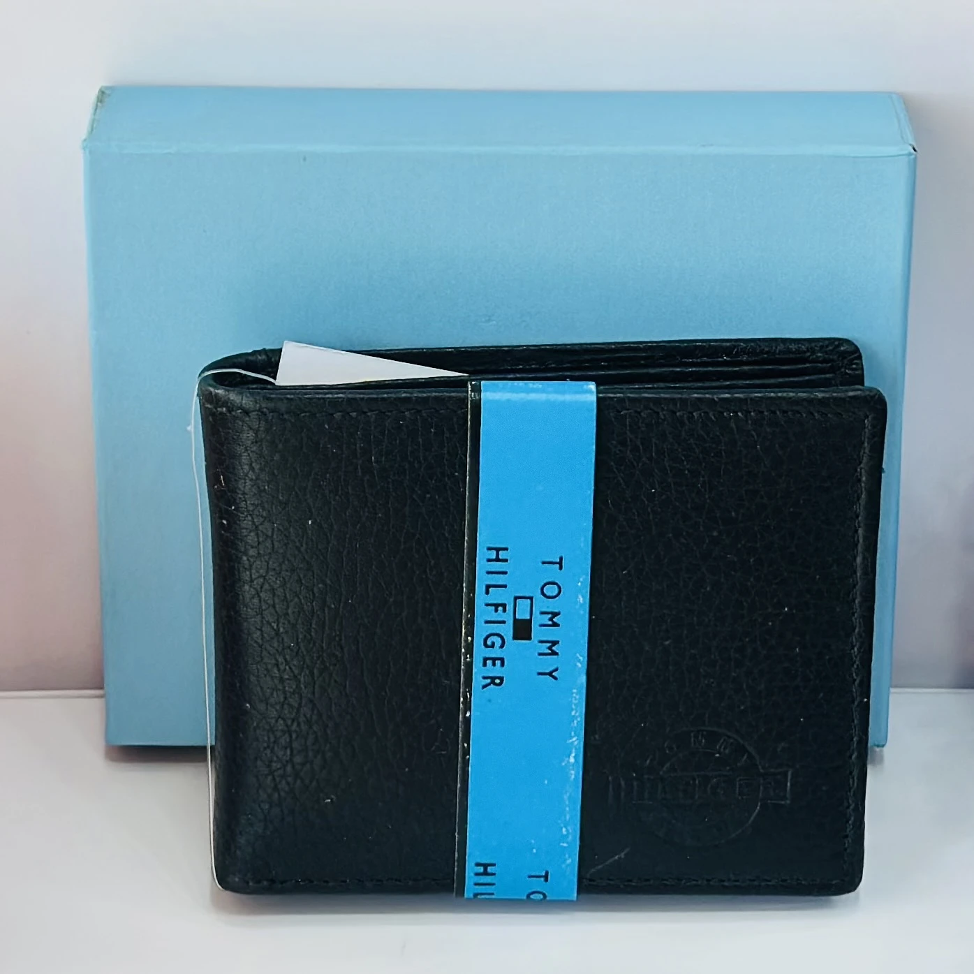 👉 Theme :- Black Tommy Hilfiger men's genuine leather bi-fold wallet.