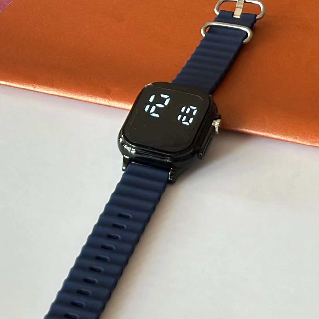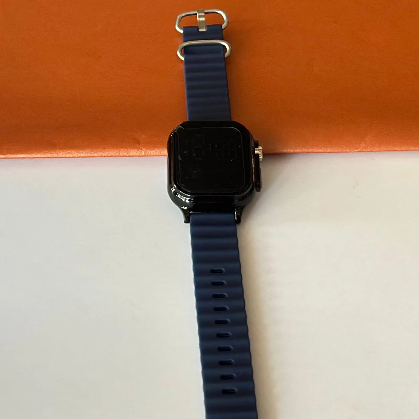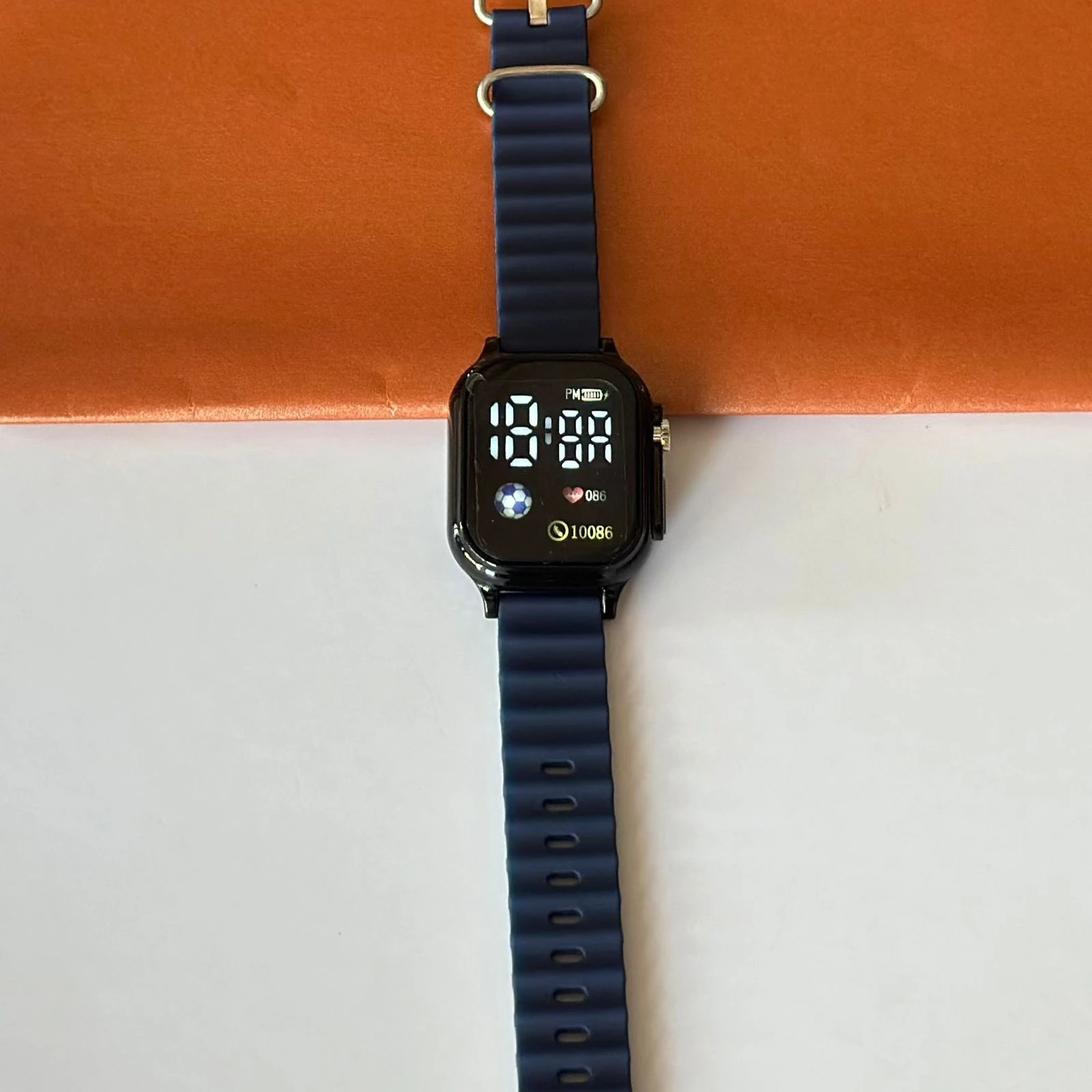 👉 Theme :- blue digital wristwatch with a blue silicone strap.