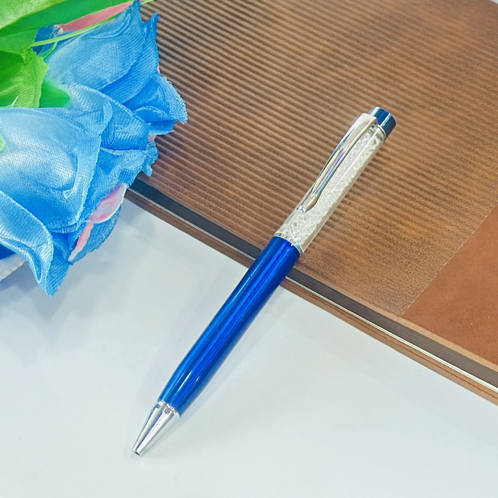 👉 Theme :- Blue Ink Aluminium Crystal Filled Ball Pen.