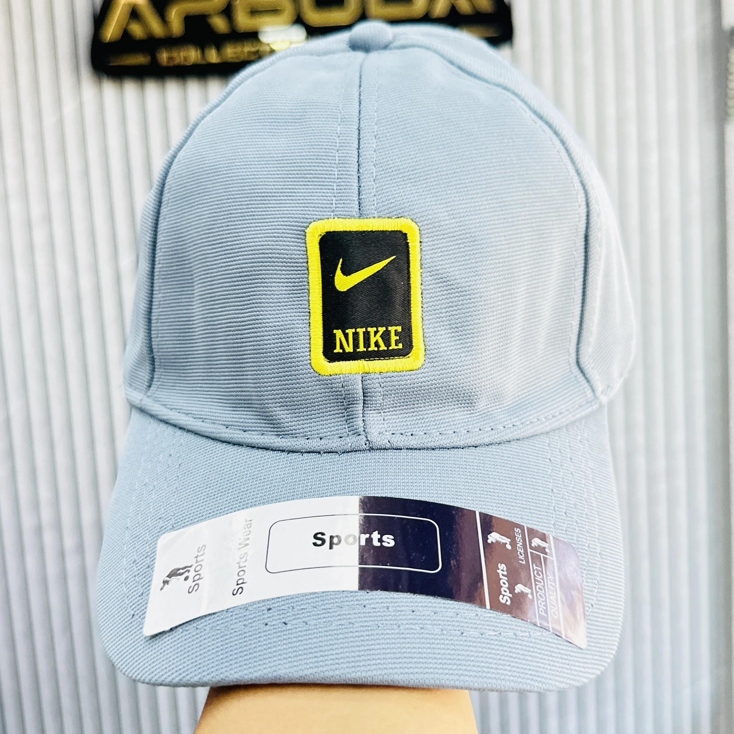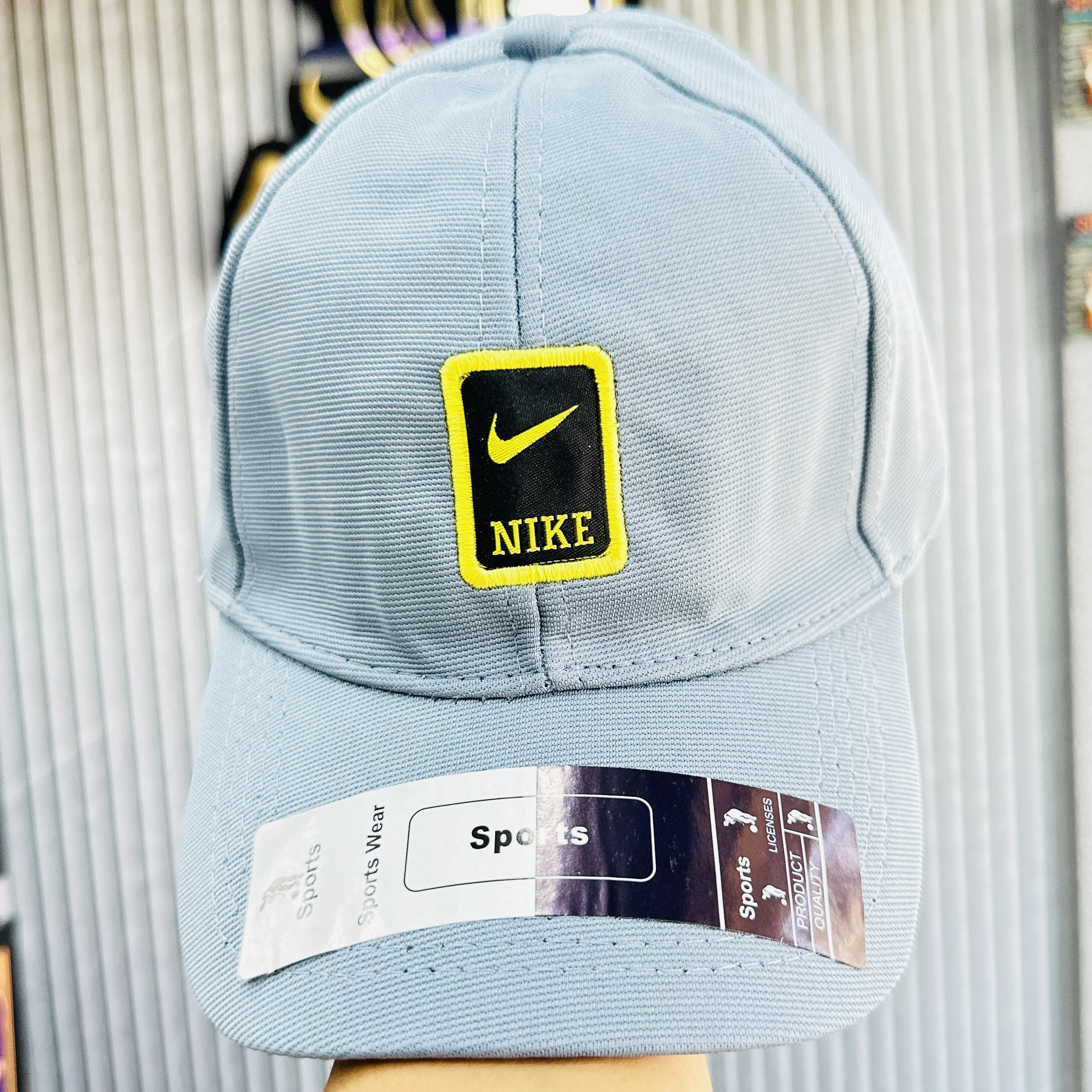 Blue Nike baseball cap featuring a yellow and black logo patch on the front.