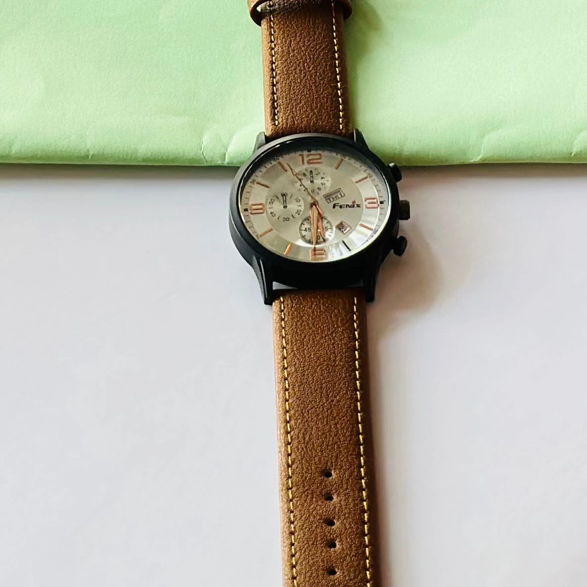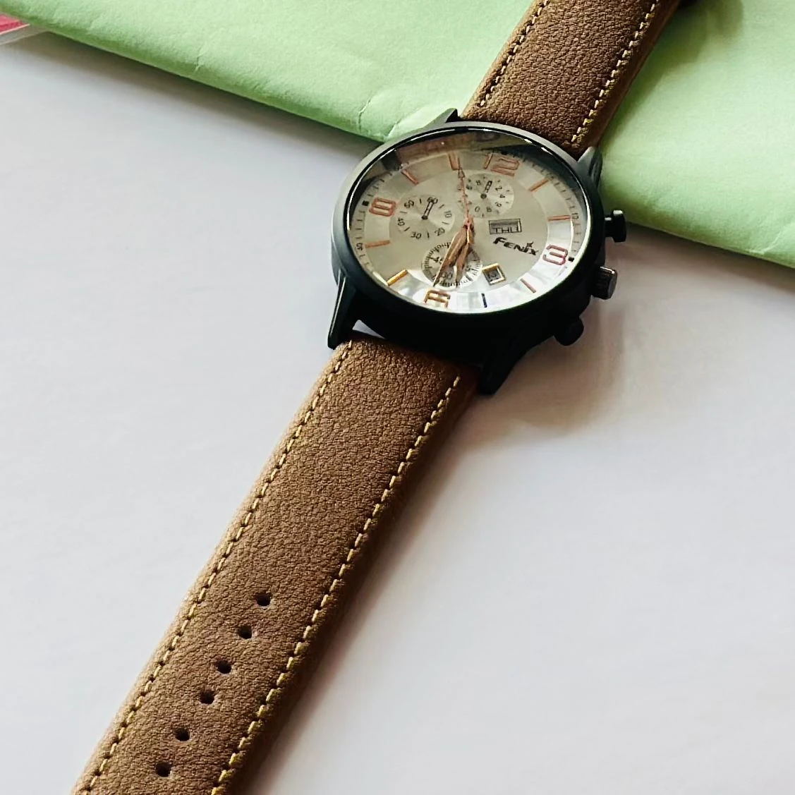 👉 Theme :- Quartz Multifunction watch for men with a black dial and a black leather strap.