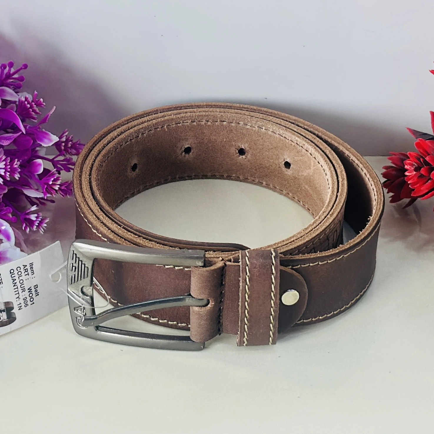 Brown genuine leather belt