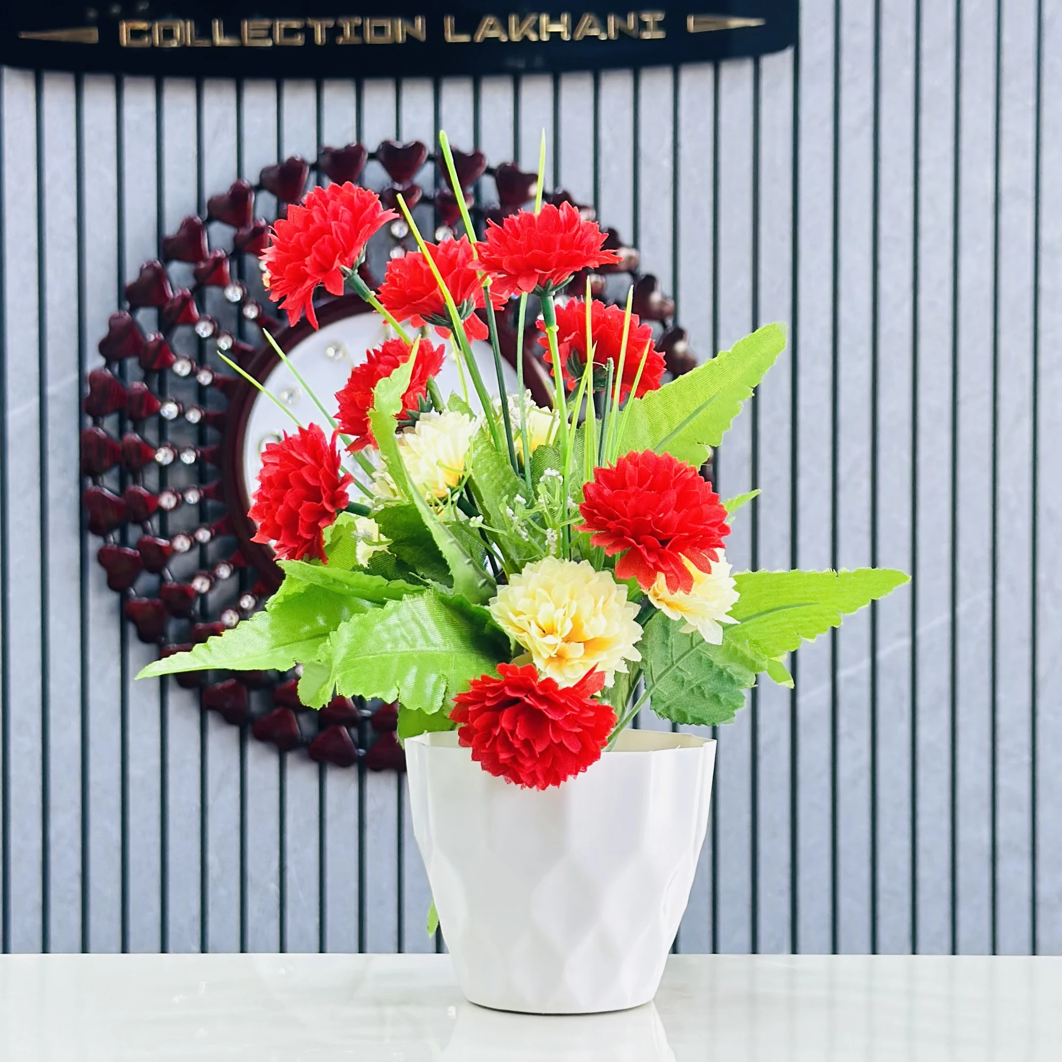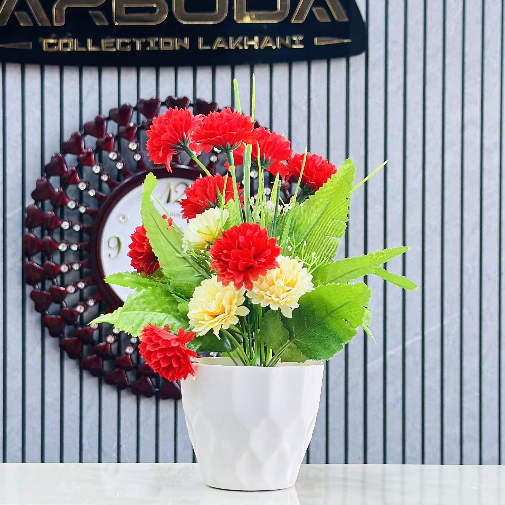 👉 Theme :- carnation flower arrangement in a white ceramic-like pot.