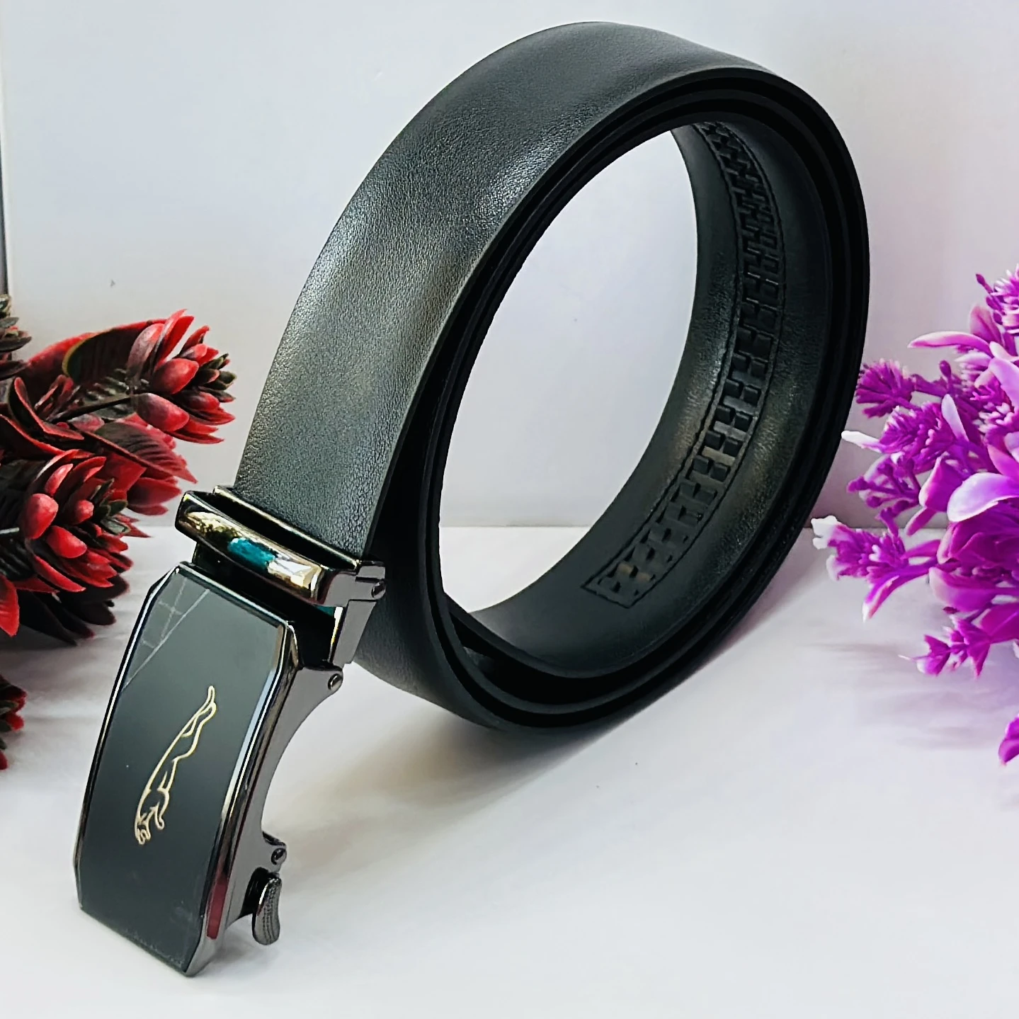 👉 Theme :-Men's Artificial Leather Auto Lock Buckle Belt for Men (Black)