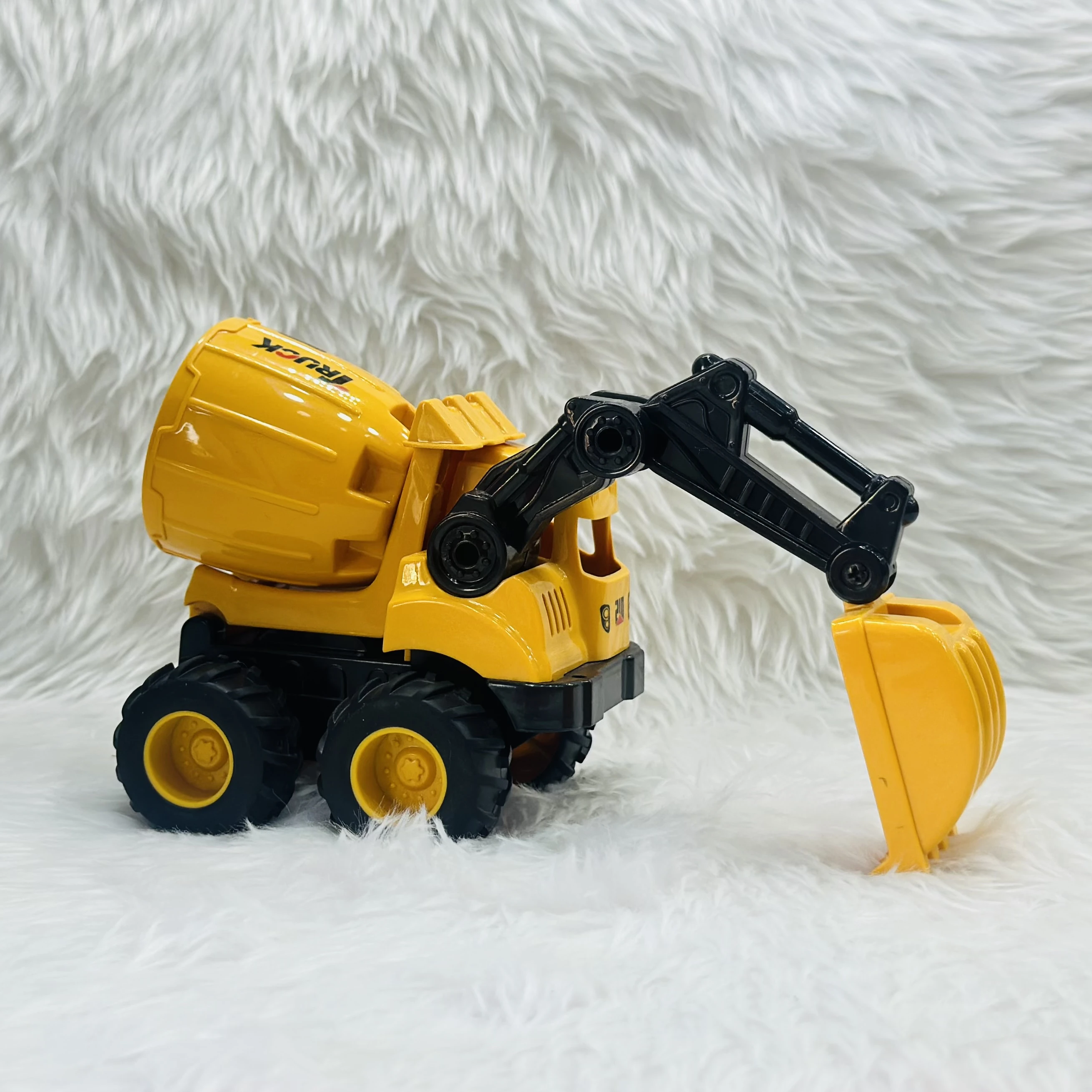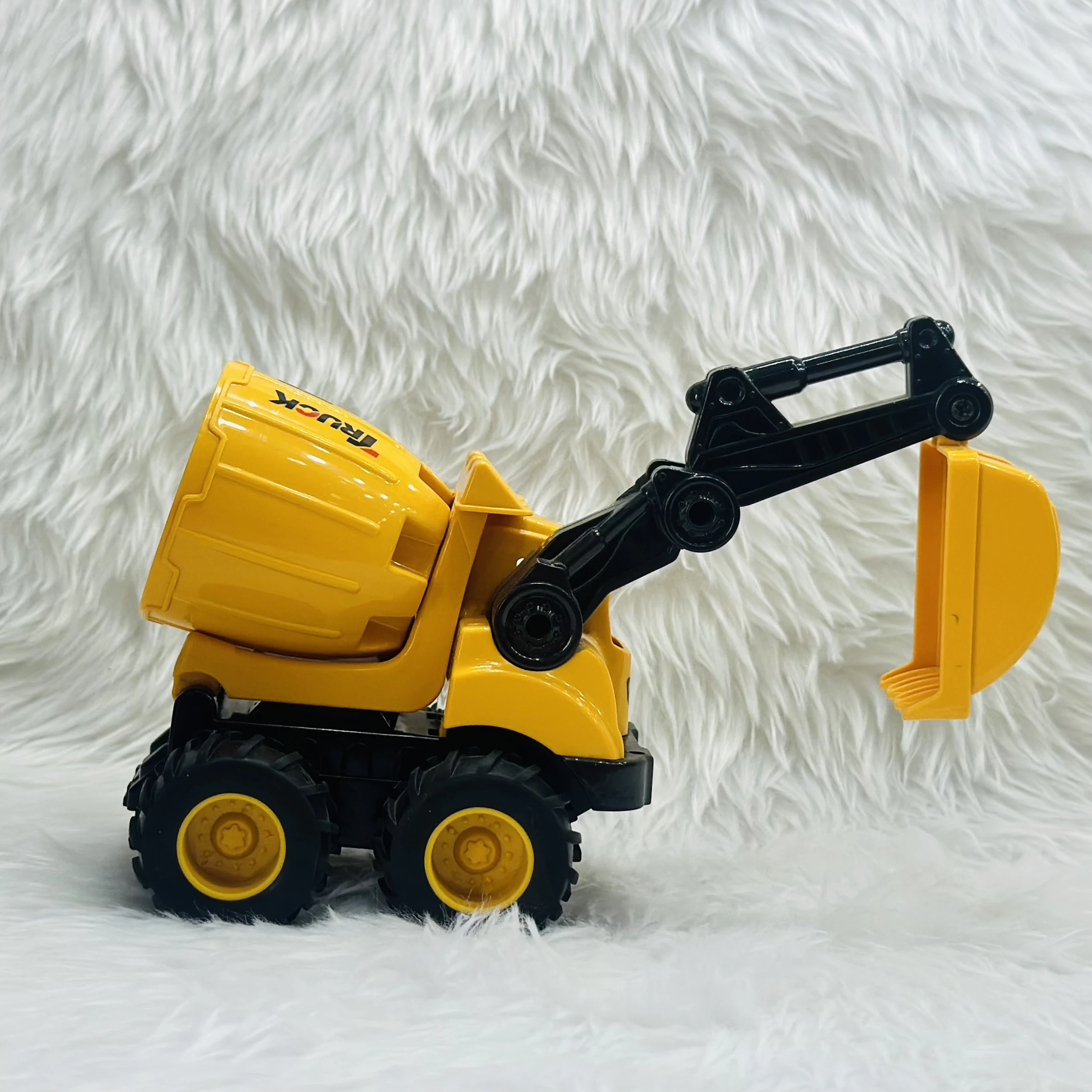 👉 Theme :- Cement mixer with an attached excavator arm.