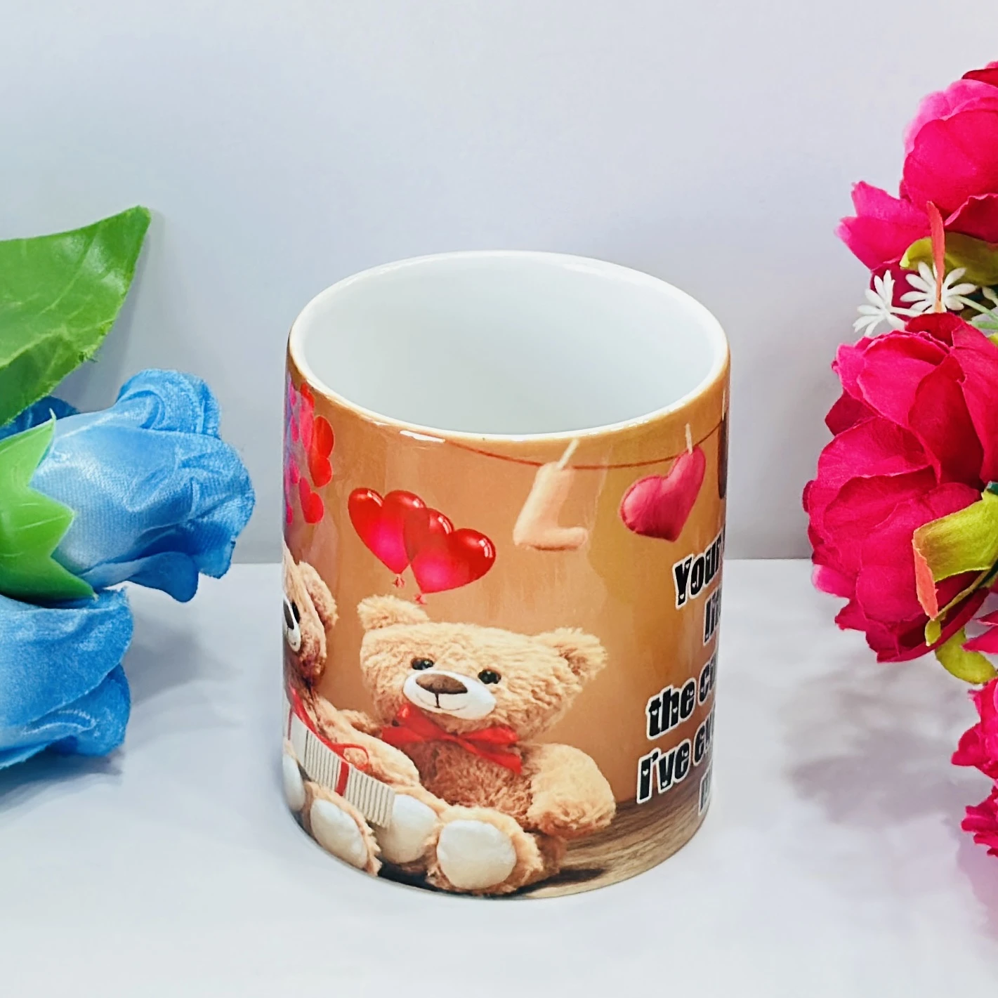 👉 Theme :- ceramic coffee mug with a teddy bear and heart design.