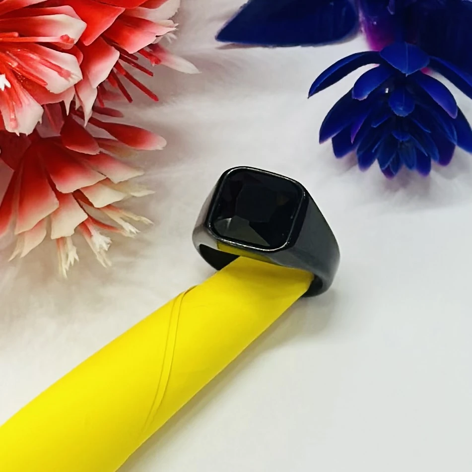 👉 Theme :- Chimes stainless steel black ring with a square-shaped crystal.