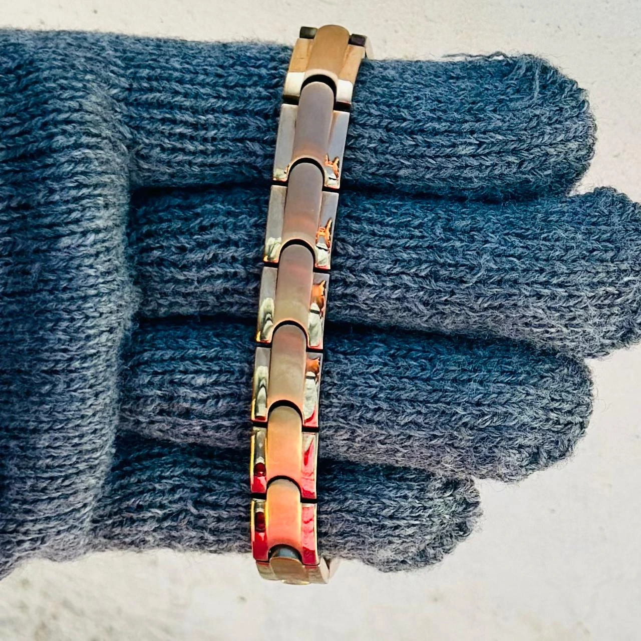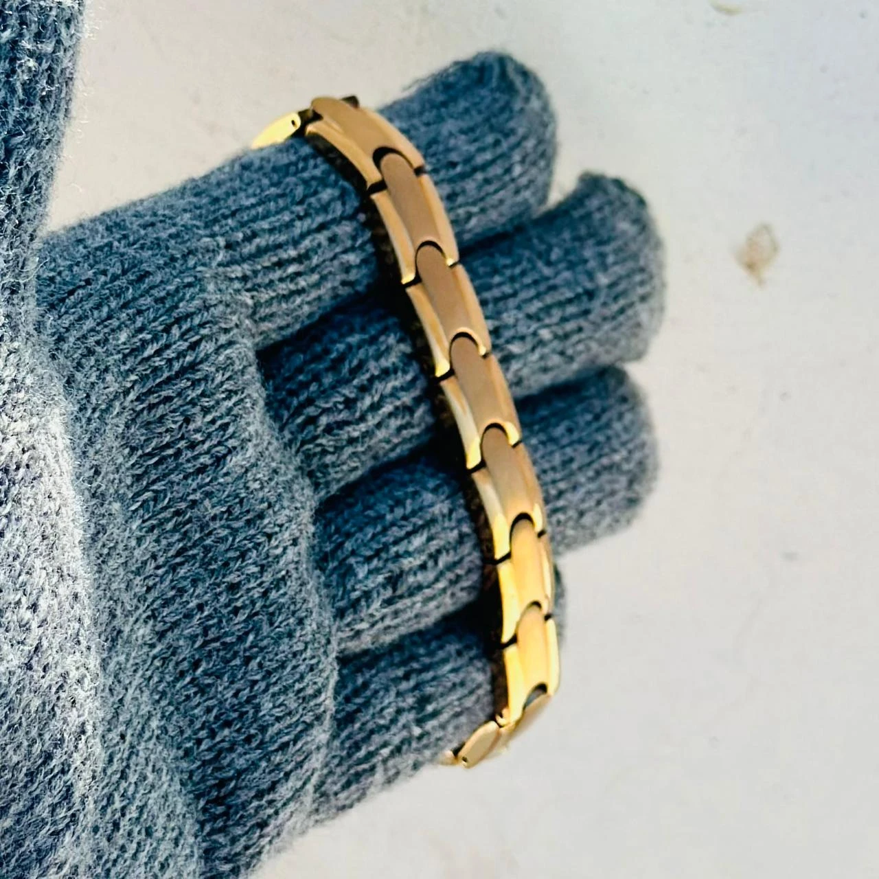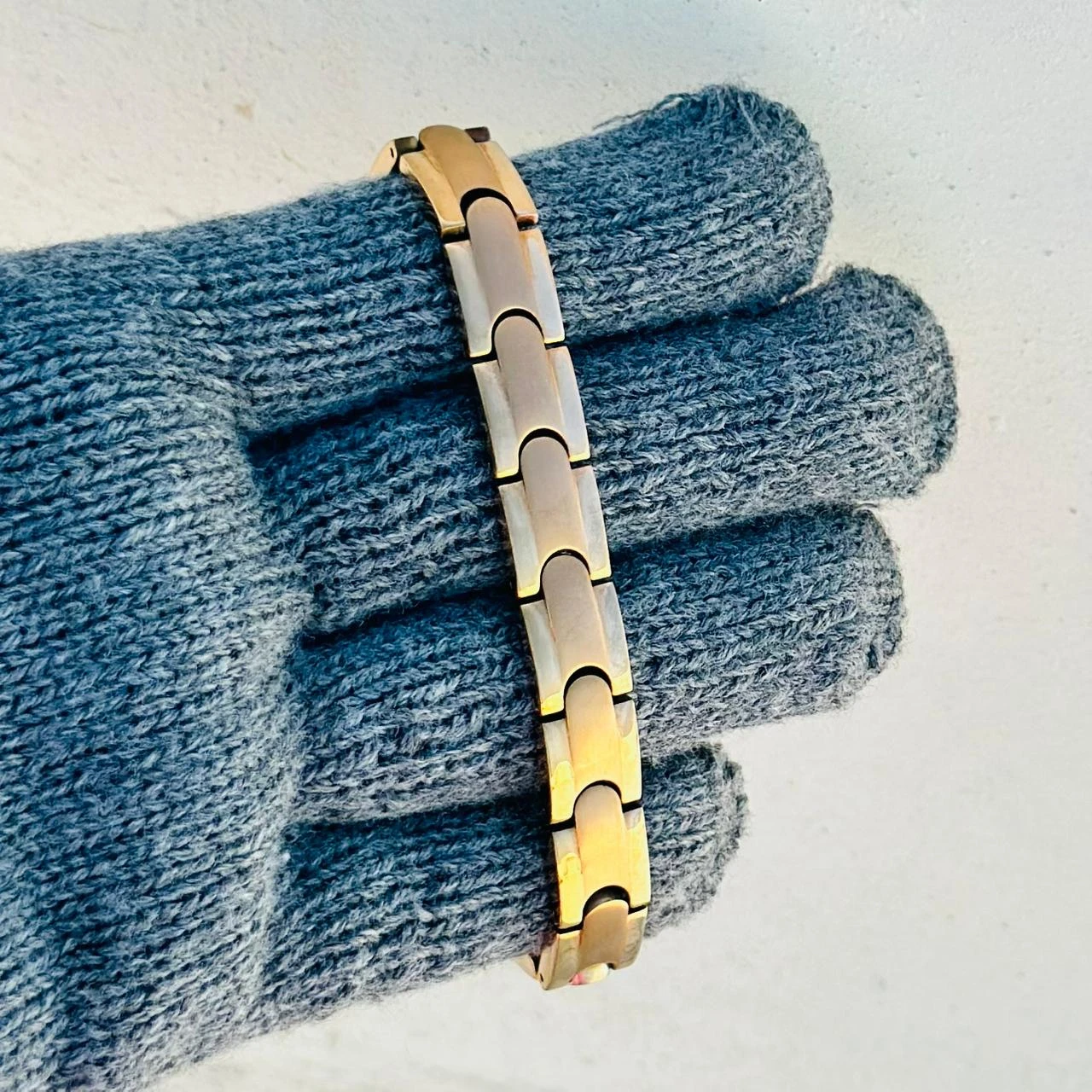 👉 Theme :- Classic Gold-Toned Stainless Steel Power Element Bracelet