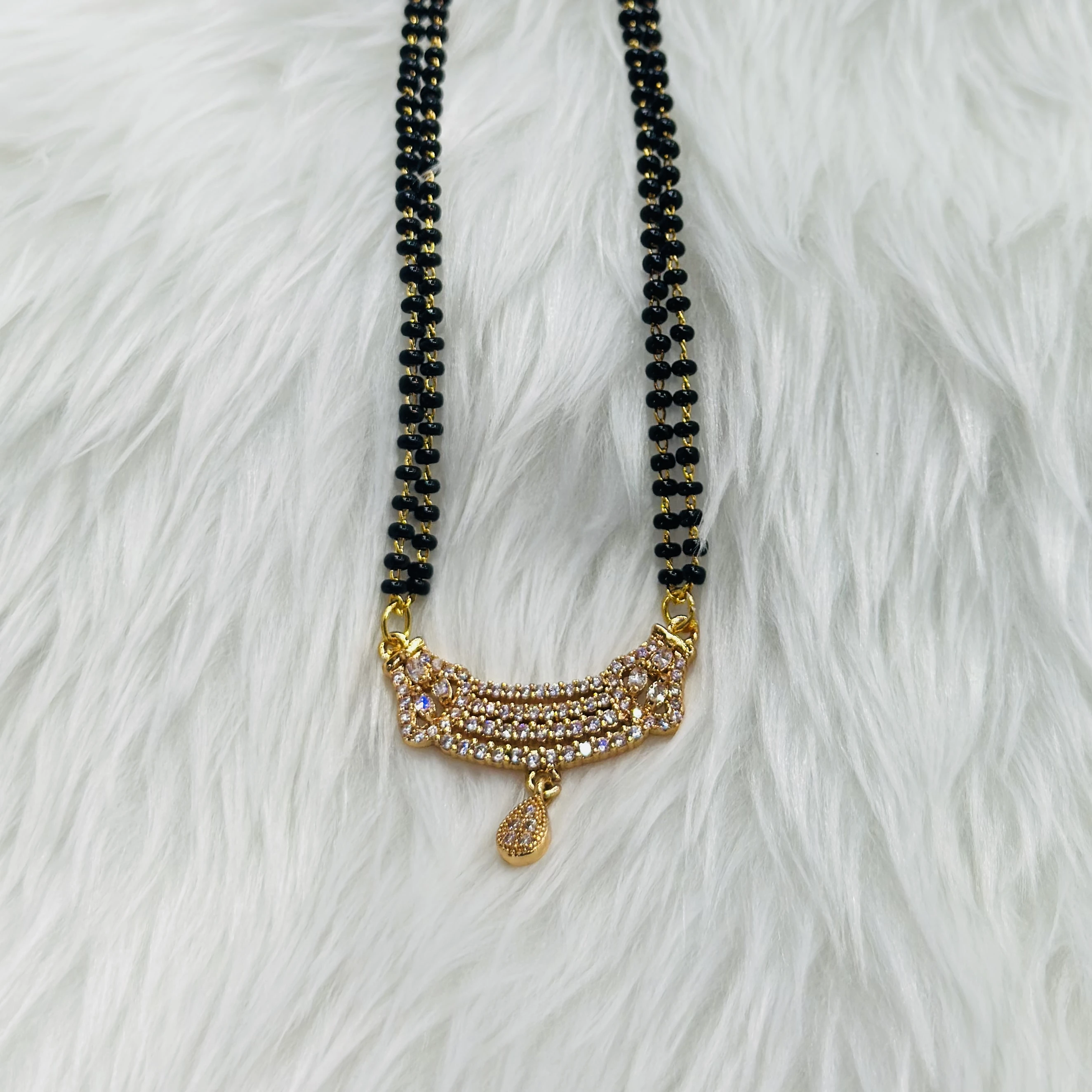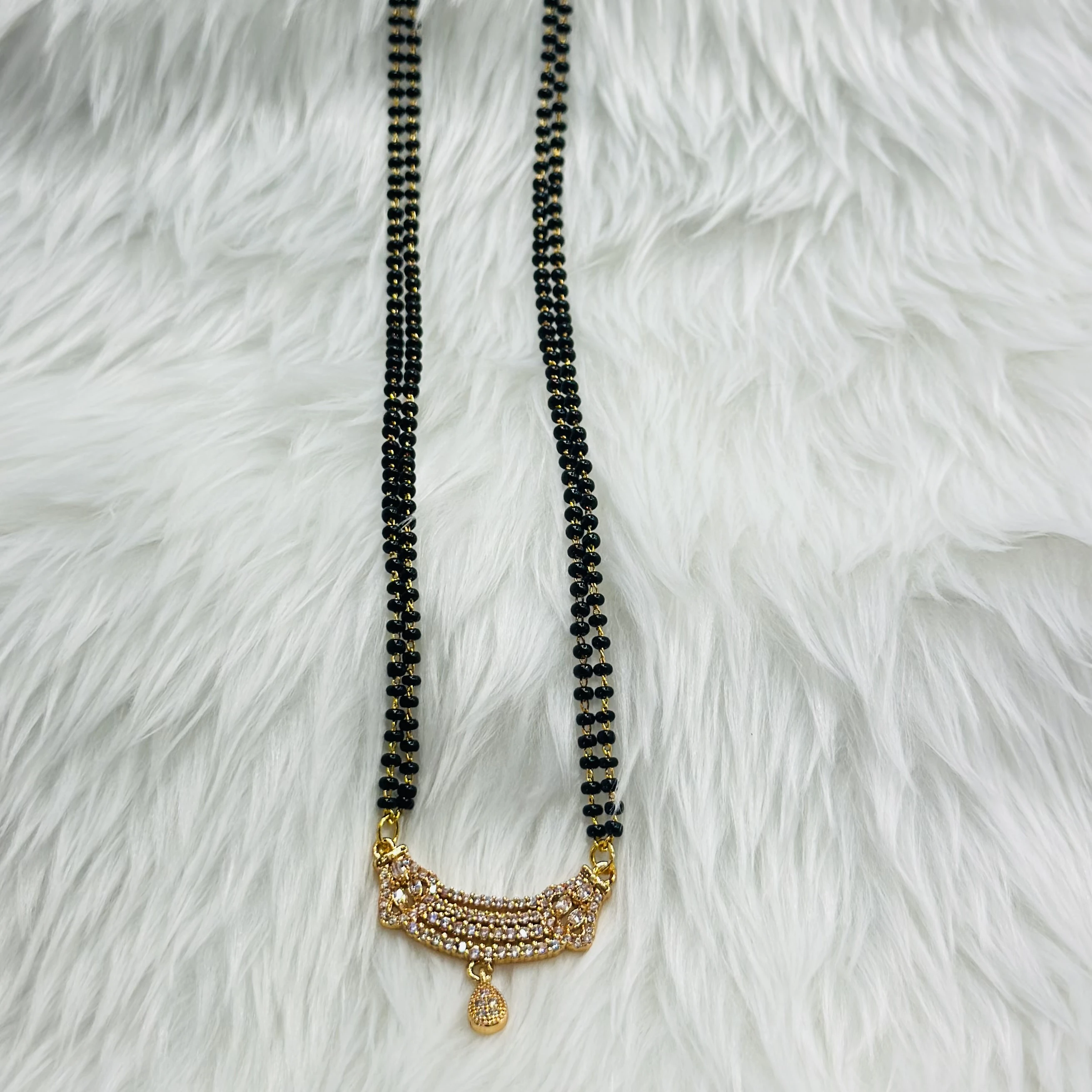 👉Theme :- contemporary mangalsutra with a rose gold-toned, gemstone-studded pendant.