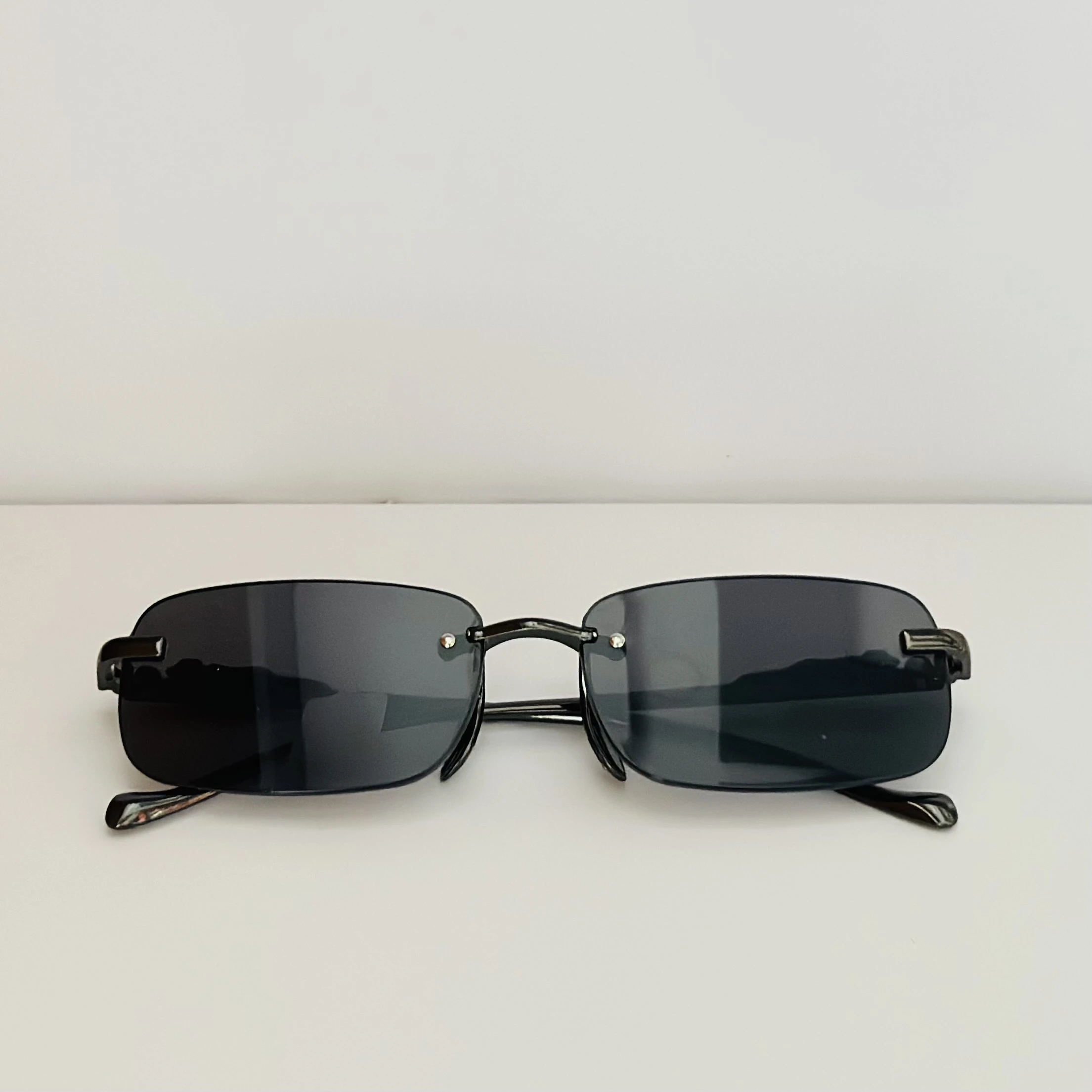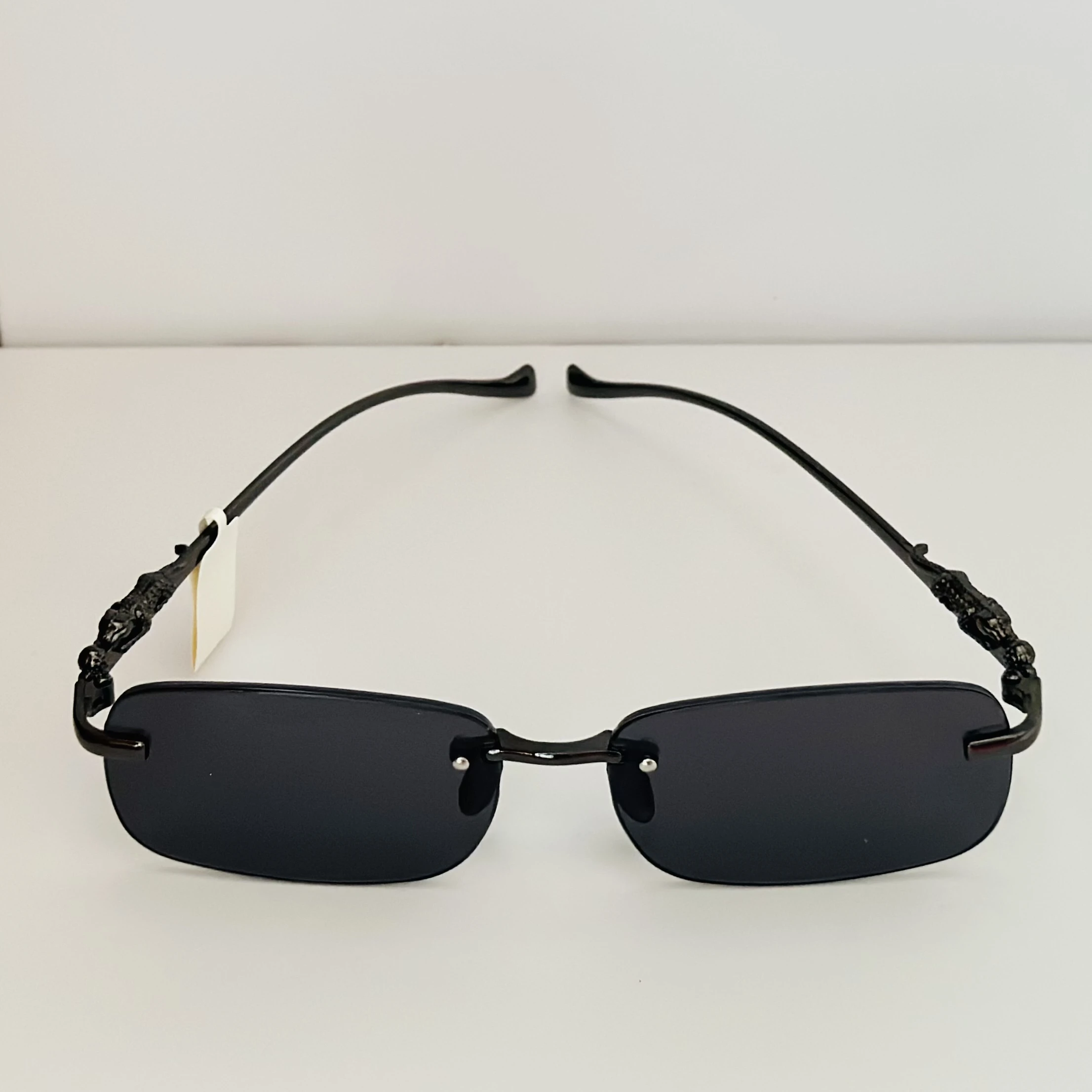 👉 Theme :- Creature Mc Stan rimless unisex rectangular sunglasses in black.