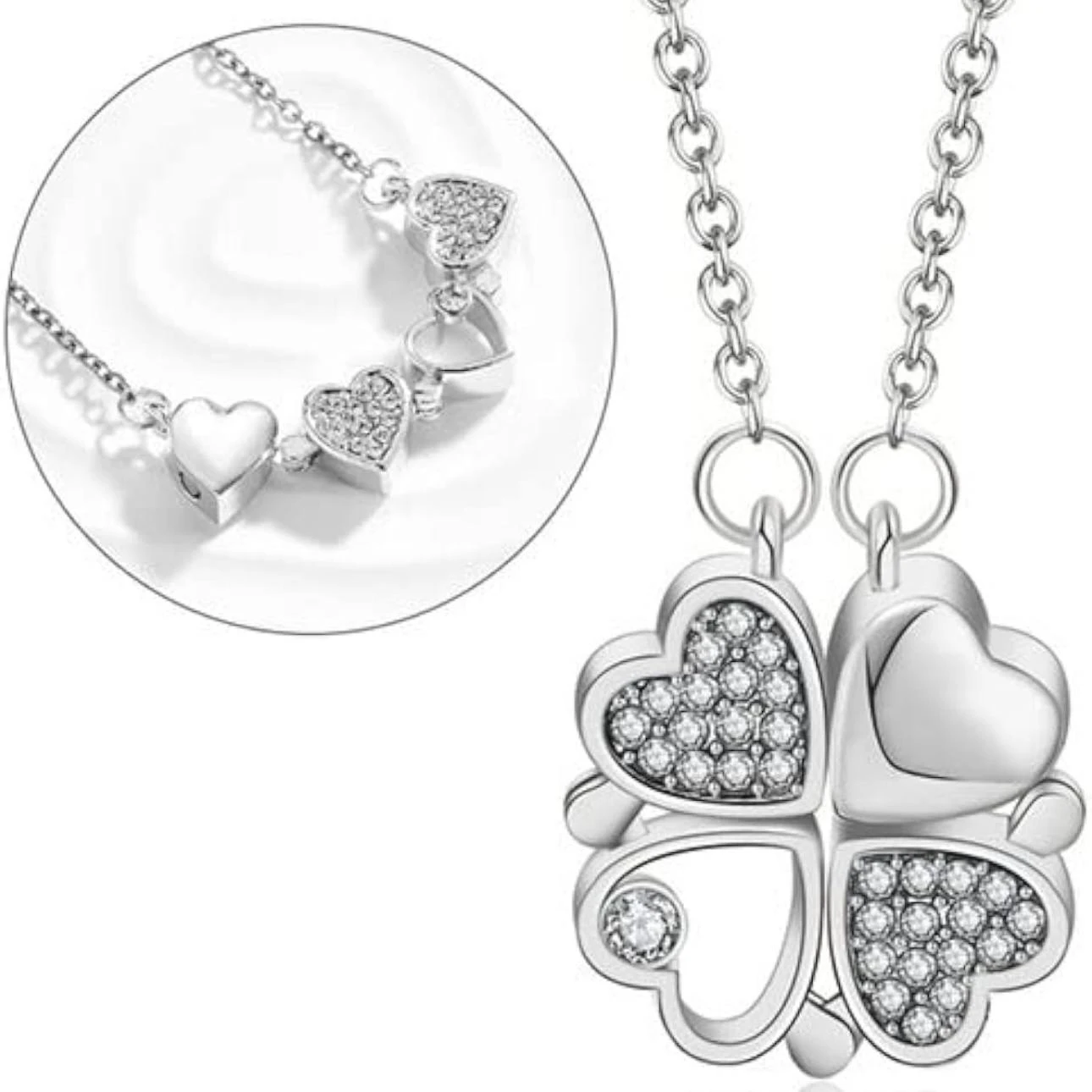 👉 Theme :-silver-colored four-leaf clover pendant