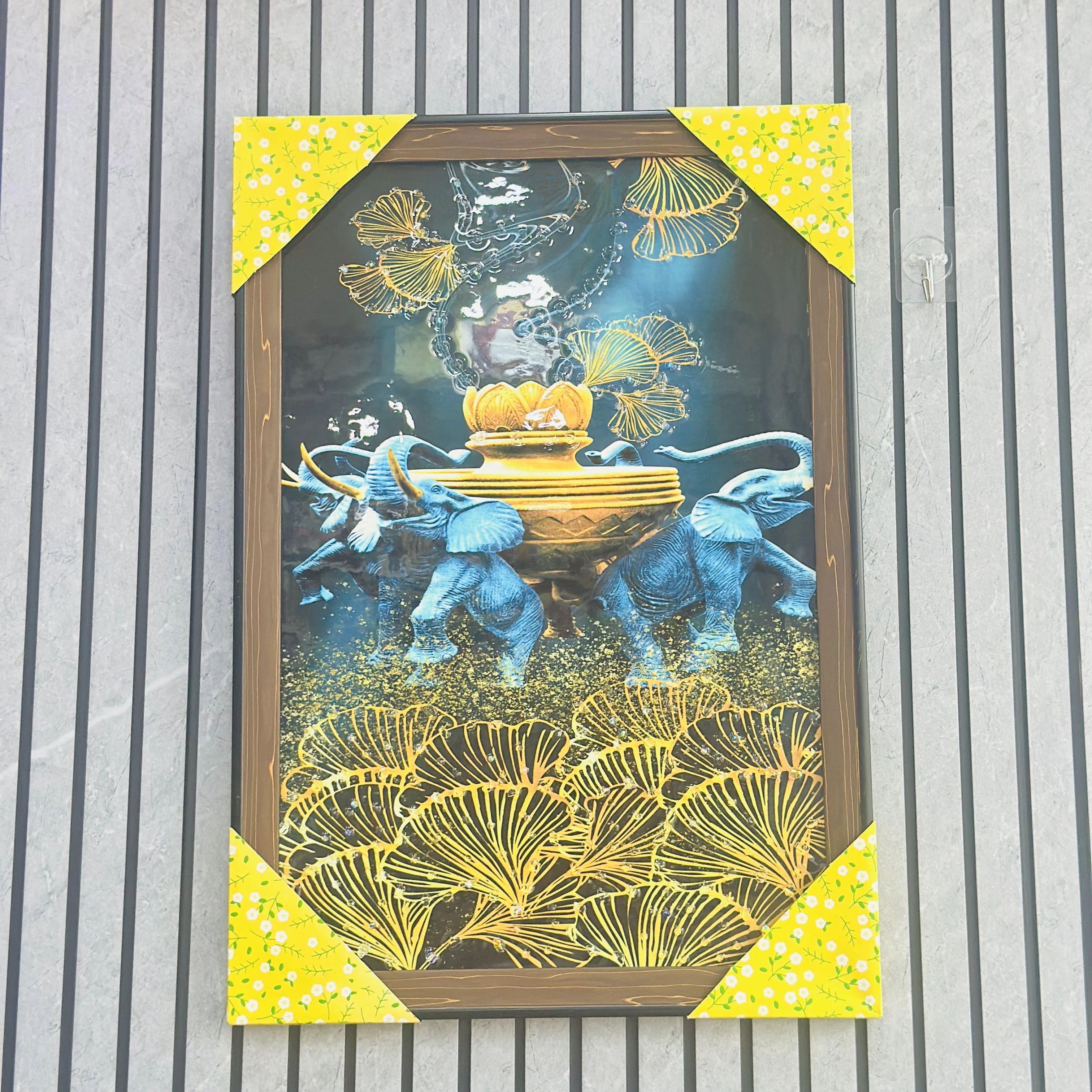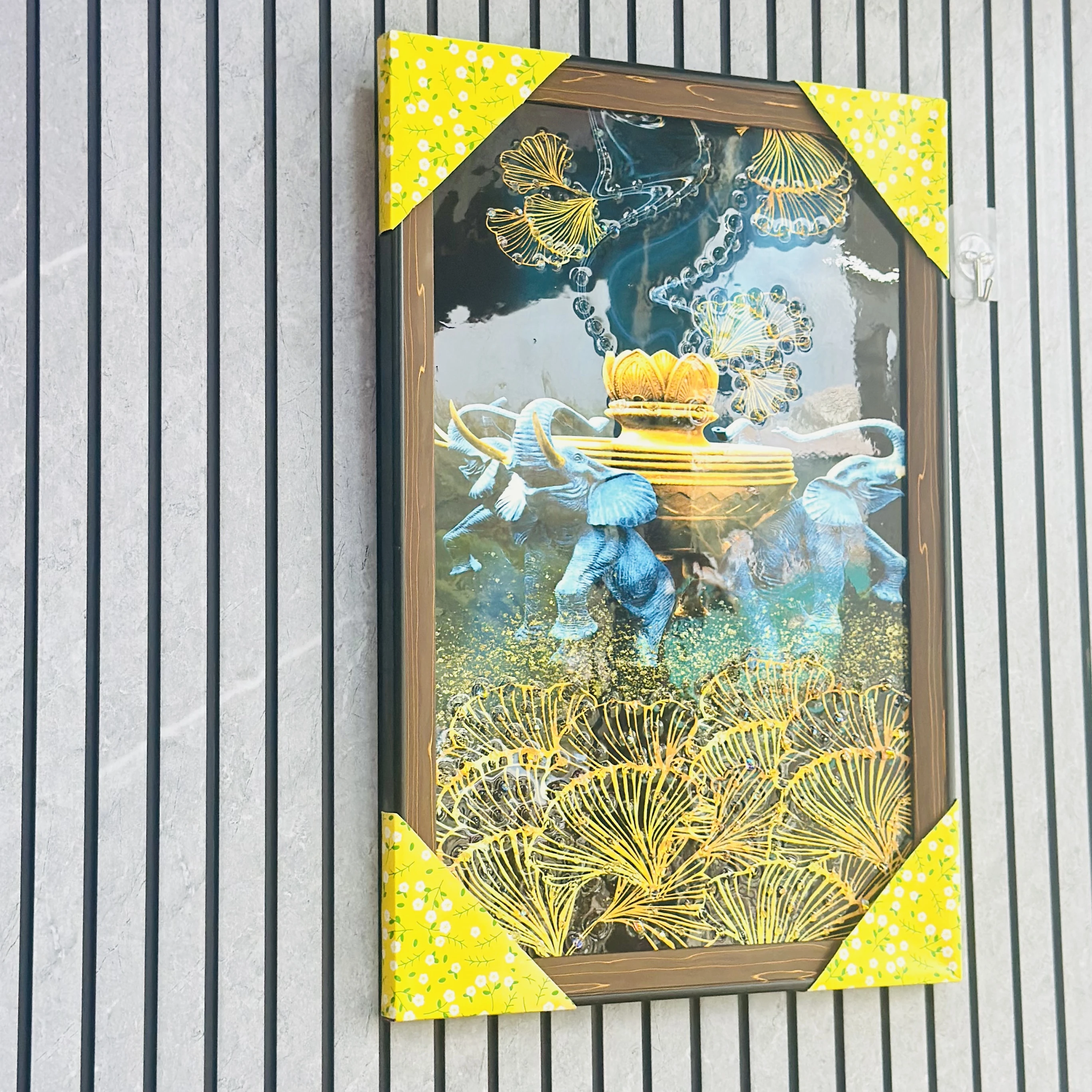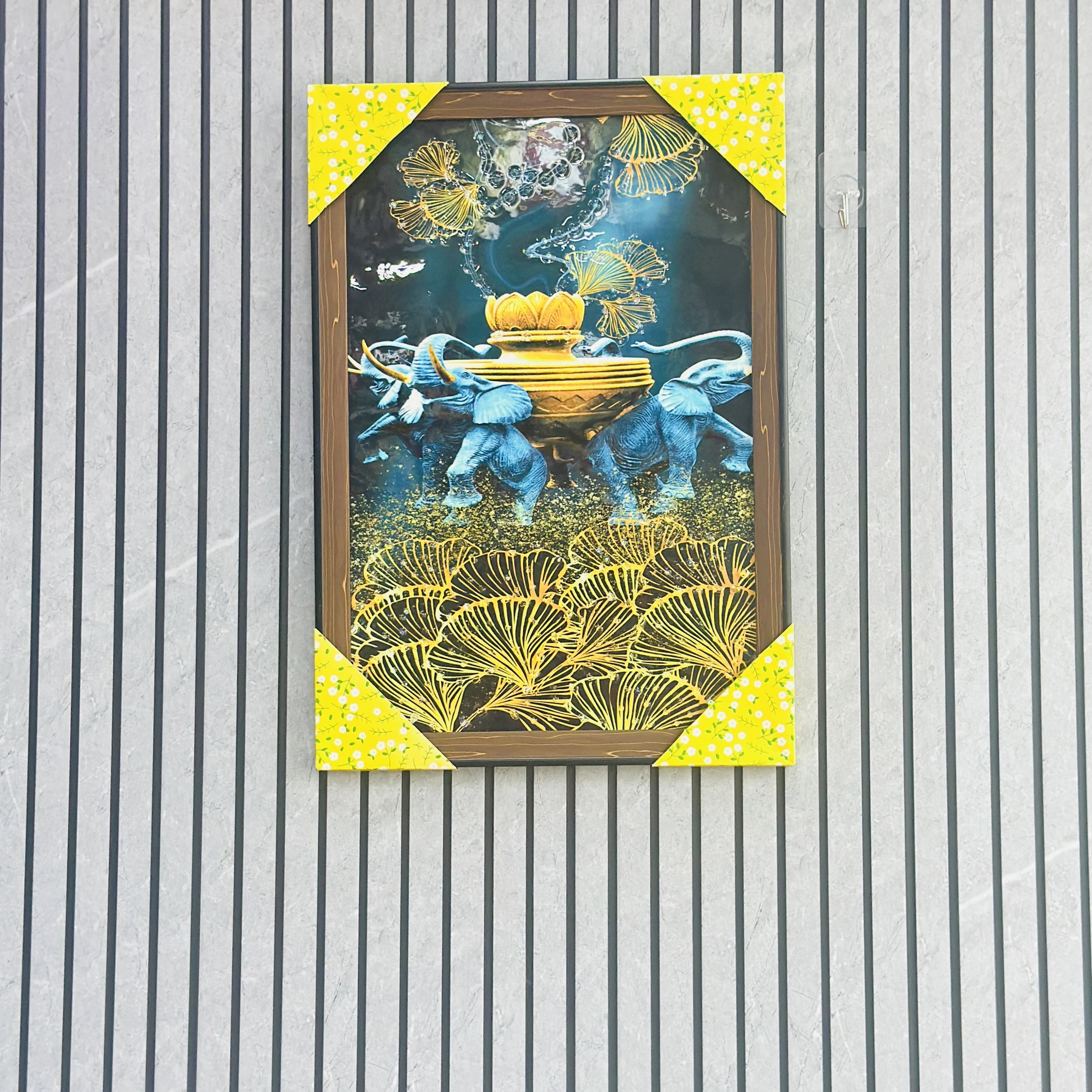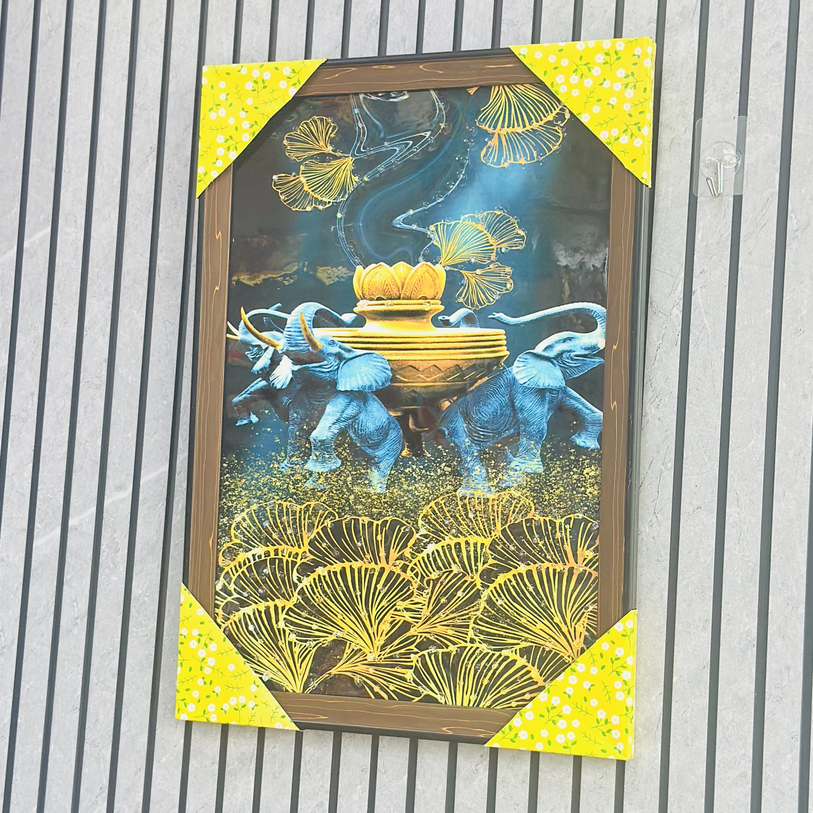 π Theme :- crystal glass painting with LED lights, featuring an image of elephants.
