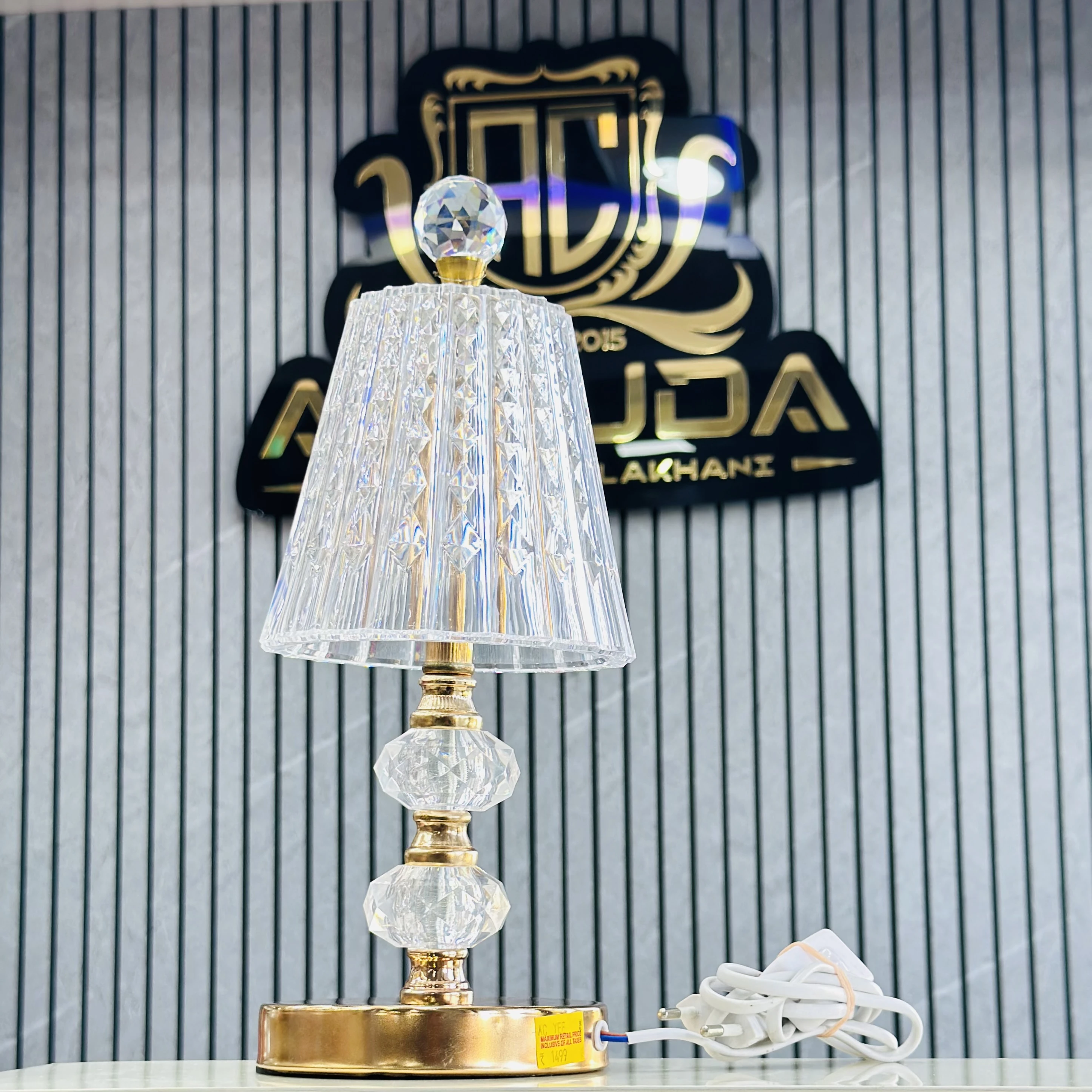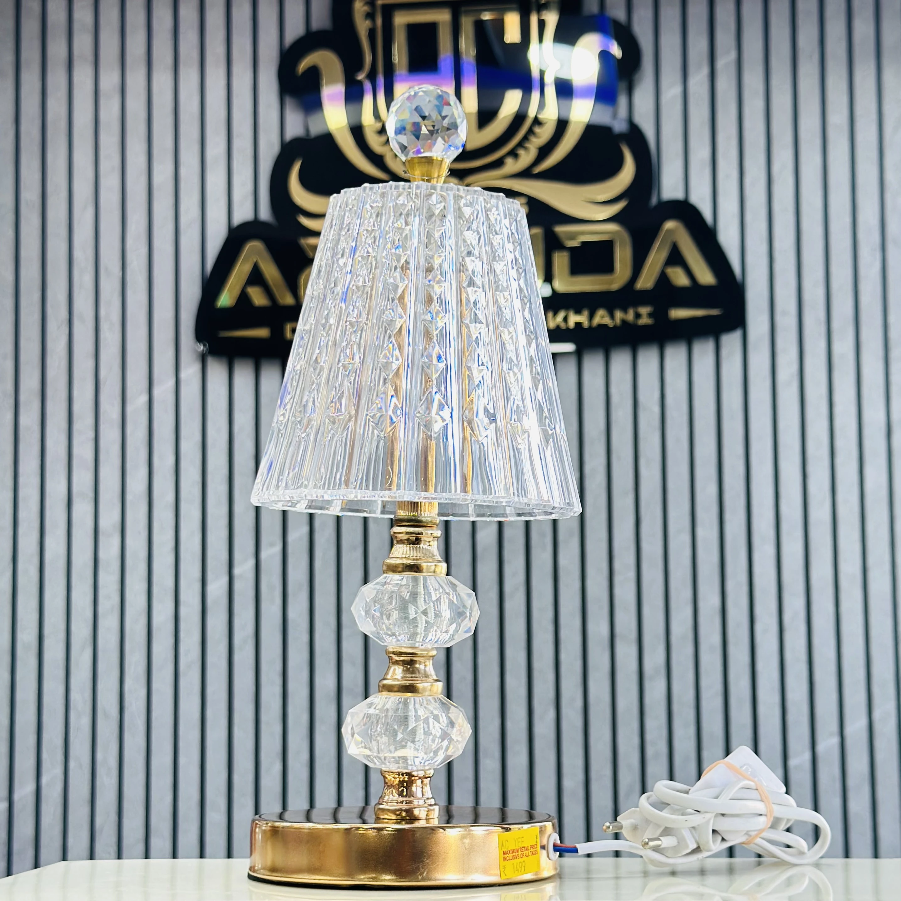 👉 Theme :- crystal table lamp with a diamond-cut acrylic lampshade.