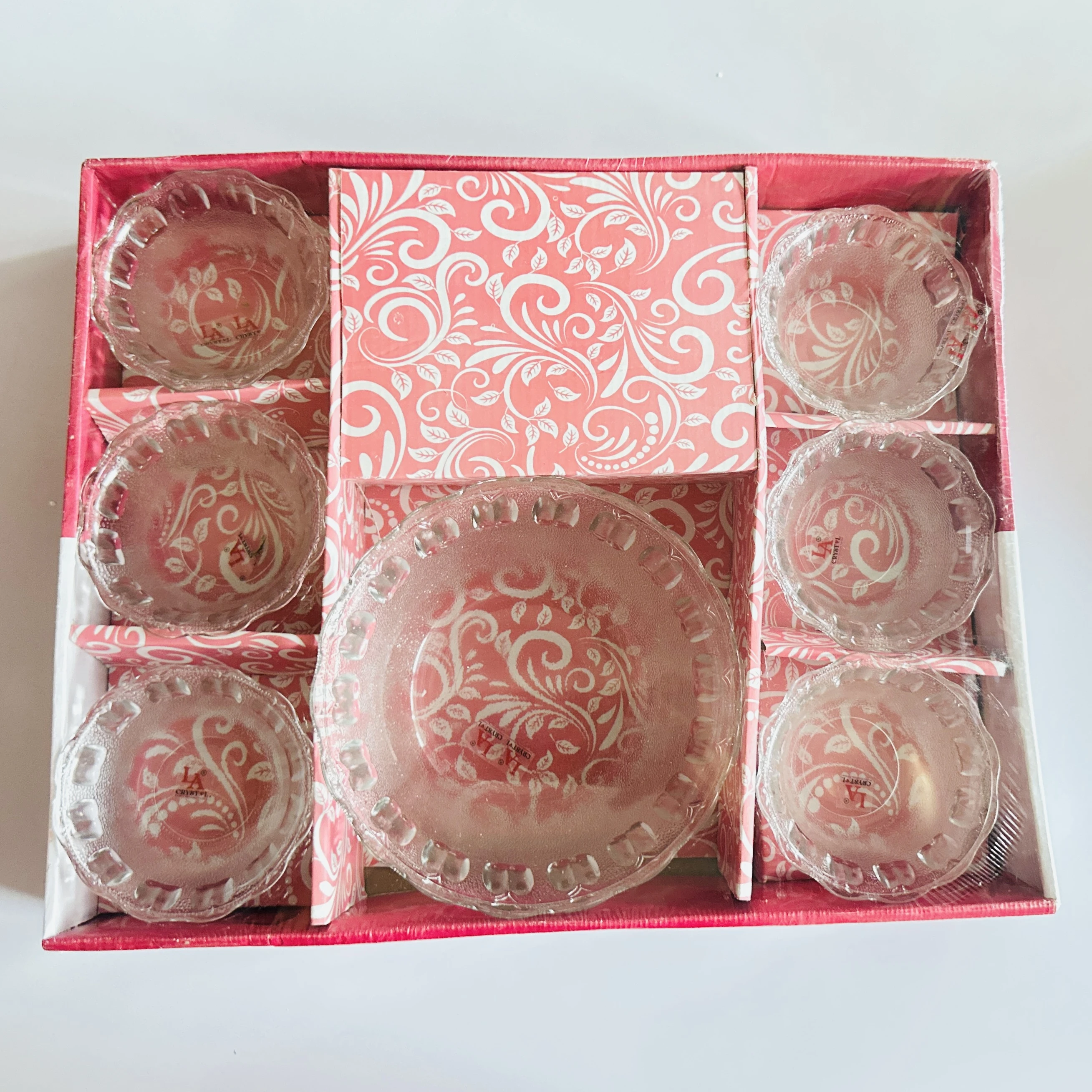 👉 Theme :- Creme Apple Premium Pudding Bowl Set, 6 Bowls with 1 Pic Bowl, Glass Serving Set with Decorative Design