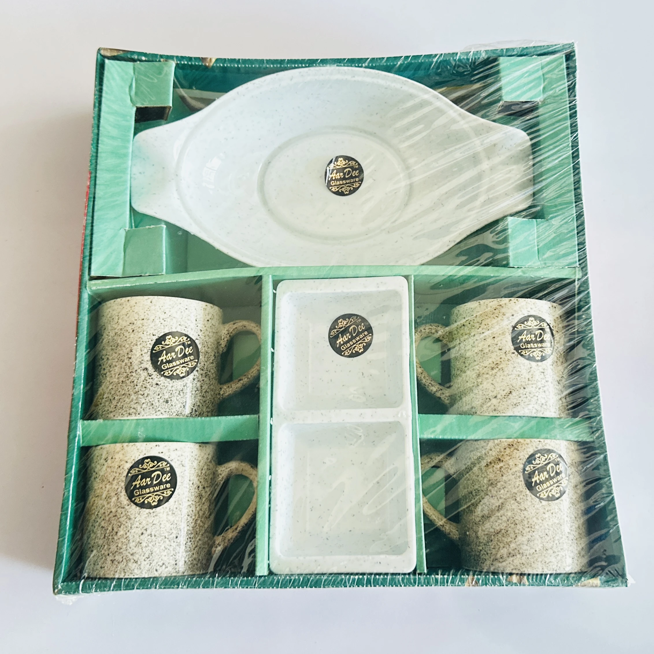 👉 Theme :- Aar Dee Glassware" brand Sunday Funday 6-piece ceramic cup and plastic snack set