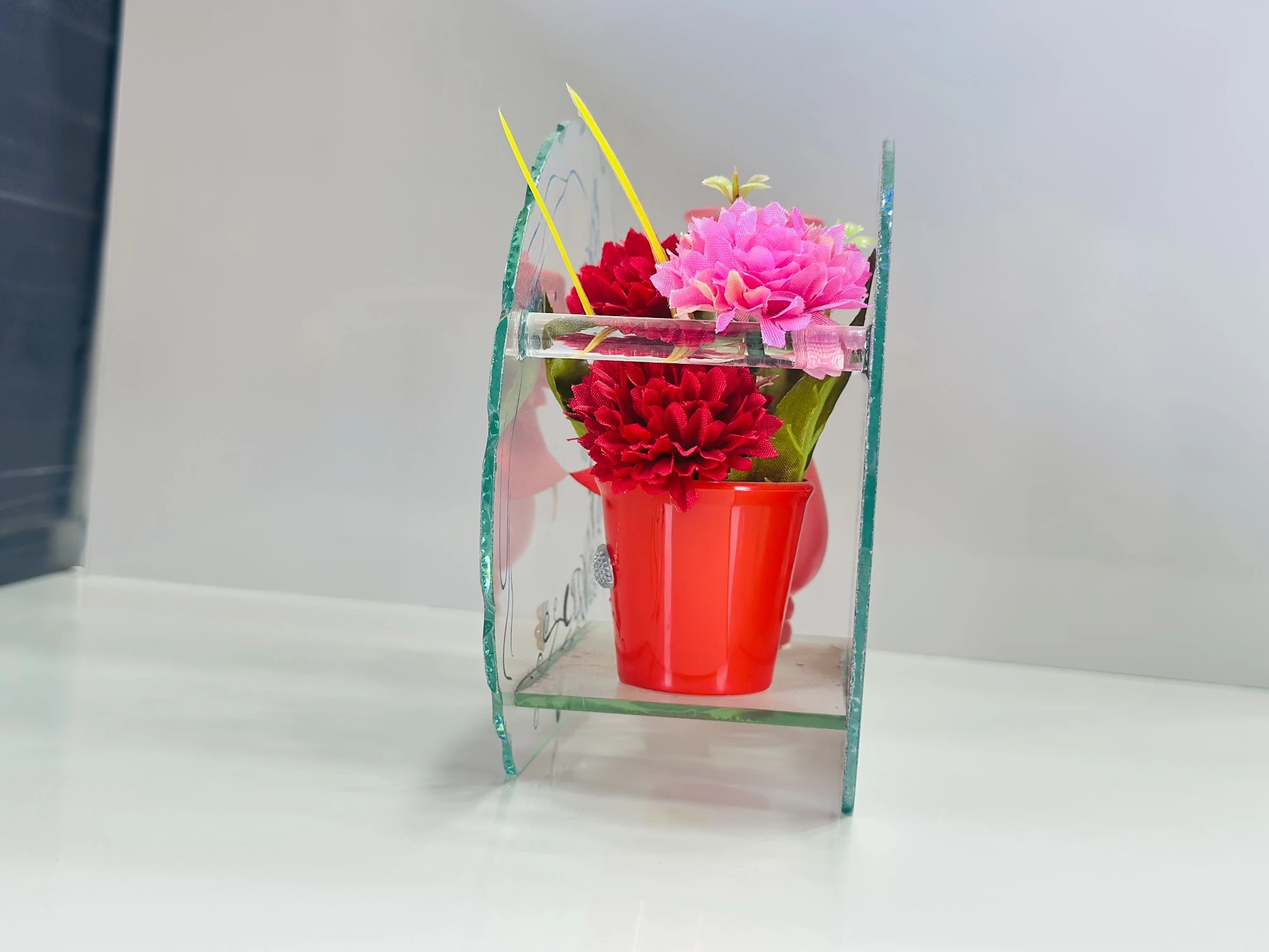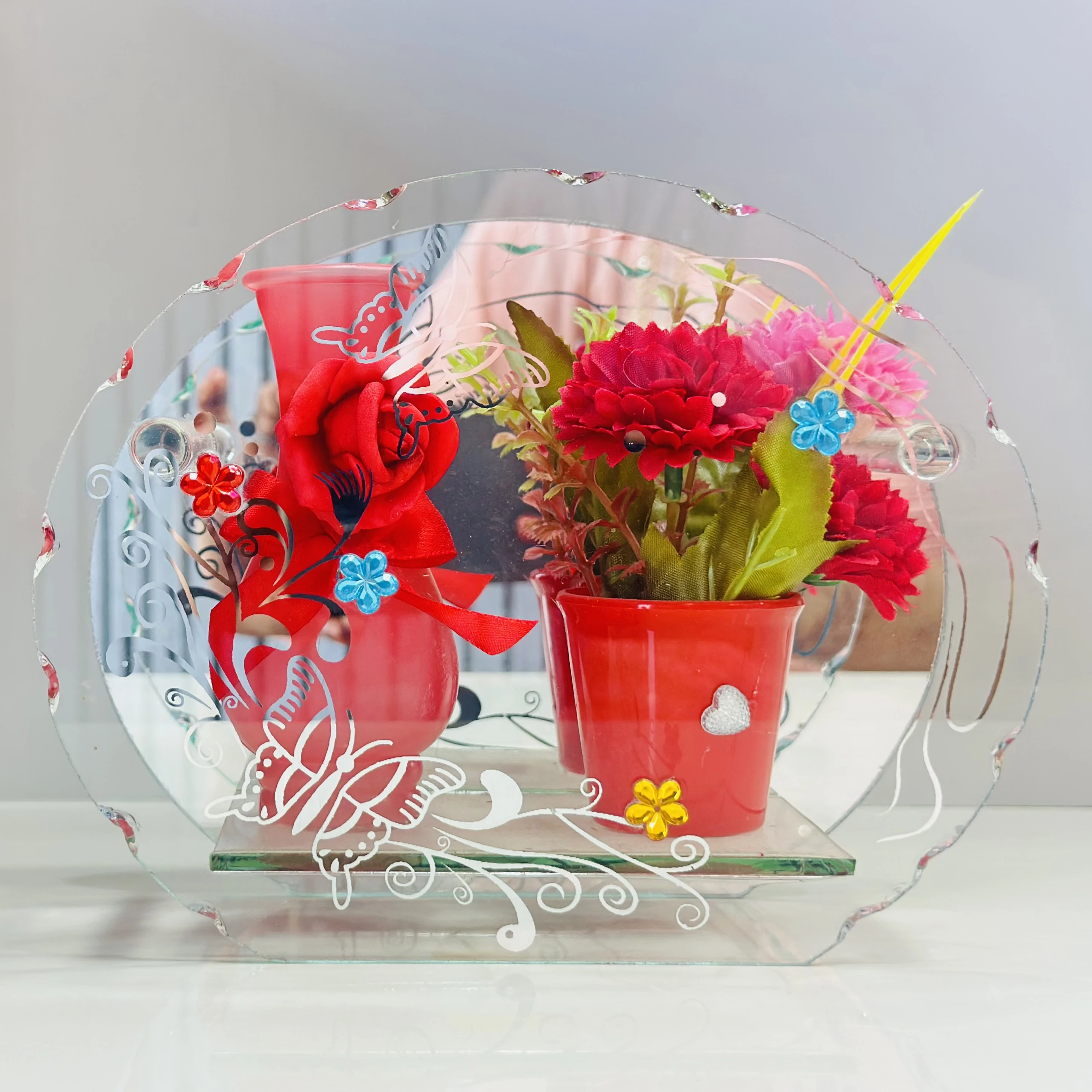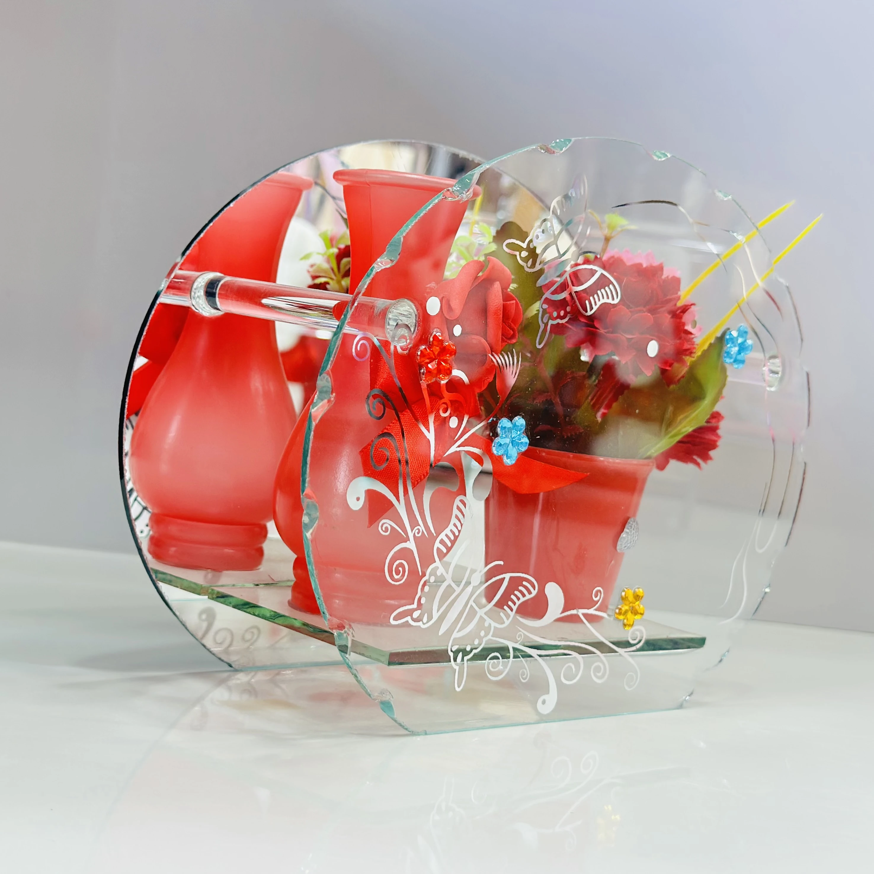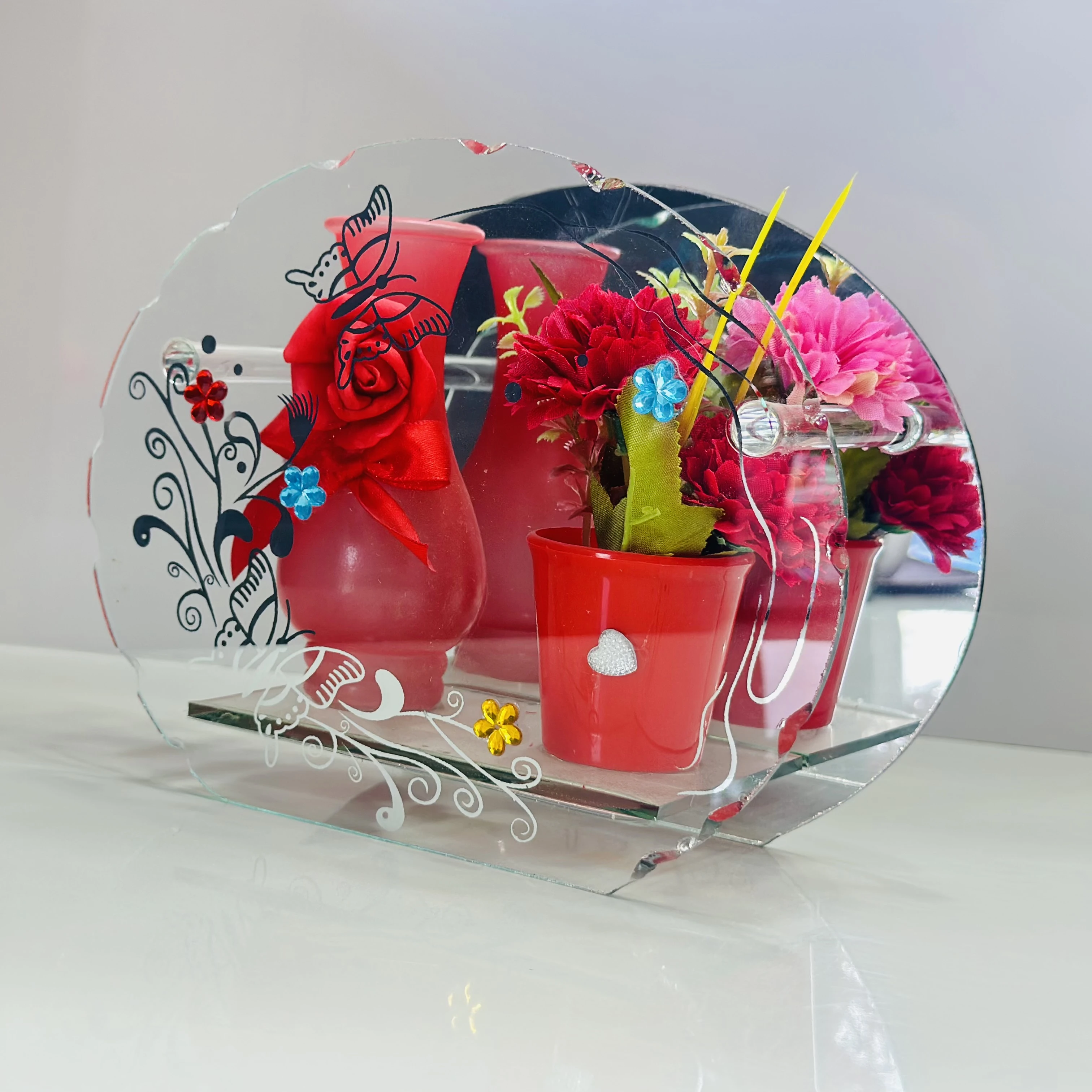 decorative glass showpiece with a reflective mirror.(SKU-QIB3WK)