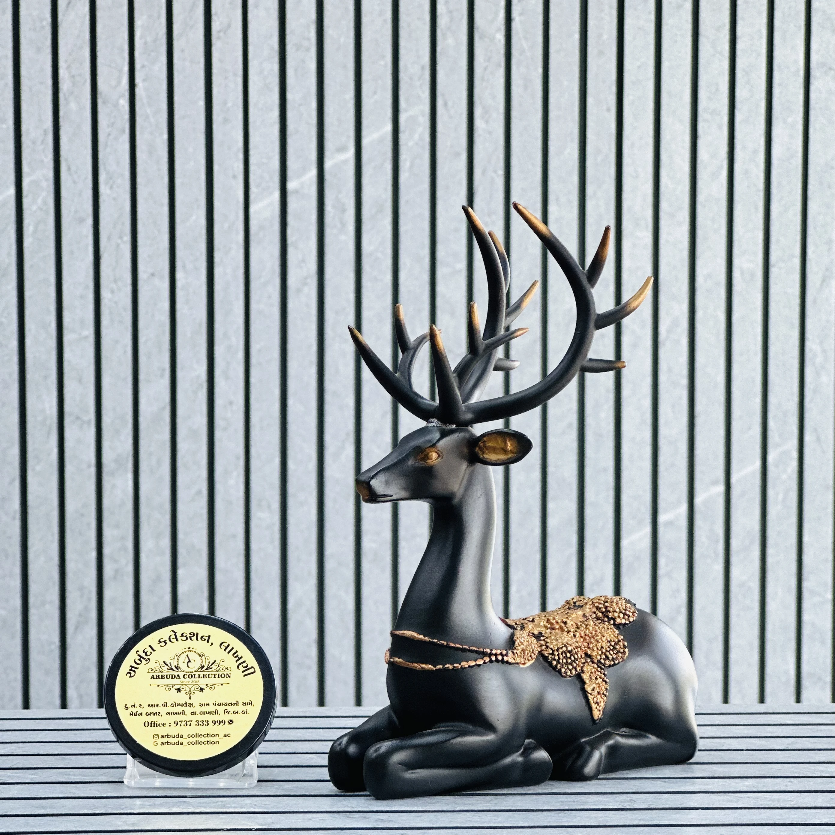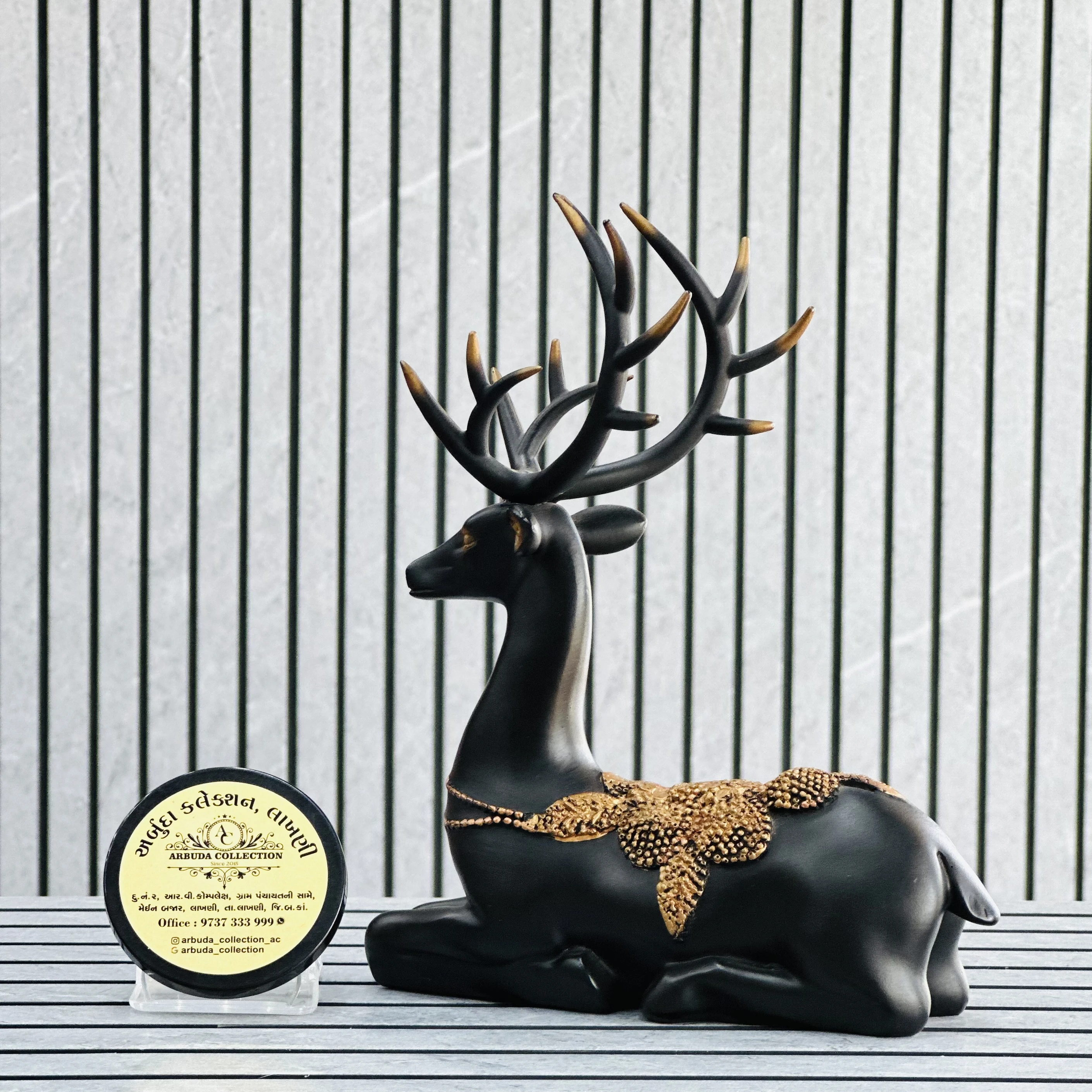 *✅ ARBUDA COLLECTION ✅* *✅9737333999✅* Theme :- Deer figurine / Showpiece Brand :- arbuda collection lakhani Colour:- black Style:- Designer Fancy look Material:- Typically made of polyresin Dimensions :- 8 hight, 6 width Uses :- used for home decoration, suitable for various settings like living rooms, shelves or office desks… Cleaning:- wipe clean with a dry cloth Origin:- made in India by local artists Other words:- limited addition…