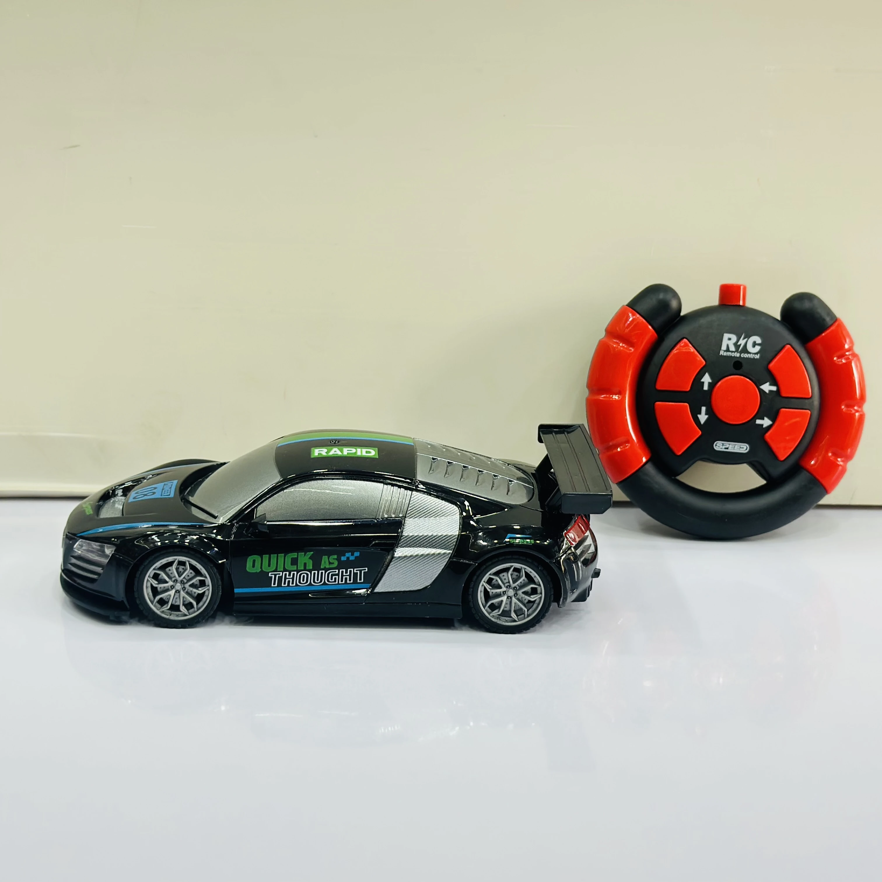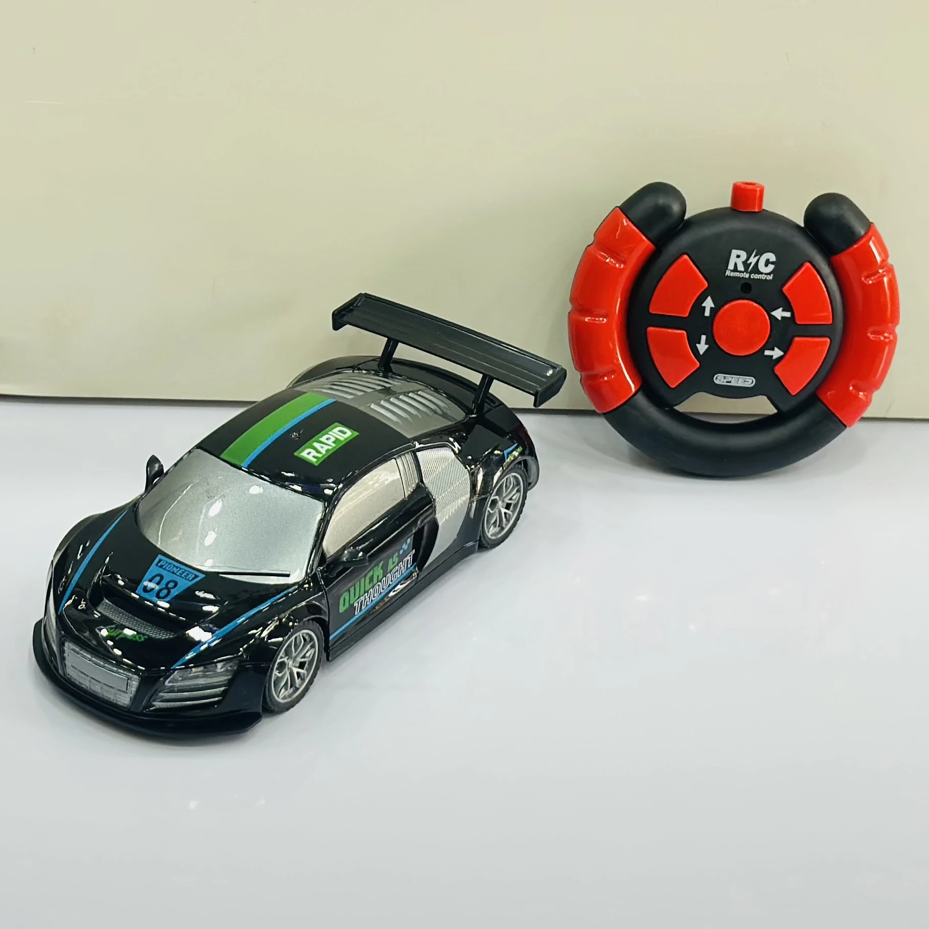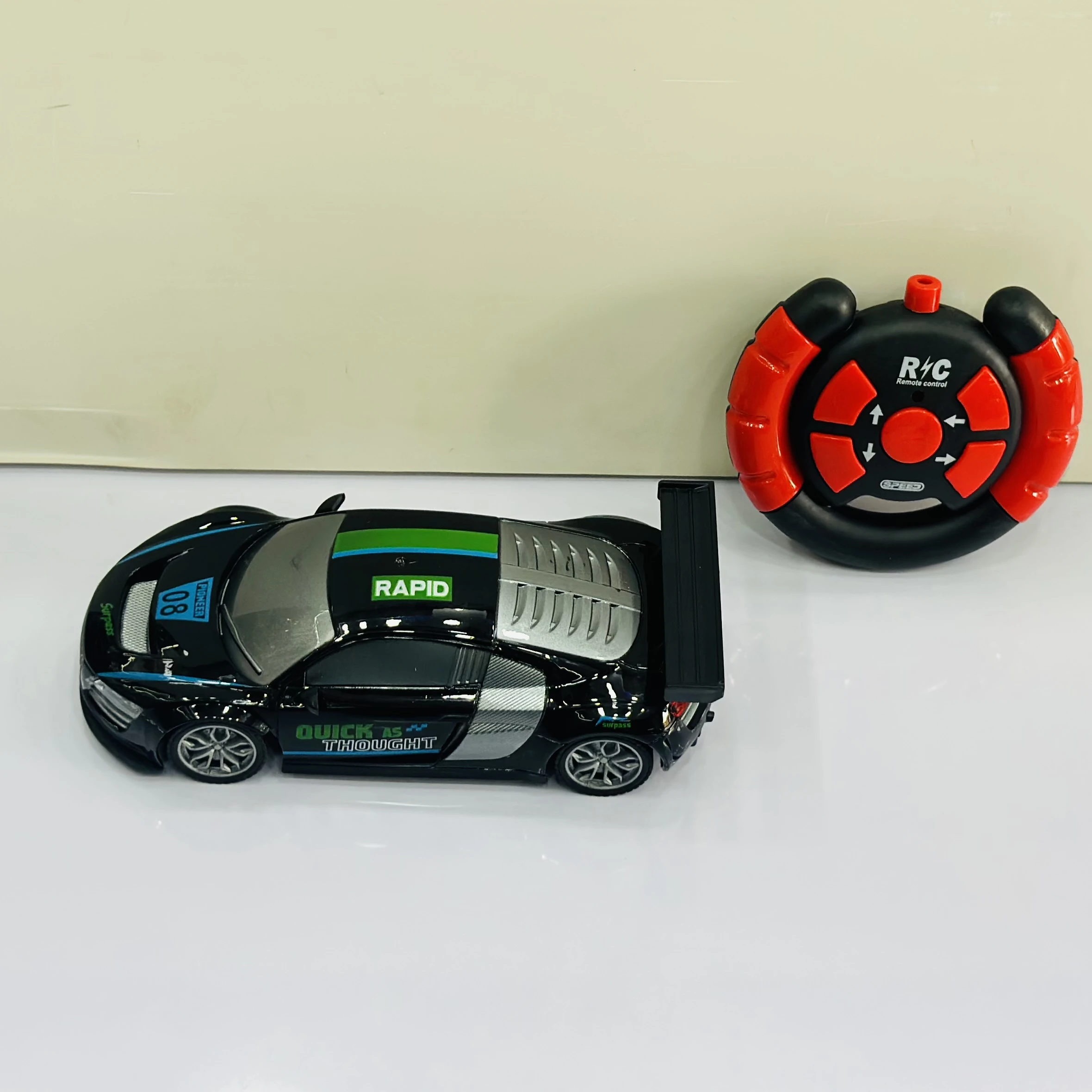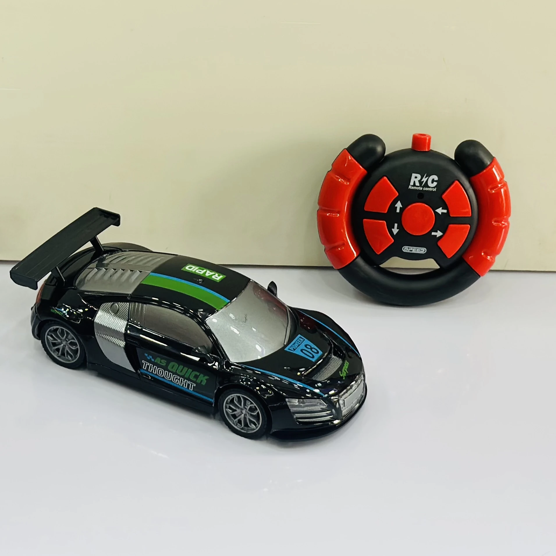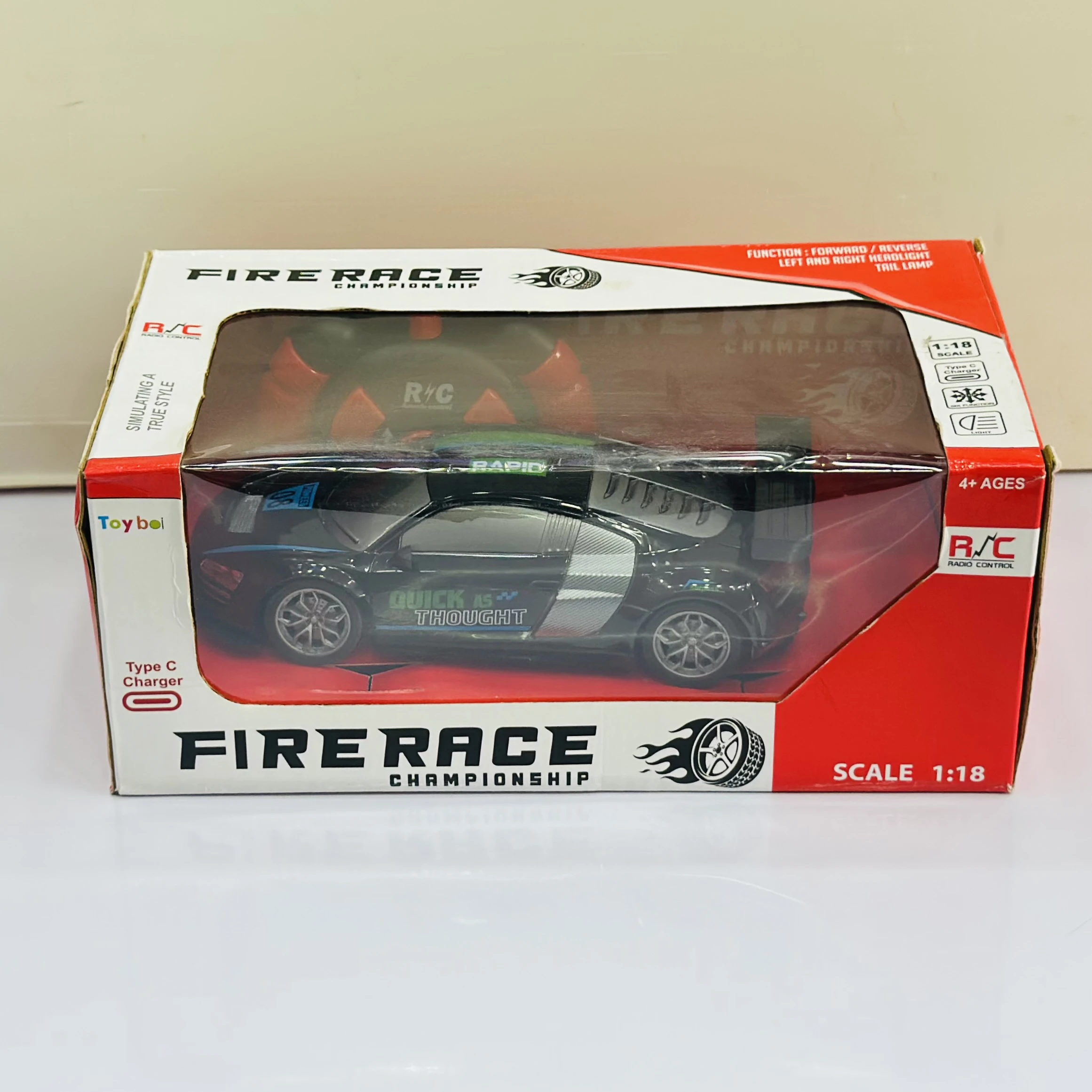 ๐ Theme :- Firerace Championship" remote control (R/C) toy car modeled after an Audi R8.ย