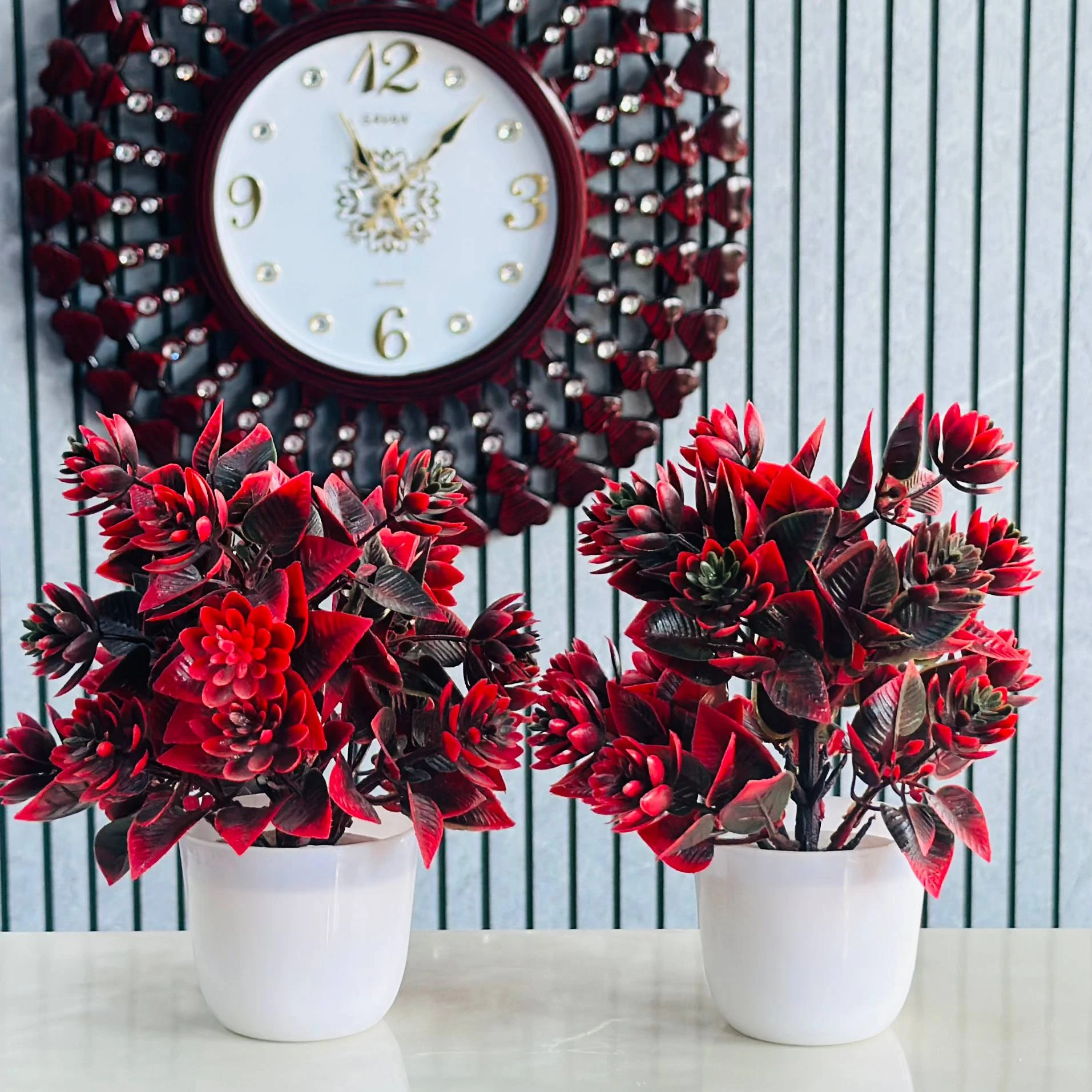 👉 Theme :- Artificial Flowers with Pot | Artificial Flower Plant in Flower Pot | Plastic Decorative Flowers for Room, Living Room, Home & Centre Table Decor [Set of 2 Red]