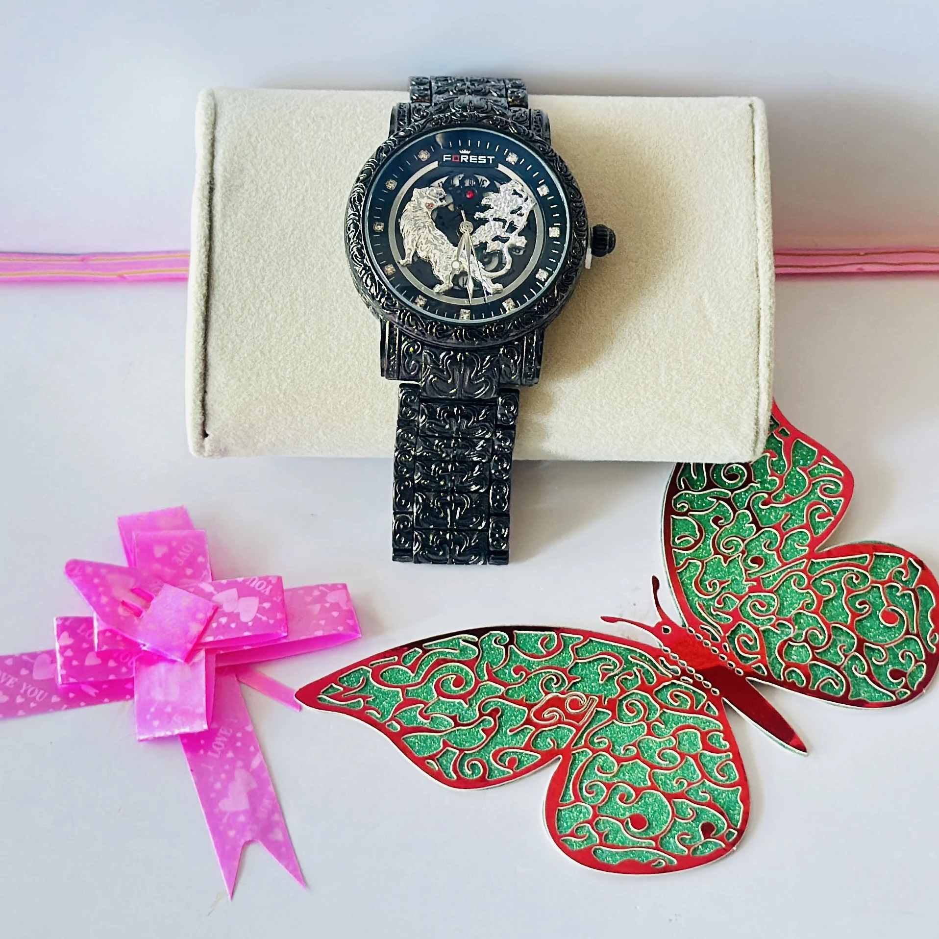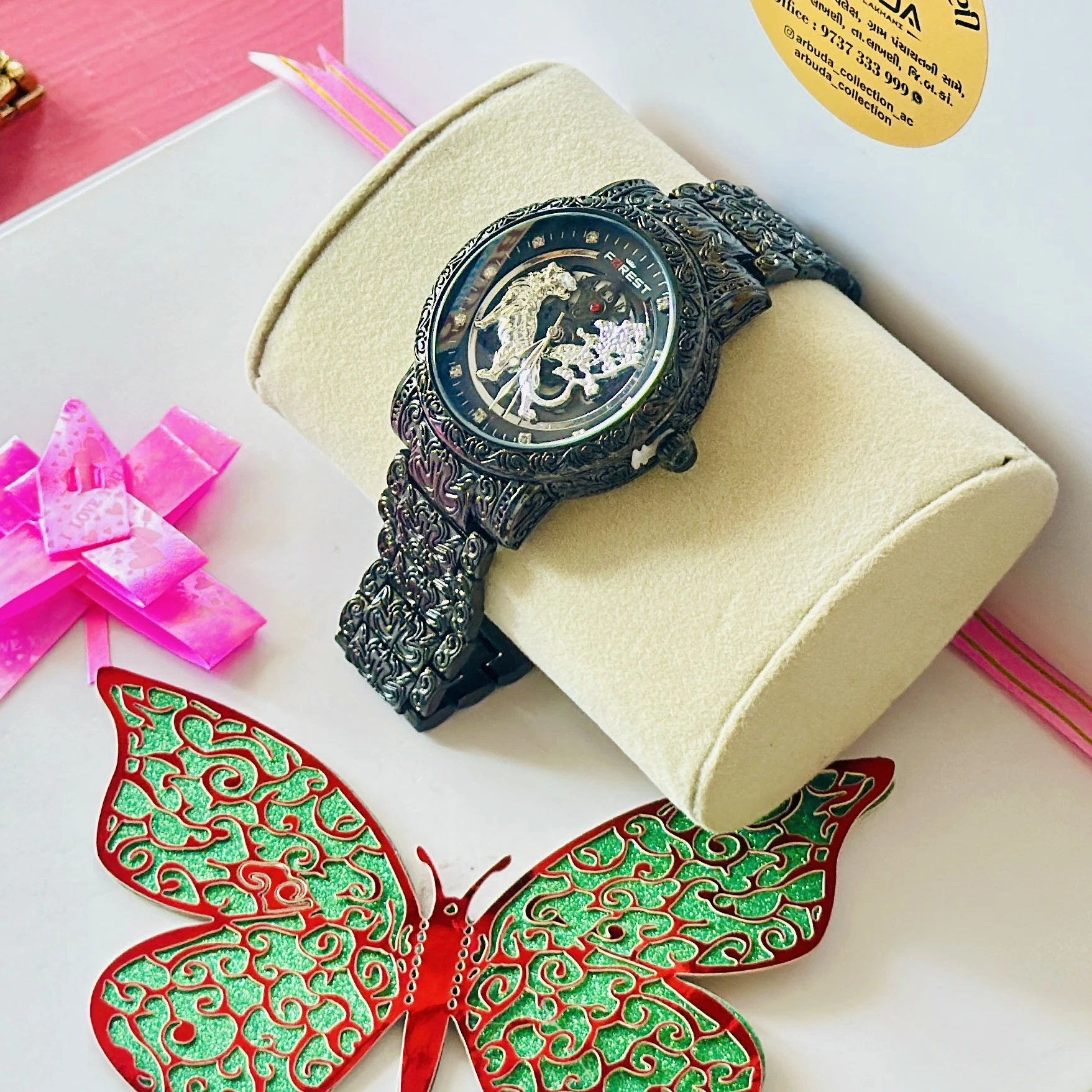 👉 Theme :- Forest Luxury Lion Curved Dial Bracelet Unisex Wrist Watch.