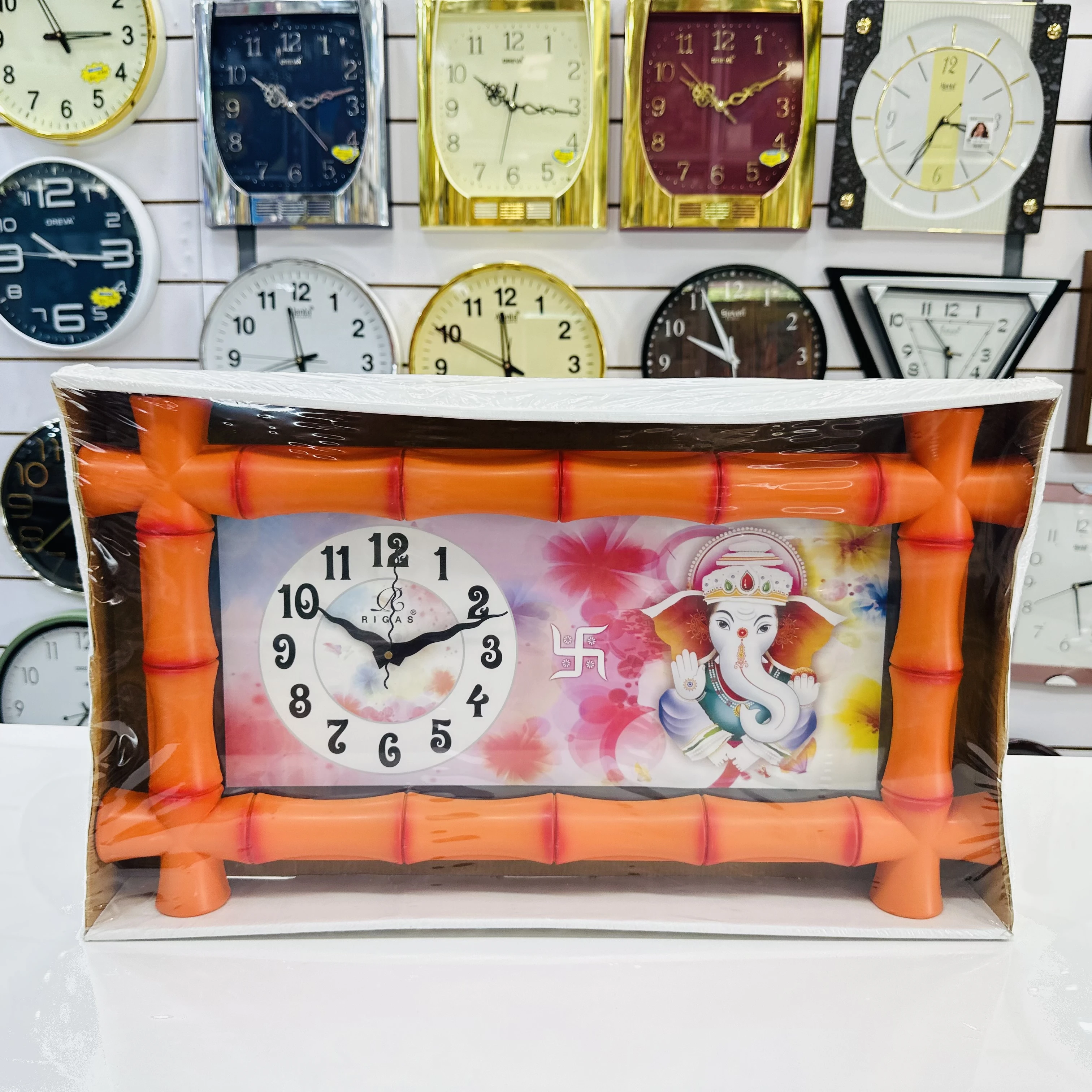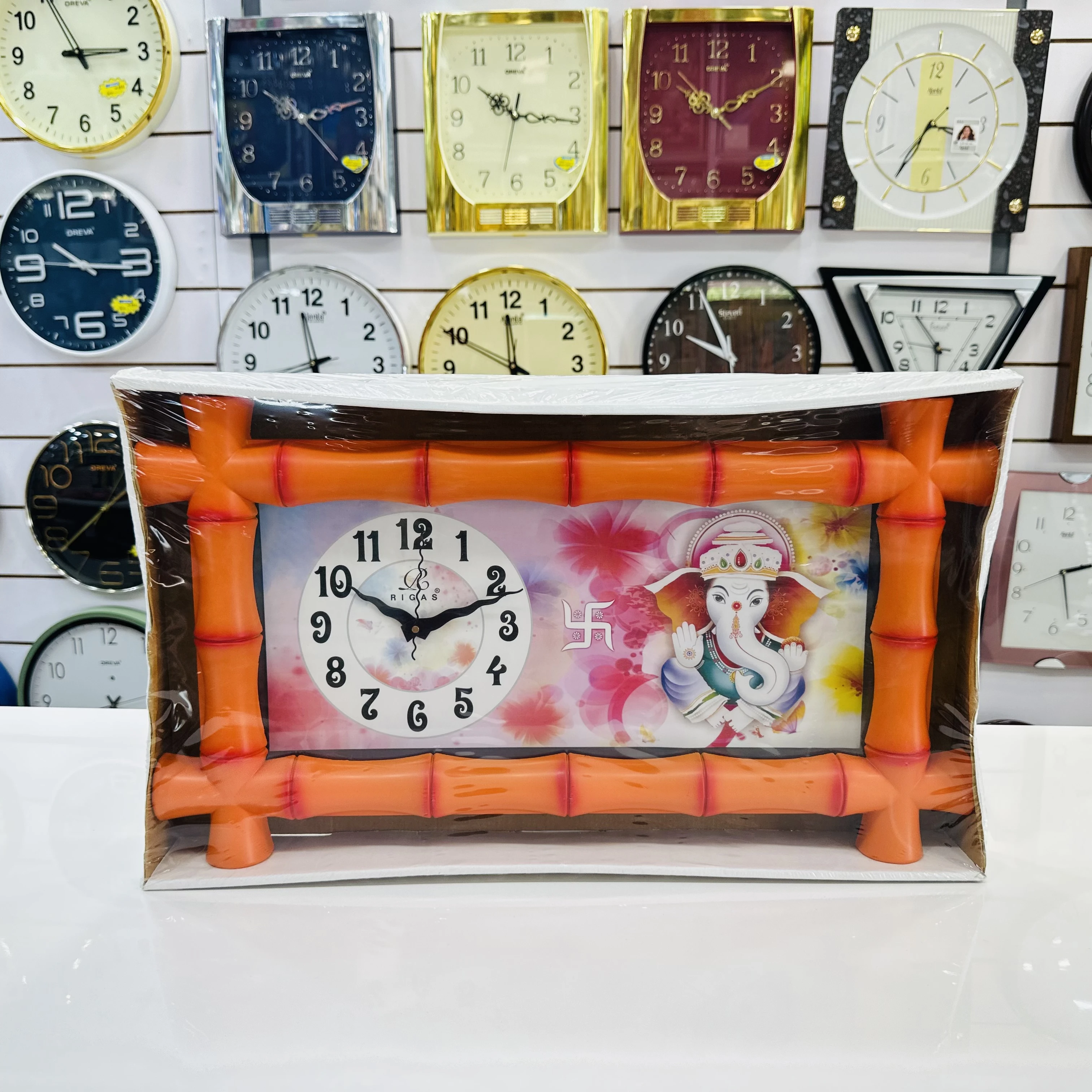 👉 Theme :- Ganesha-themed table clock with a bamboo-style frame