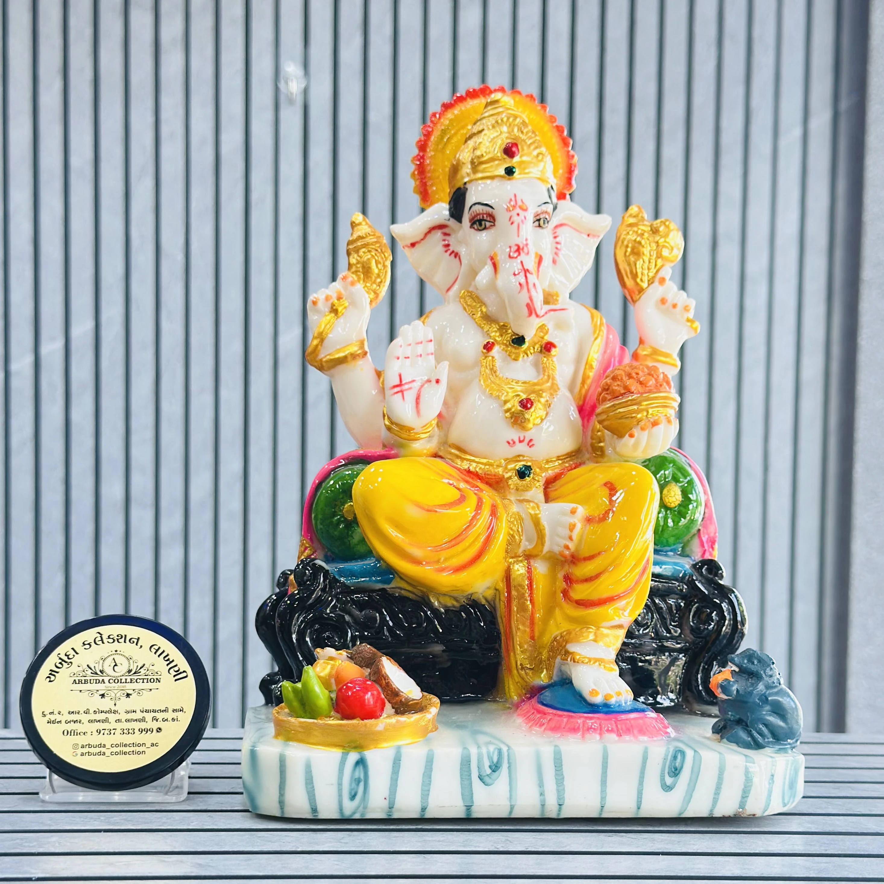 *✅ ARBUDA COLLECTION ✅* *✅9737333999✅* Theme :- Ganpati bapa murti Brand :- arbuda collection lakhani Colour:- mixed Style:- traditional Material:- imported cality Dimensions :- 11 hight, 7 width Uses :- School , office desk,mandir, pooja Room… Cleaning:- wipe clean with a dry cloth Origin:- made in India by local artists Other words:- limited addition…
