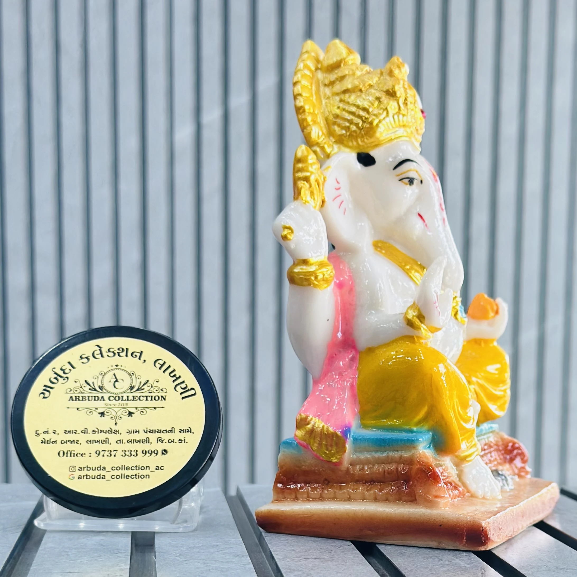*✅ ARBUDA COLLECTION ✅* *✅9737333999✅* Theme :- Ganpati bapa murti Brand :- arbuda collection lakhani Colour:- mixed Style:- traditional Material:- imported cality Dimensions :- 6 hight, 4 width Uses :- office desk,mandir, pooja Room… Cleaning:- wipe clean with a dry cloth Origin:- made in India by local artists Other words:- limited addition…