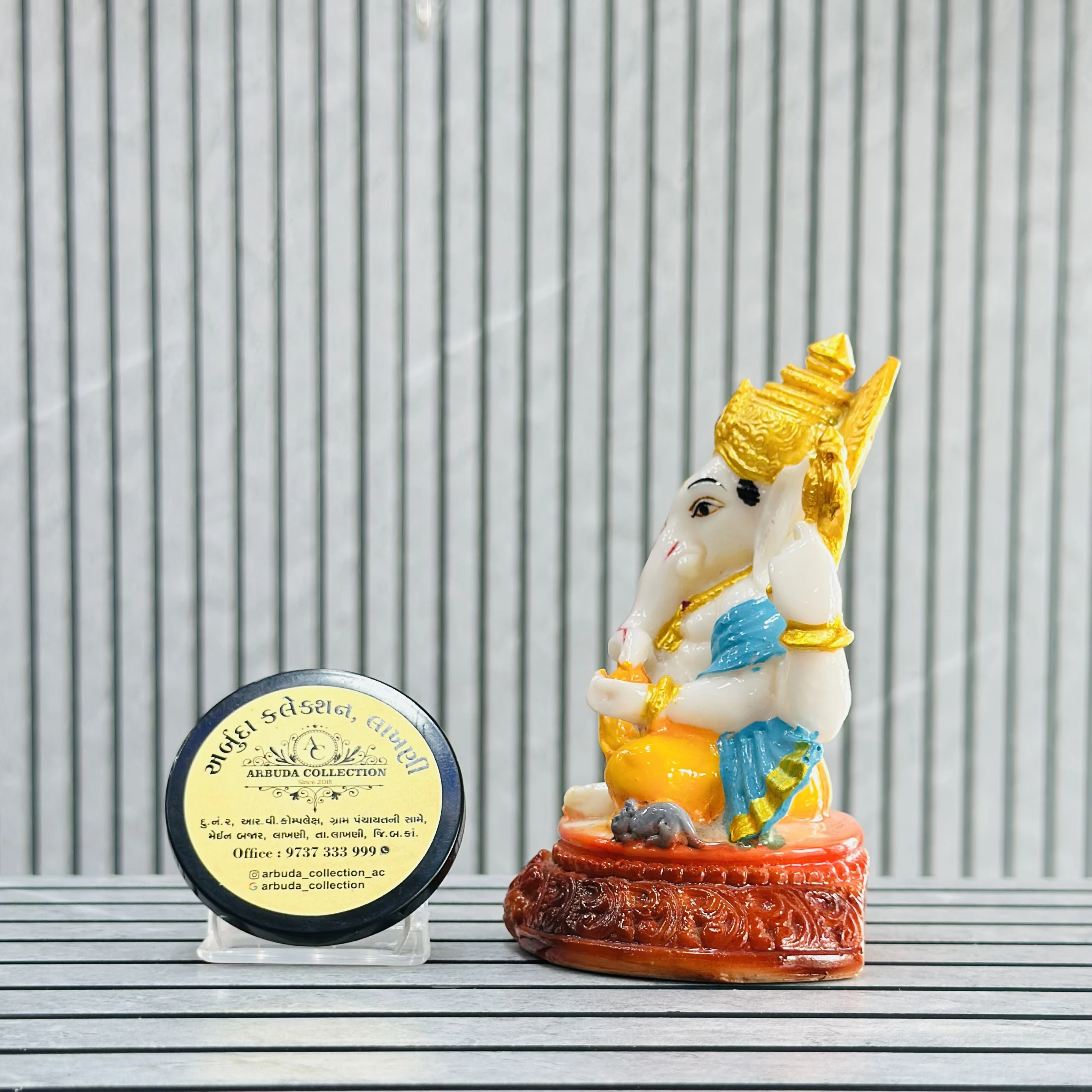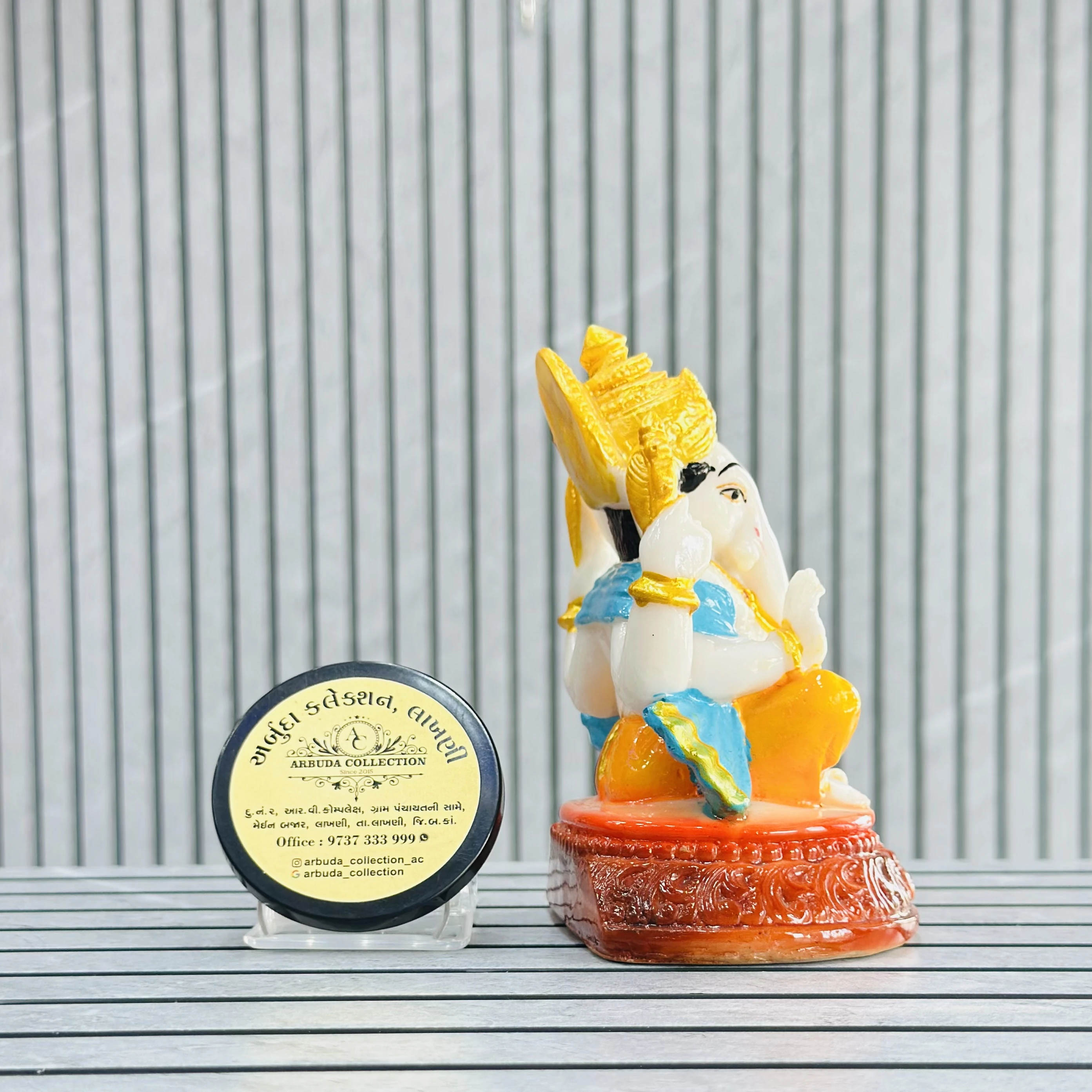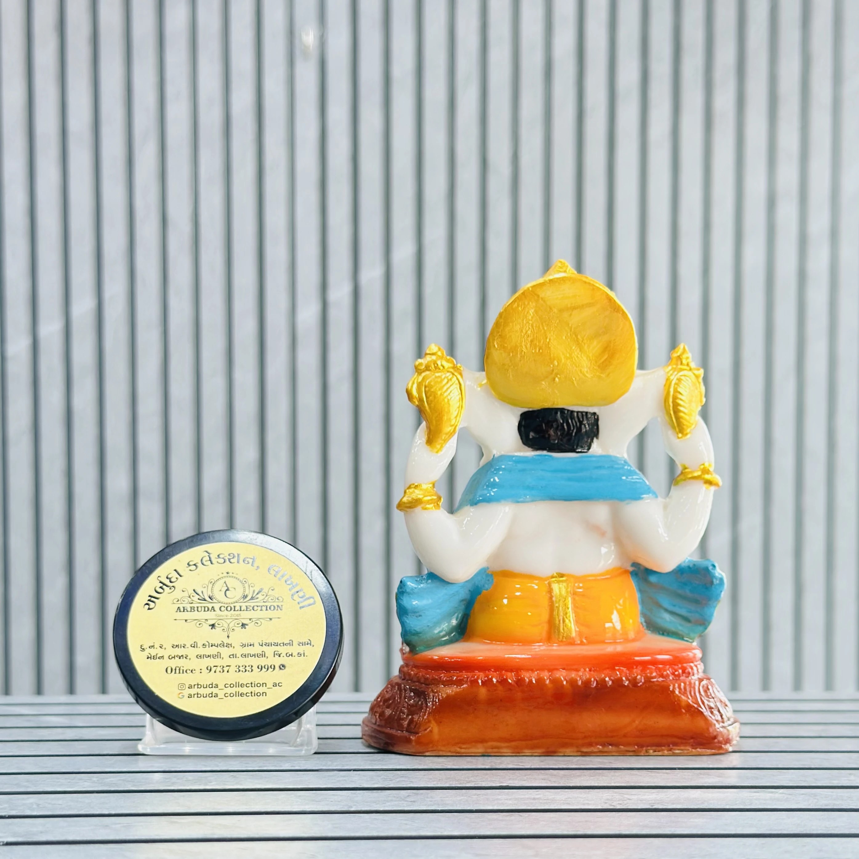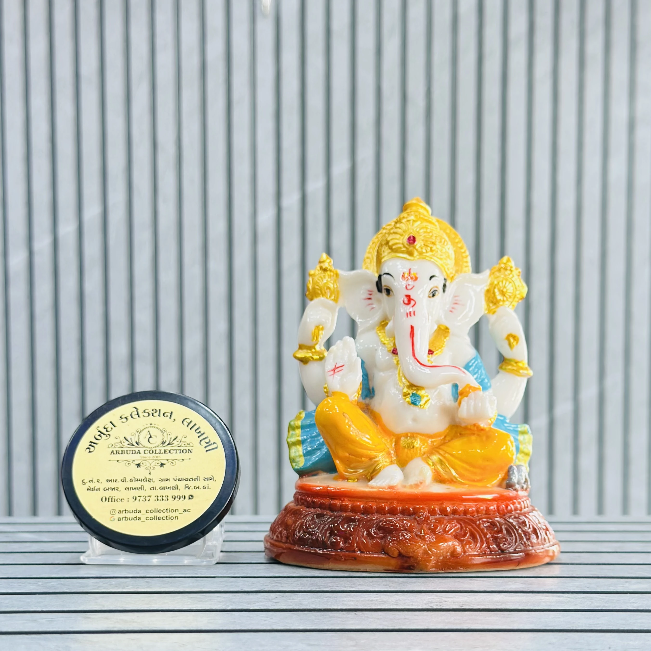 *✅ ARBUDA COLLECTION ✅* *✅9737333999✅* Theme :- Ganpati bapa murti Brand :- arbuda collection lakhani Colour:- mixed Style:- traditional Material:- imported cality Dimensions :- 4 hight, 2 width Uses :- office desk,mandir, pooja Room… Cleaning:- wipe clean with a dry cloth Origin:- made in India by local artists Other words:- limited addition…