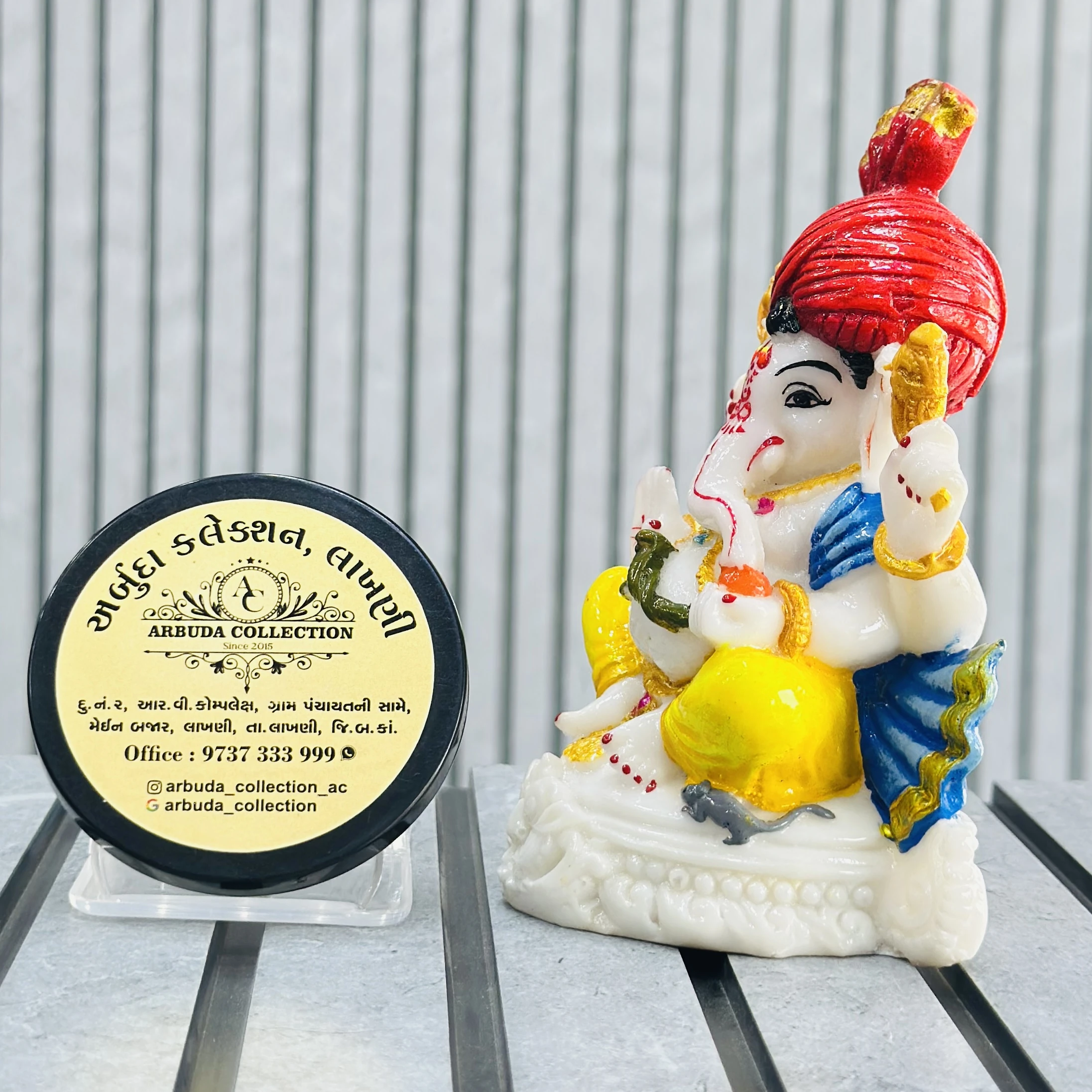 *✅ ARBUDA COLLECTION ✅* *✅9737333999✅* Theme :- Ganpati bapa murti Brand :- arbuda collection lakhani Colour:- mixed Style:- traditional Material:- imported cality Dimensions :- 5 hight, 2 width Uses :- office desk,mandir, pooja Room… Cleaning:- wipe clean with a dry cloth Origin:- made in India by local artists Other words:- limited addition…