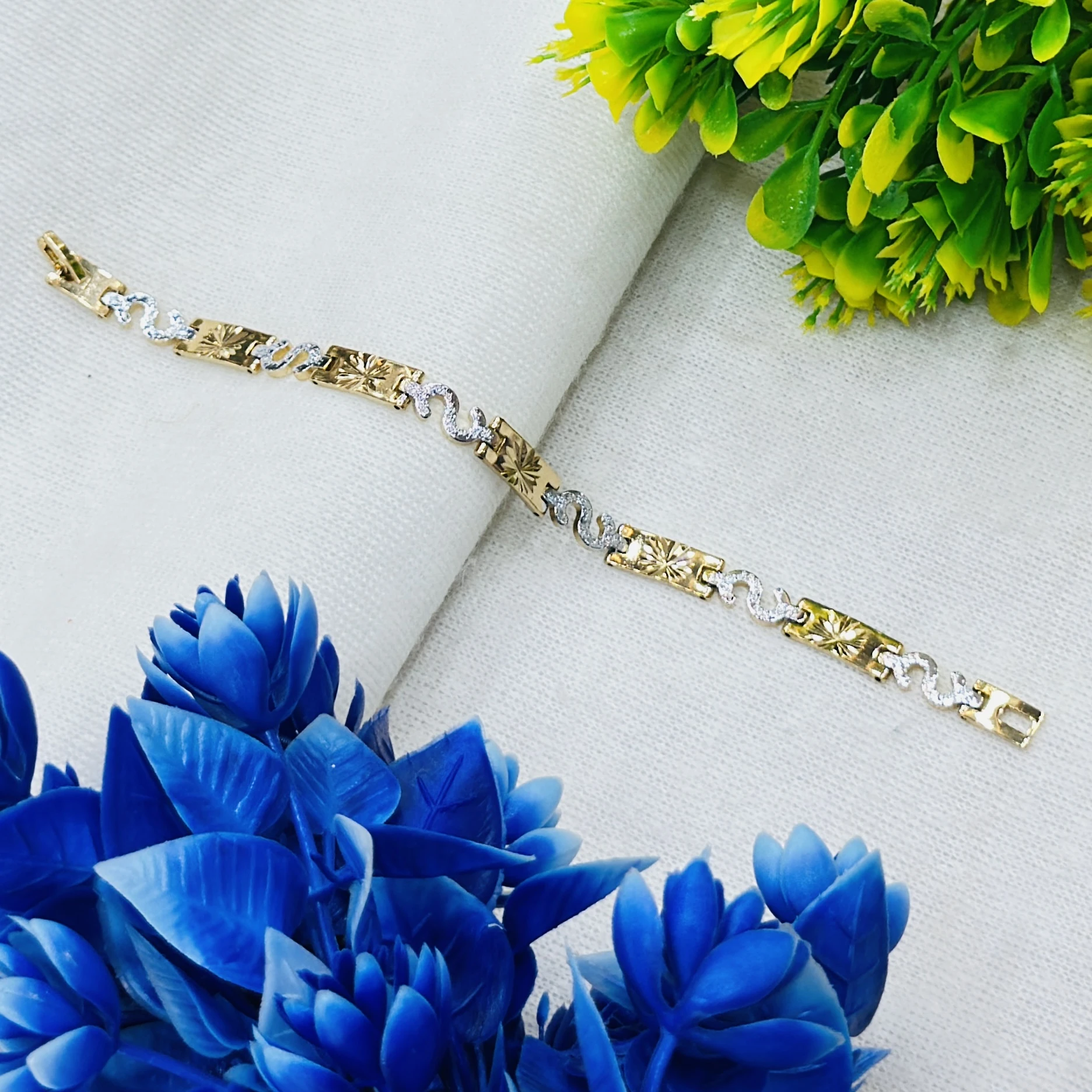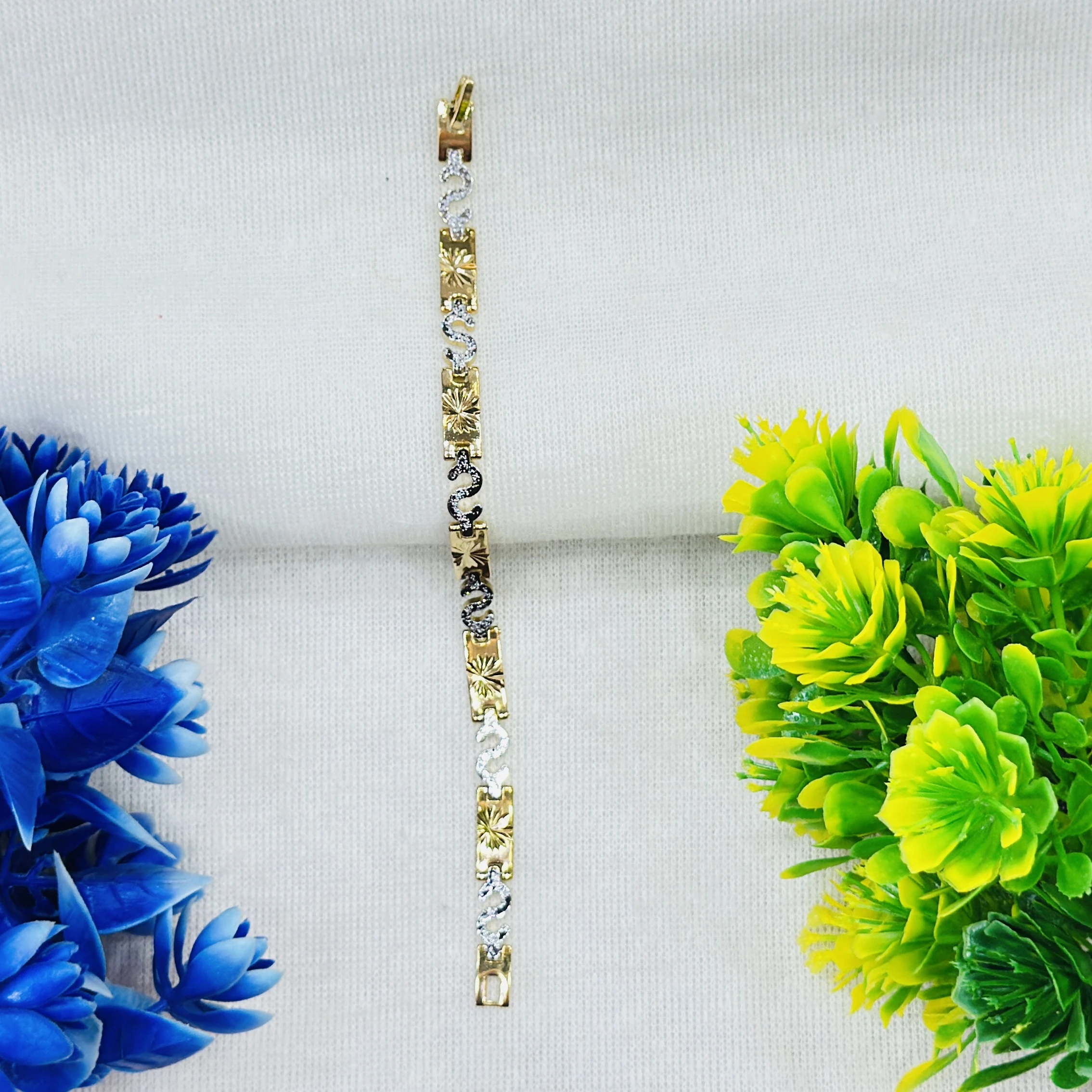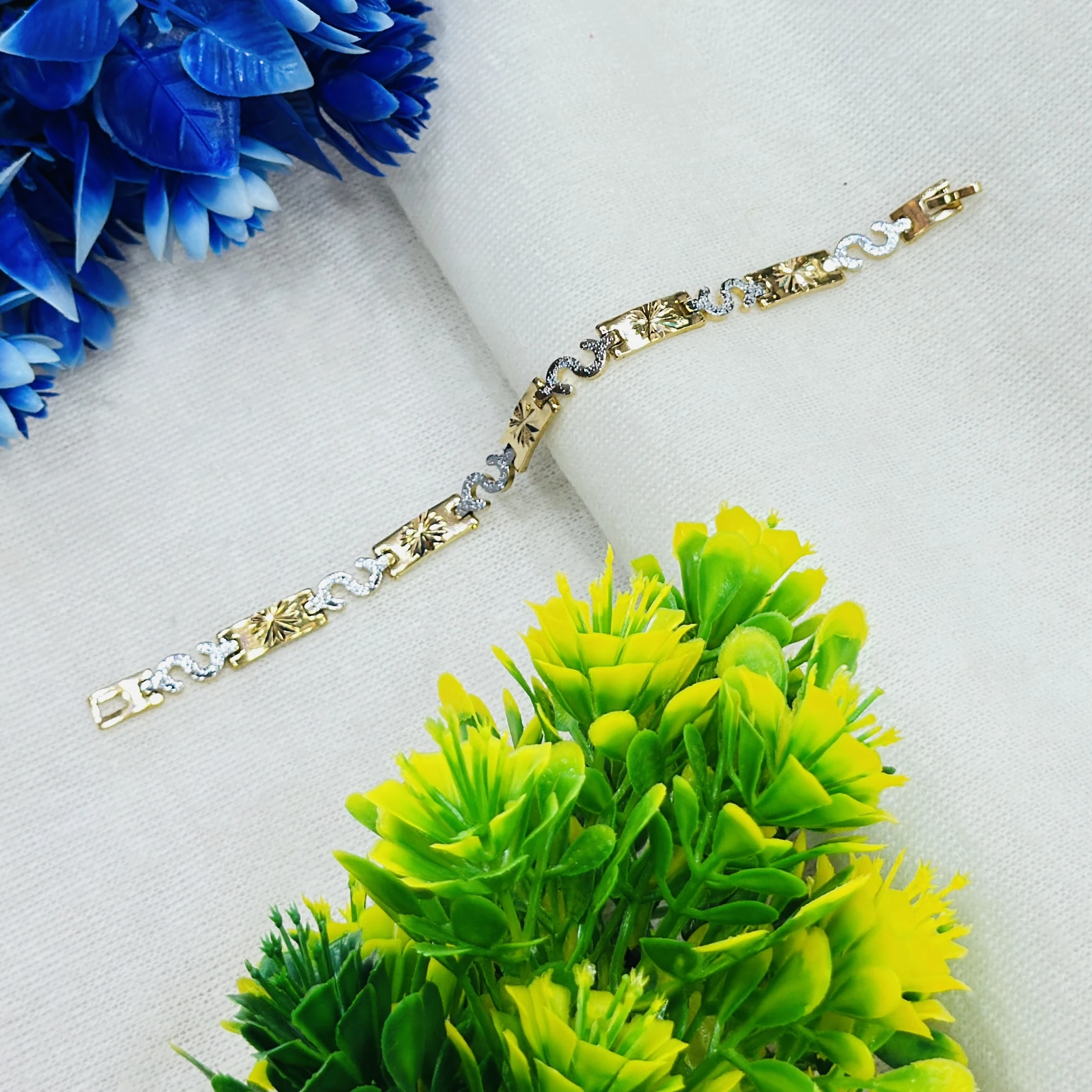 Gold and white metal chain bracelet