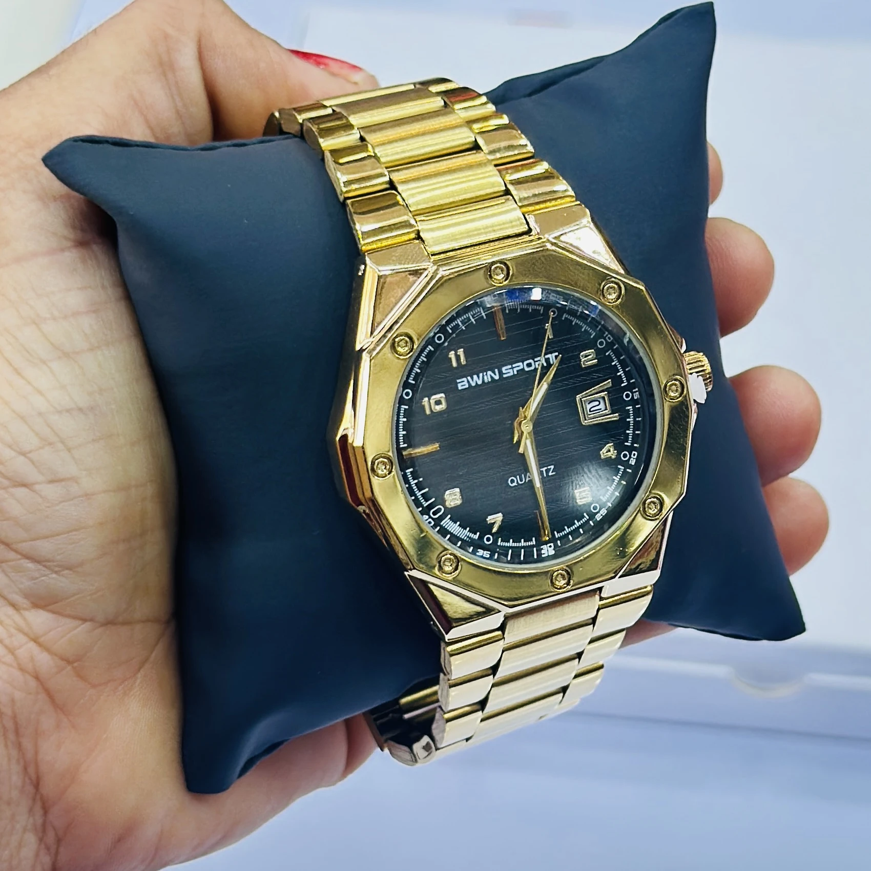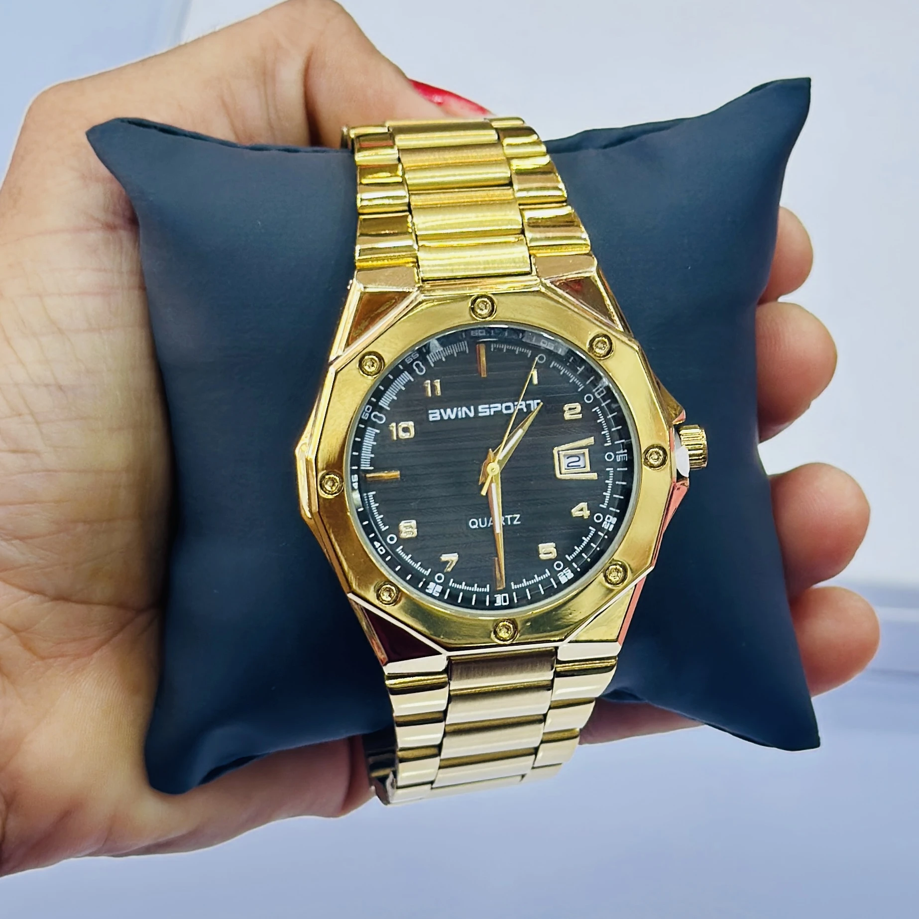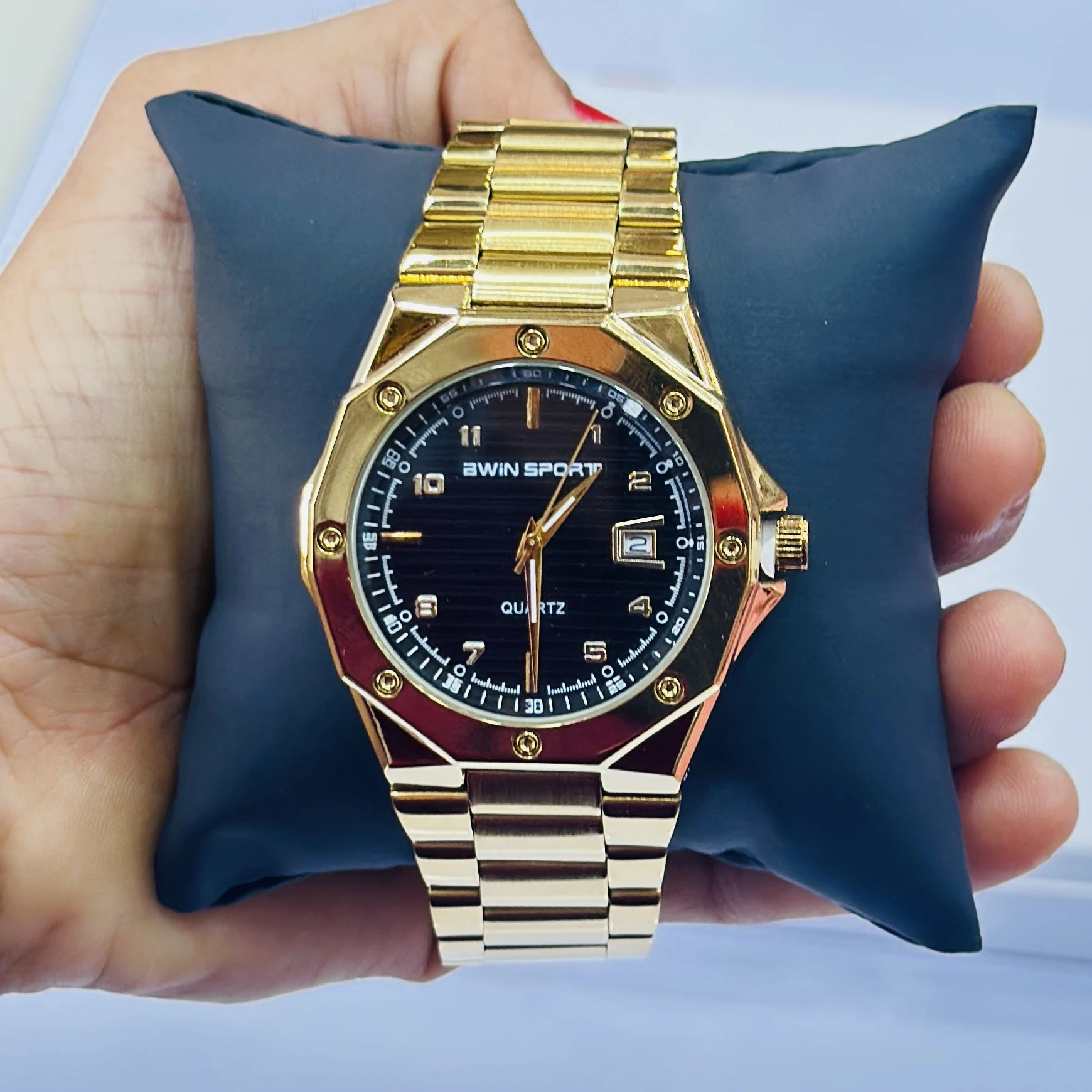 Gold coloured analogue watch