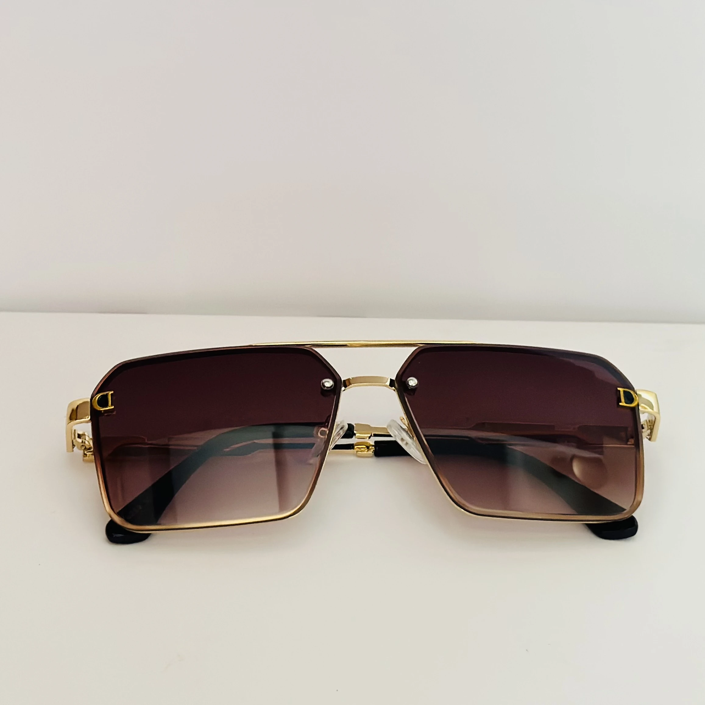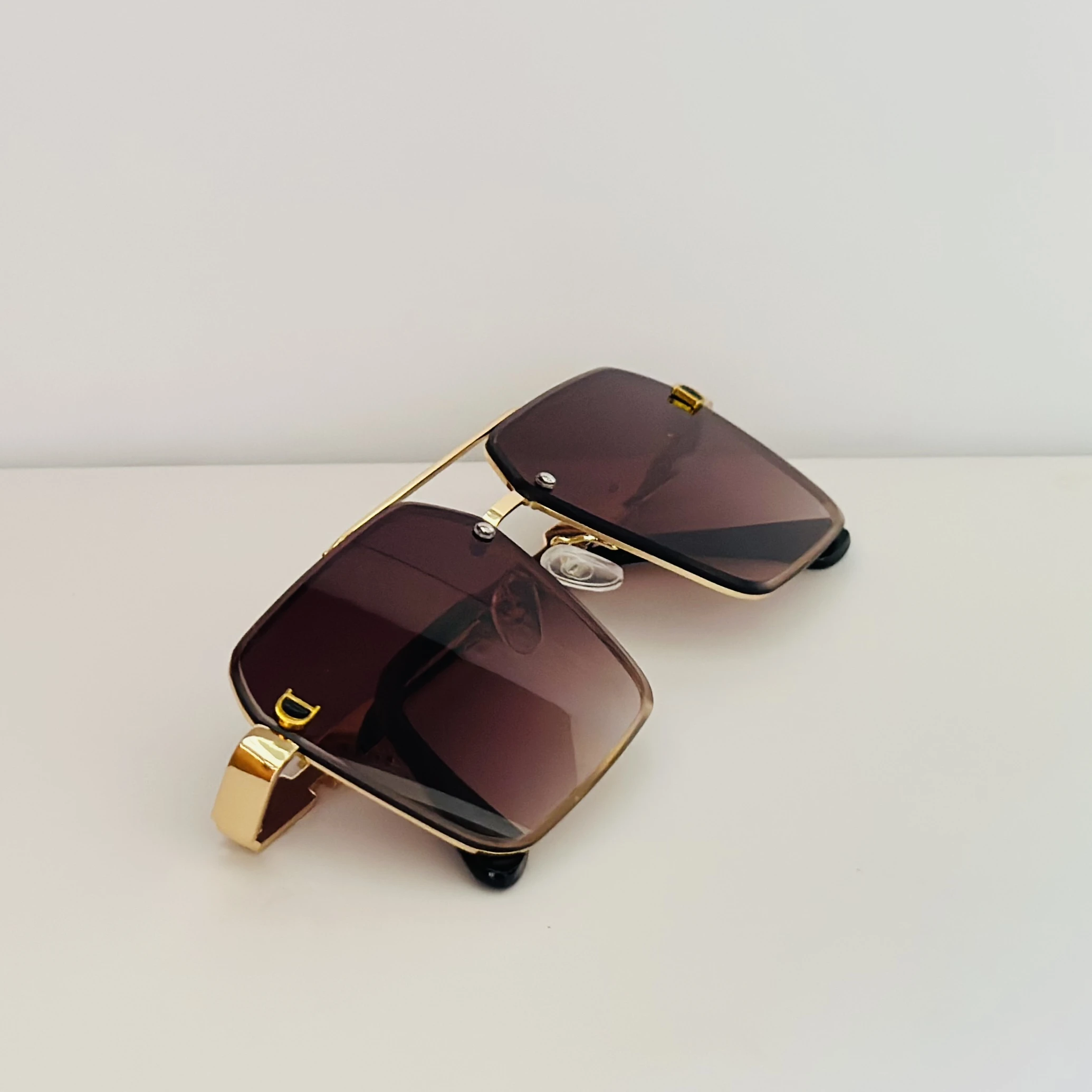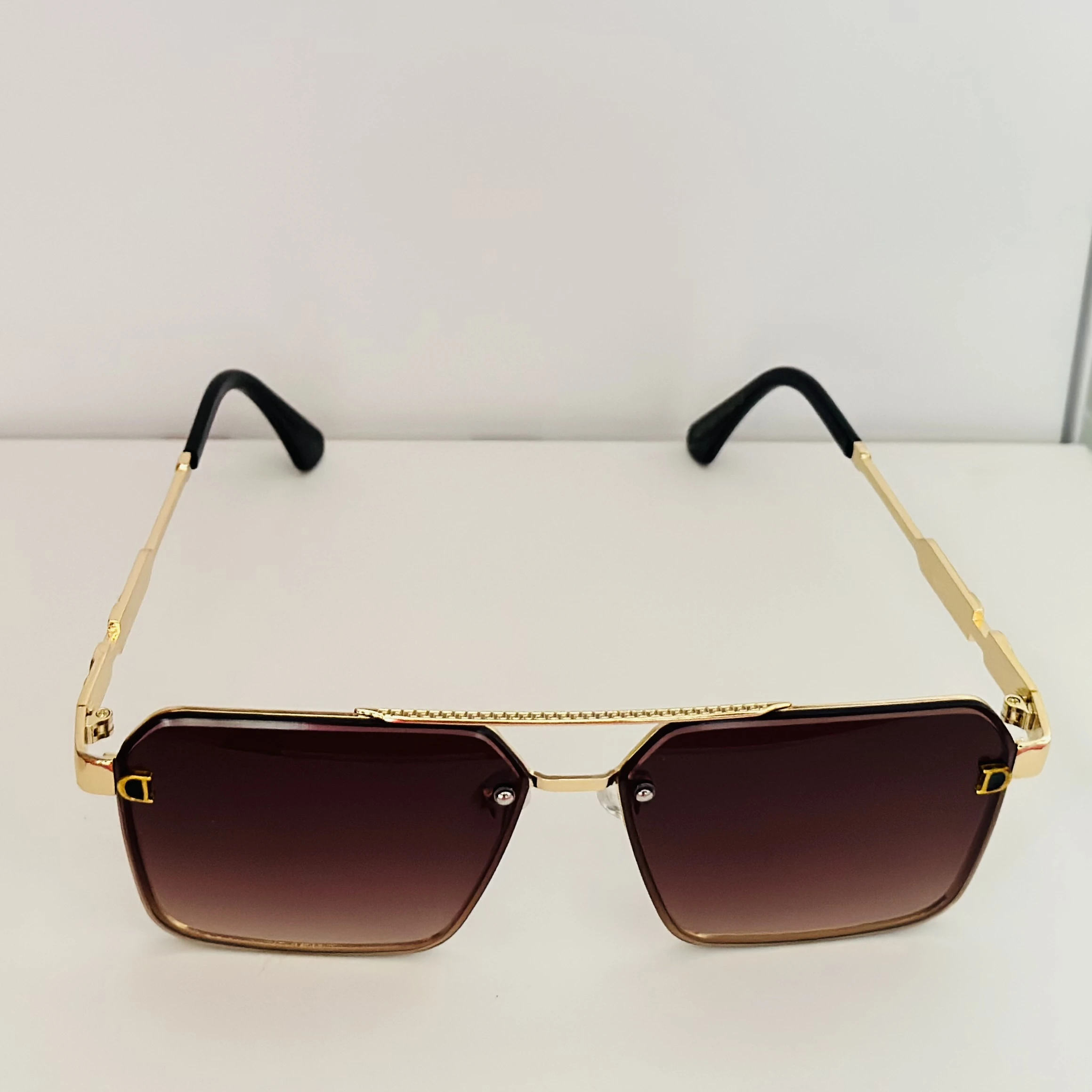 π Theme :- Gold frame, brown gradient lens oversized square sunglasses with black temple arms.Β