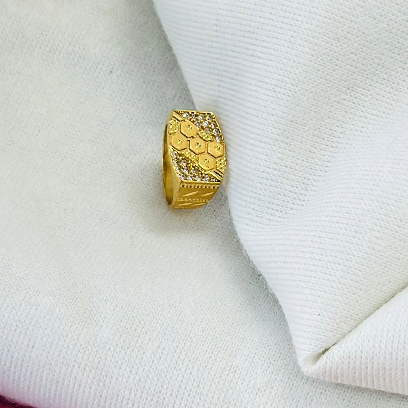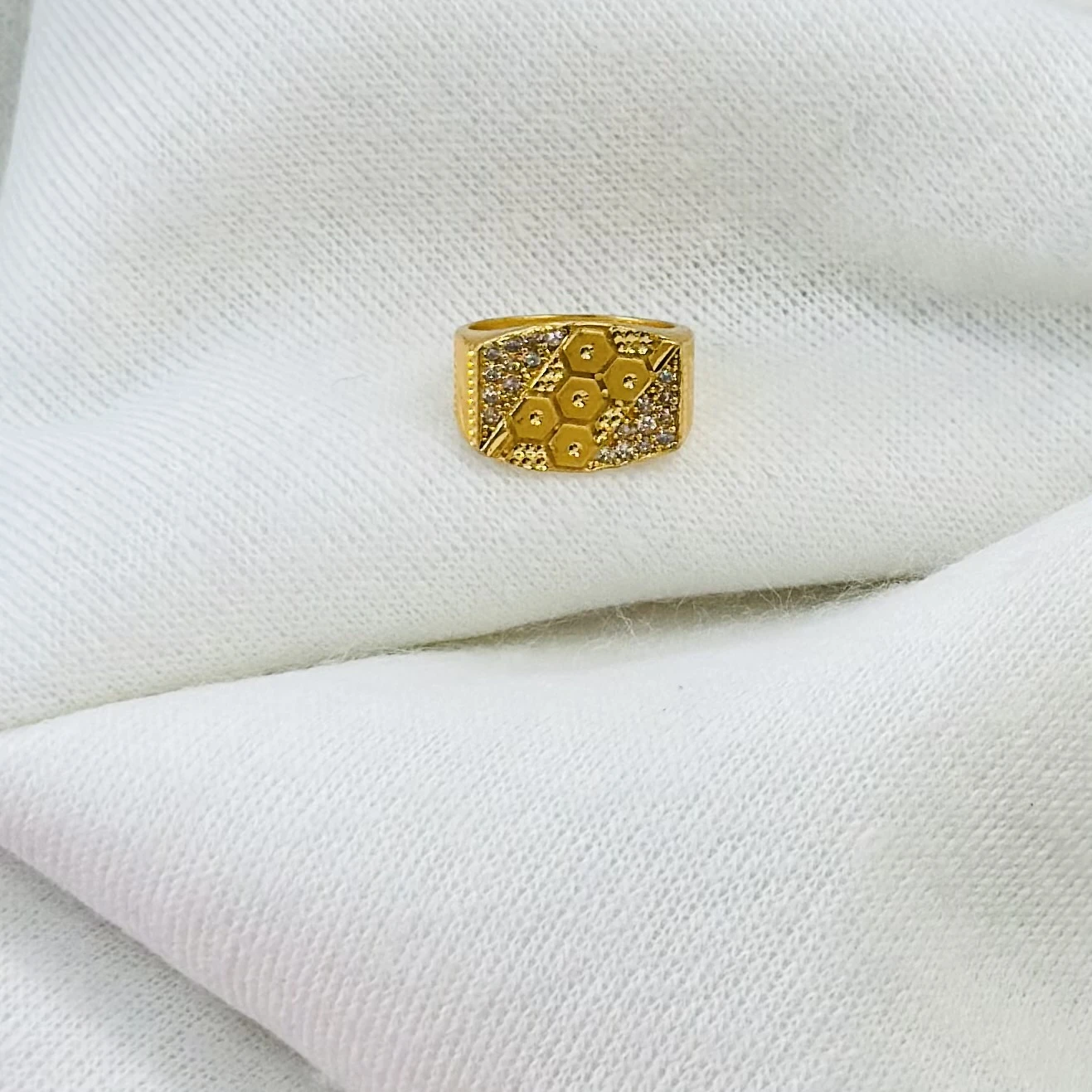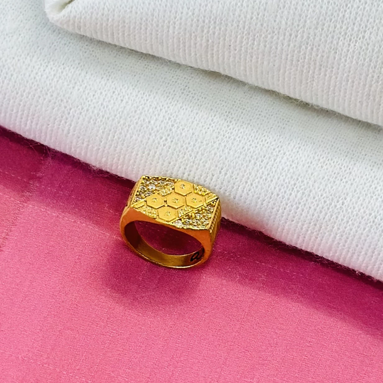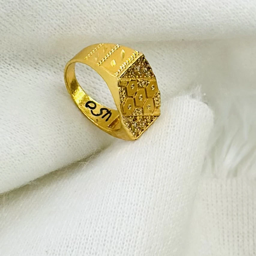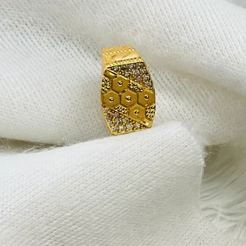 👉 Theme :- Gold plated men's ring with cubic zirconia stones.