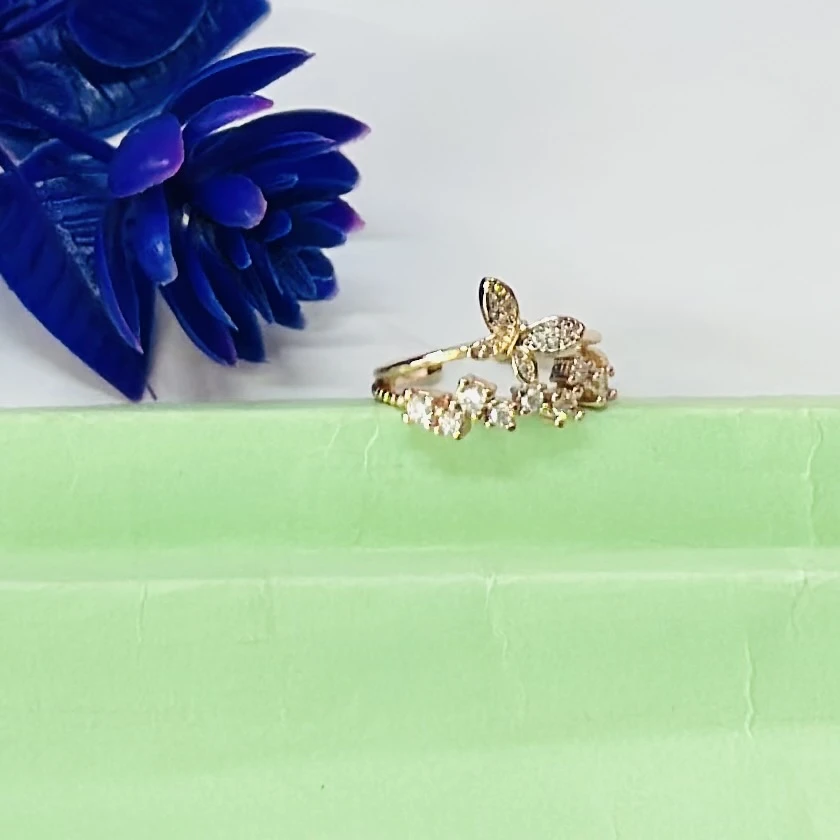 👉 Theme :- Gold plated alloy butterfly ring with a vintage style and clear stones.