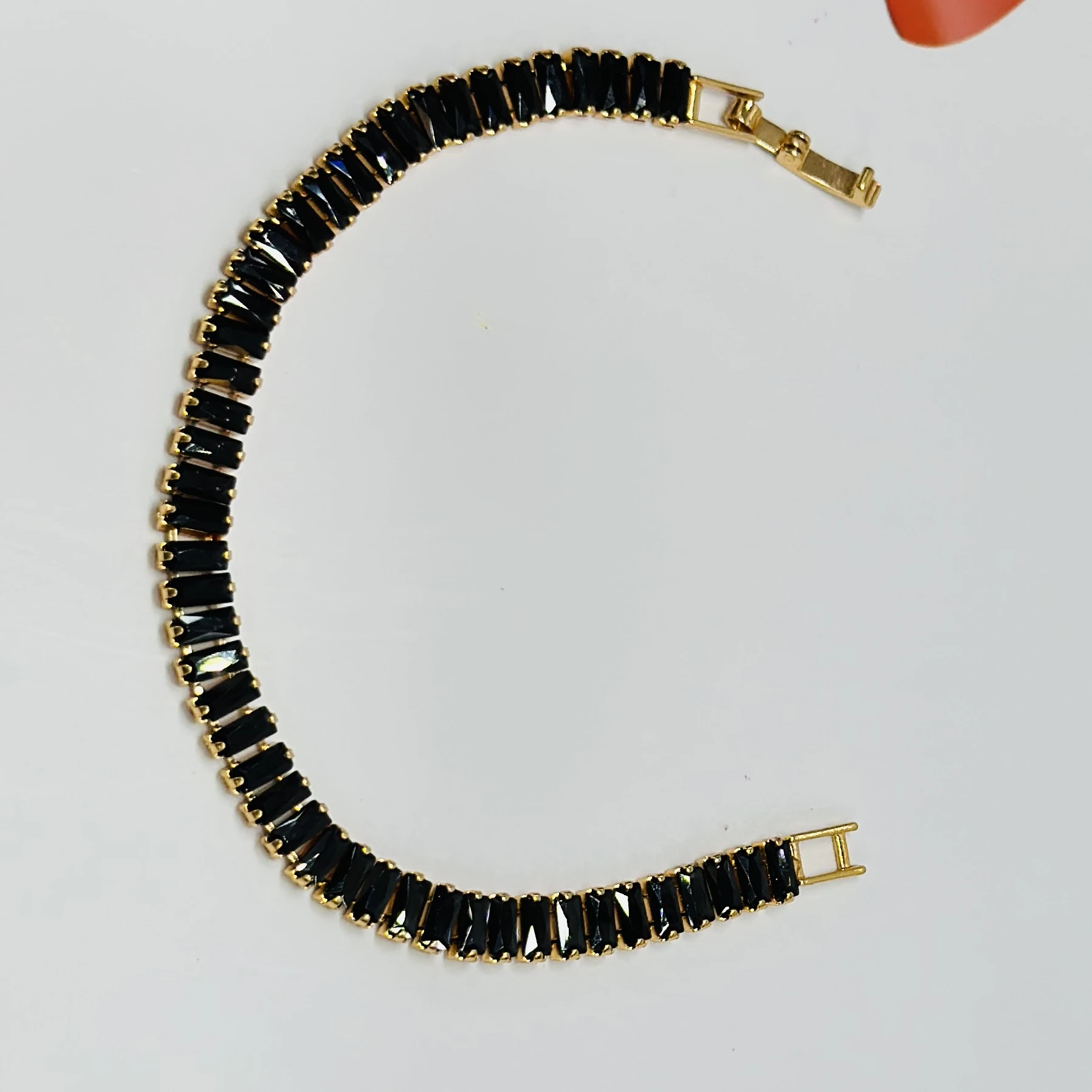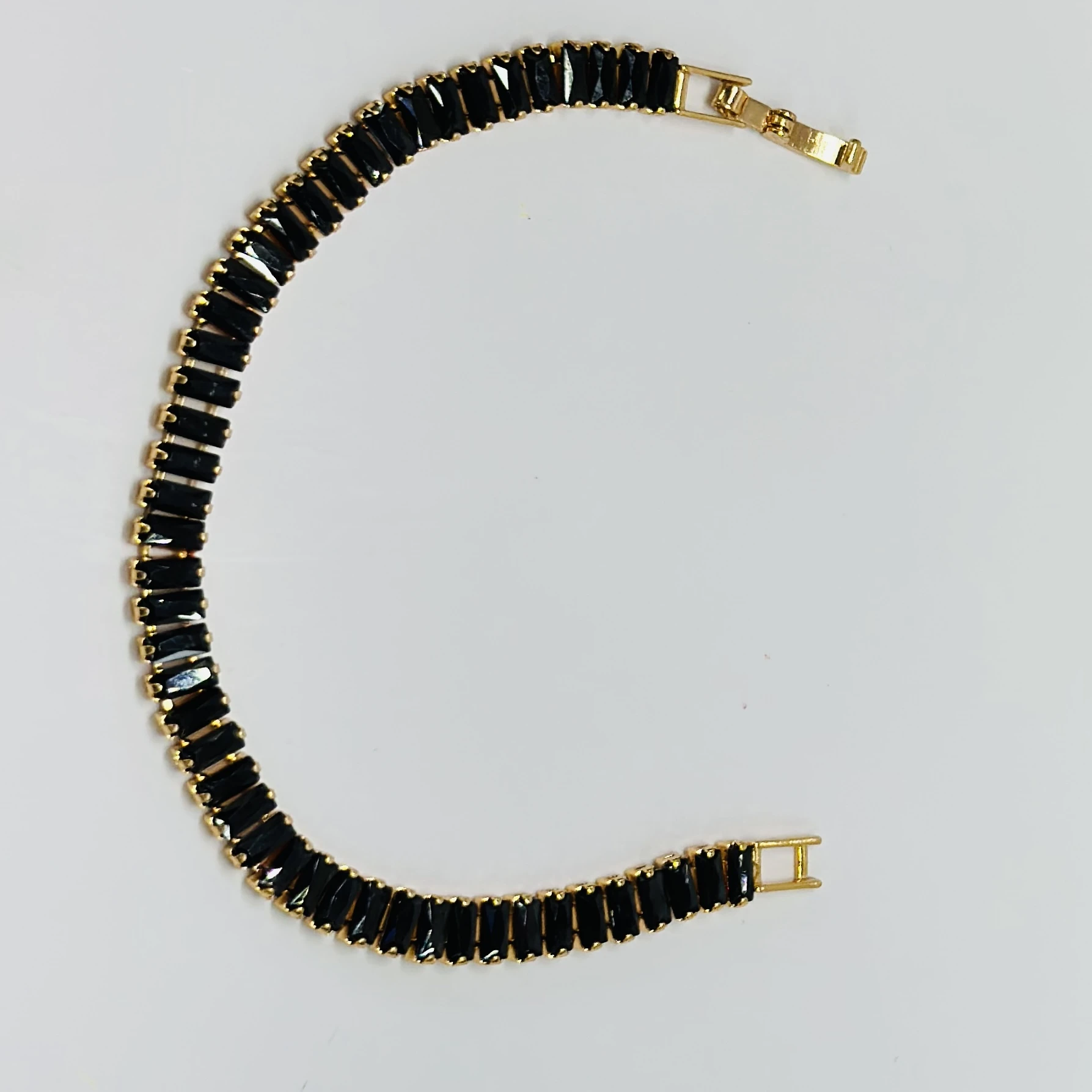 👉Theme :- Gold plated black baguette tennis bracelet with artificial stones.